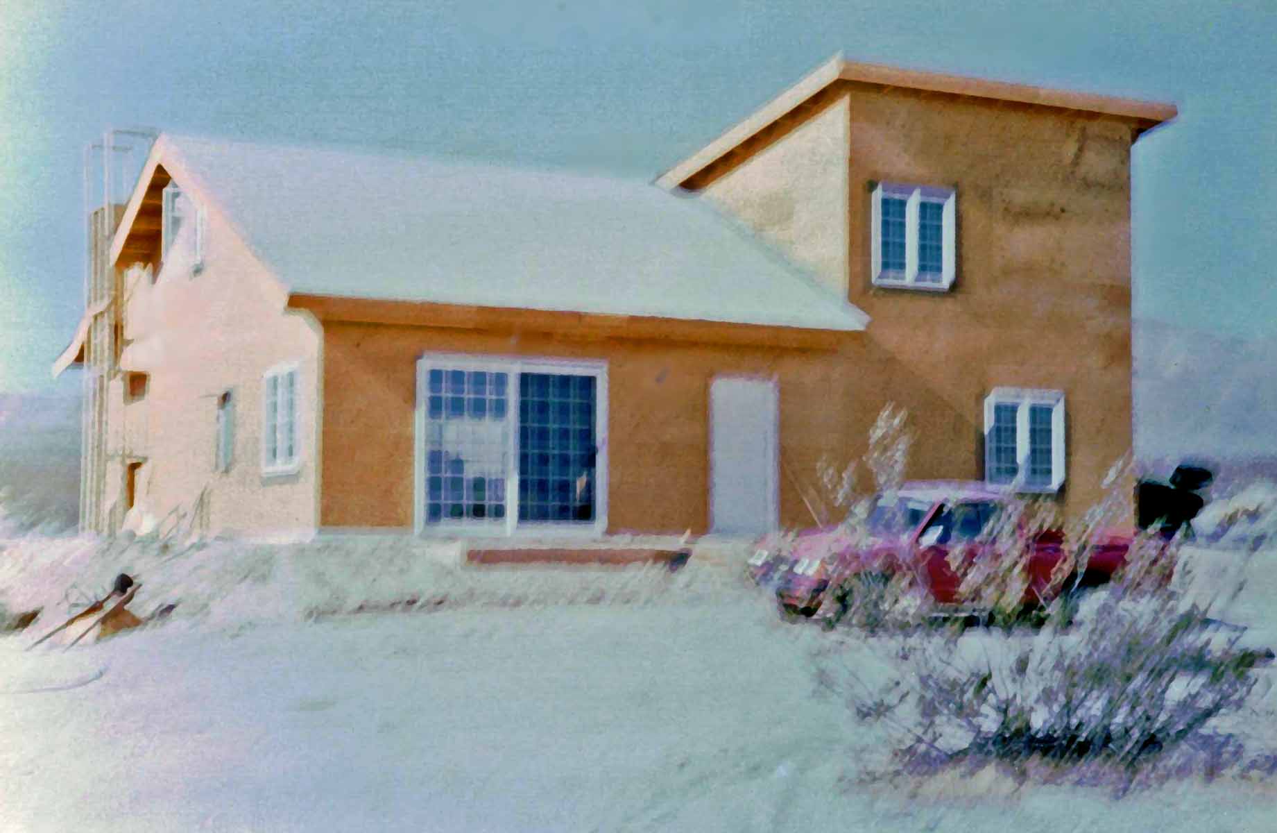 ![]() House just after fireplace was completed - Honda under tarp under shed roof | |||||||