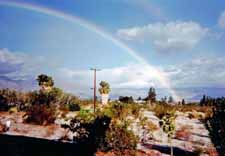 ![]() Mom loading truck with rainbow in background |