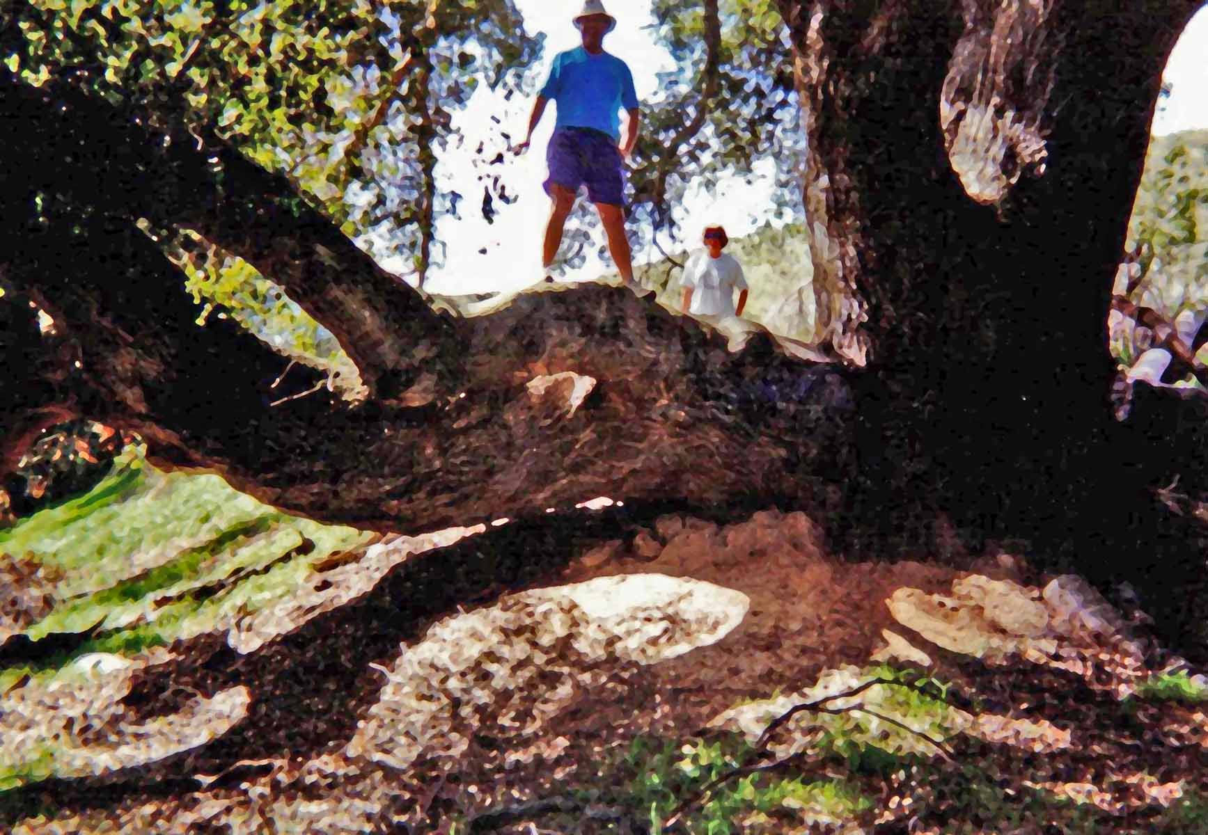 ![]() Reaching the first trees - sycamores Mom, Harriet, Jim, ?, Bob, Gladys, JaNell, Carmen | |||||