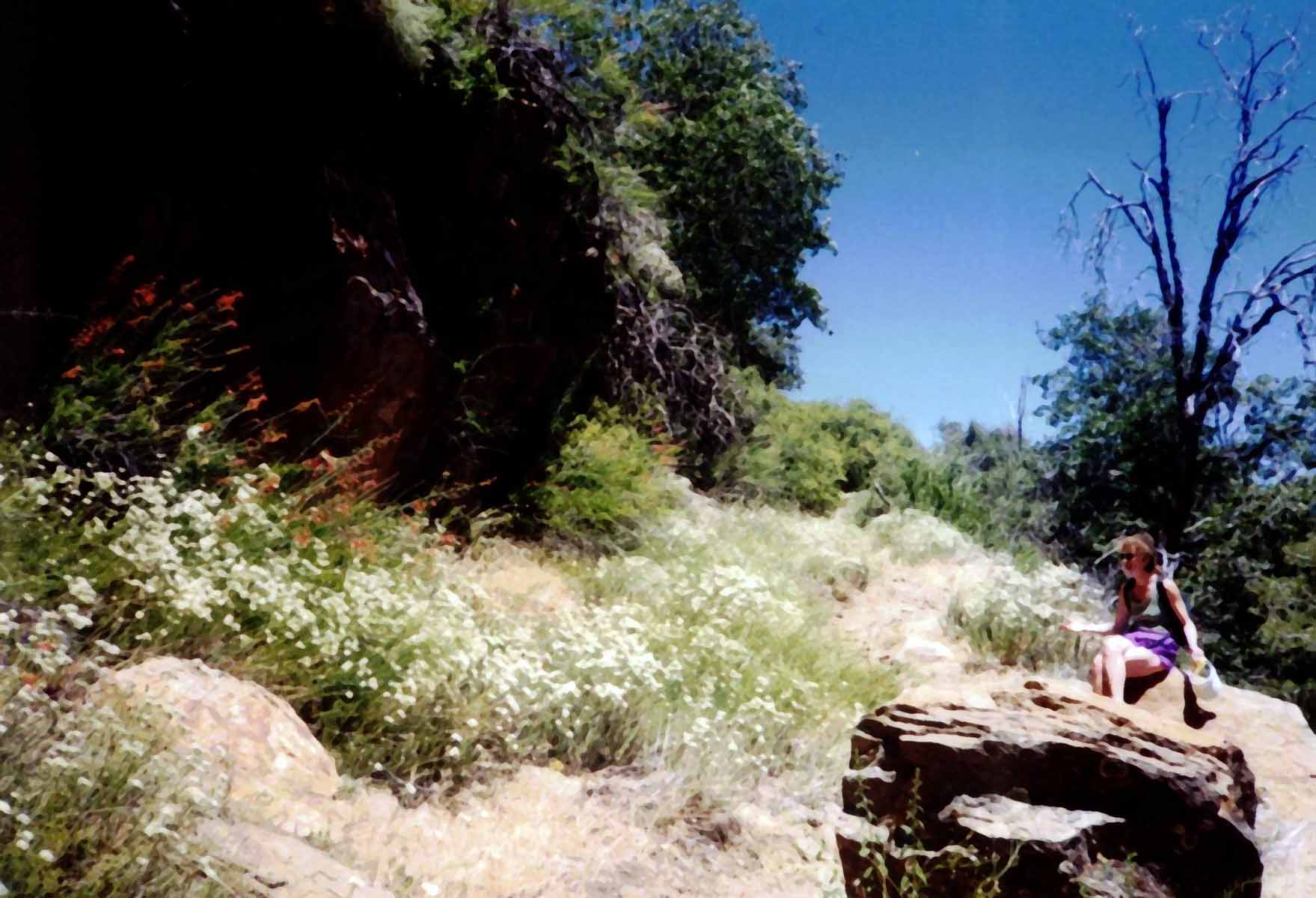 On the 12th, apparently had lunch at La Casa. Probably associated with tennis tournament. Took tennis club on hike with mom up Glorietta Canyon: ![]() near upper part of hike | |||||||