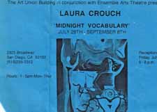 ![]() Laura ![]() Heading back to trailhead On the 13th, helped entertain Laura's friends from Holland. Attempting to meet her at the beach, I waited in wrong place and got an alchohol-in-restricted-area citation. Had we been on beach instead of grass, wouldn't have gotten the ticket, and would have actually connected with Laura! Not a good day! ![]() On the 14h went to Santee Drive-in with Laura. We saw Apollo 13 and Zorro, but were pretty tired by end of Zorro. It was a bit chilly(in August!) and we also had to contend with windows fogging up. L.C. brought some nice vittles. Sometime this month, Laura wanted to see house in Borrego. As it was too hot there (over 100F inside) and no A/C or swamp cooler, she had us bug out and go back to SD this night. ![]() Sitting out in back patio ![]() On the 28th, attended art gala with Laura - I think, maybe, in North Park. ![]() Flyer for gala ![]() At the gala | ||||||
