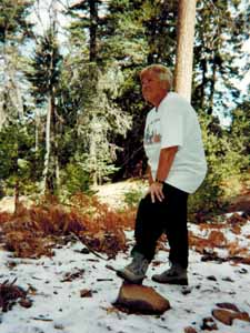On the 29th, apparently went skiing at Mountain High. Detective work: found receipt for this, and on picture of me skiing a PCT T-shirt. I had joined PCT Association in '94 after hiking 3 legs of PCT prior year. ![]() Craig took this pic of Jef at Mtn. High ![]() I think it was about this time I went on some hikes with mom. ![]() Mom in snow on Middle Peak summit in Cuyamaca ![]() Mom dragged me on hike up to Marshall South cabin around this time | ||||||