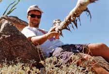 On the 25th, climbed San Ysidro Mountain: 8 miles, 4400' vertical, 8 hours. Snow was at the top! ![]() Jef after reaching snow ![]() Looking down on valley that drains into Hellhole Canyon ![]() Looking down on Indianhead Peak ![]() ![]() ![]() San Ysidro Peak register - note the snow at this lofty (5000') location | ||||||||