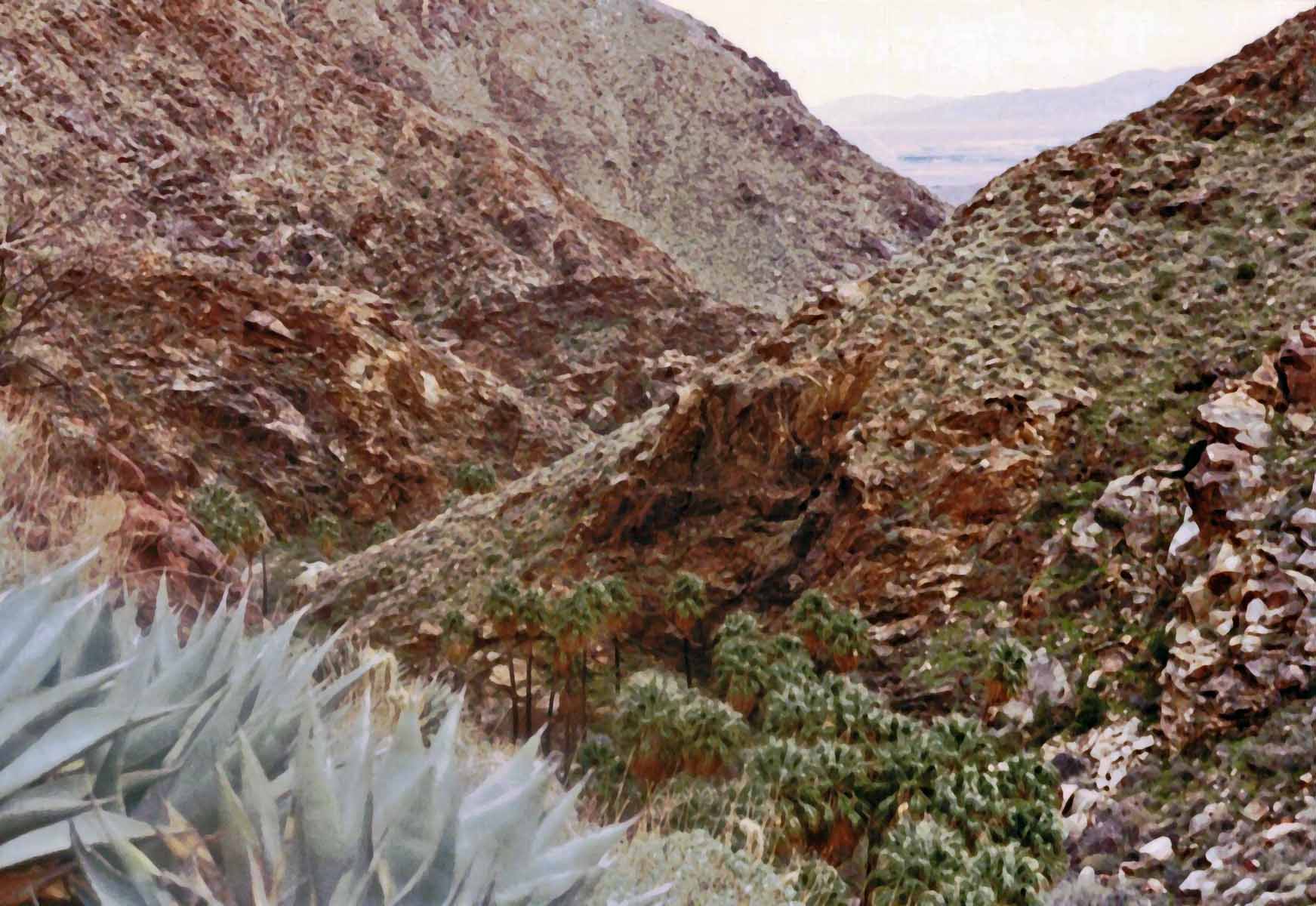 On the 11th, hiked ALMA WASH TO STARFISH COVE, where I placed my first register: 10 miles, 1600' vertical, 7 hours. On the 19th, hiked up to RATTLESNAKE SPRING: 8.5 miles, 2500' vertical, 7 hours. ![]() ![]() ![]() Did the Wonderstone Wash hike in near freezing drizzly weather. This hike passed the Moly Mine, sheep tanks in Smoketree Wash, and peaked at Pyramid Peak. Went a couple miles down Wonderstone Wash. This hike had great views of the Salton Sea: 12 miles, 3000' vertical, 12 hours. |
