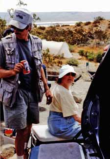 On the 27th, Helen and Harriet came out. Helen, Karyn and I went on a hike at the Slot, of about 4 miles. They arm-twisted me into learning bridge. We slept under the stars this night, and it was great! ![]() Karyn and Helen at Borrego Mtn.