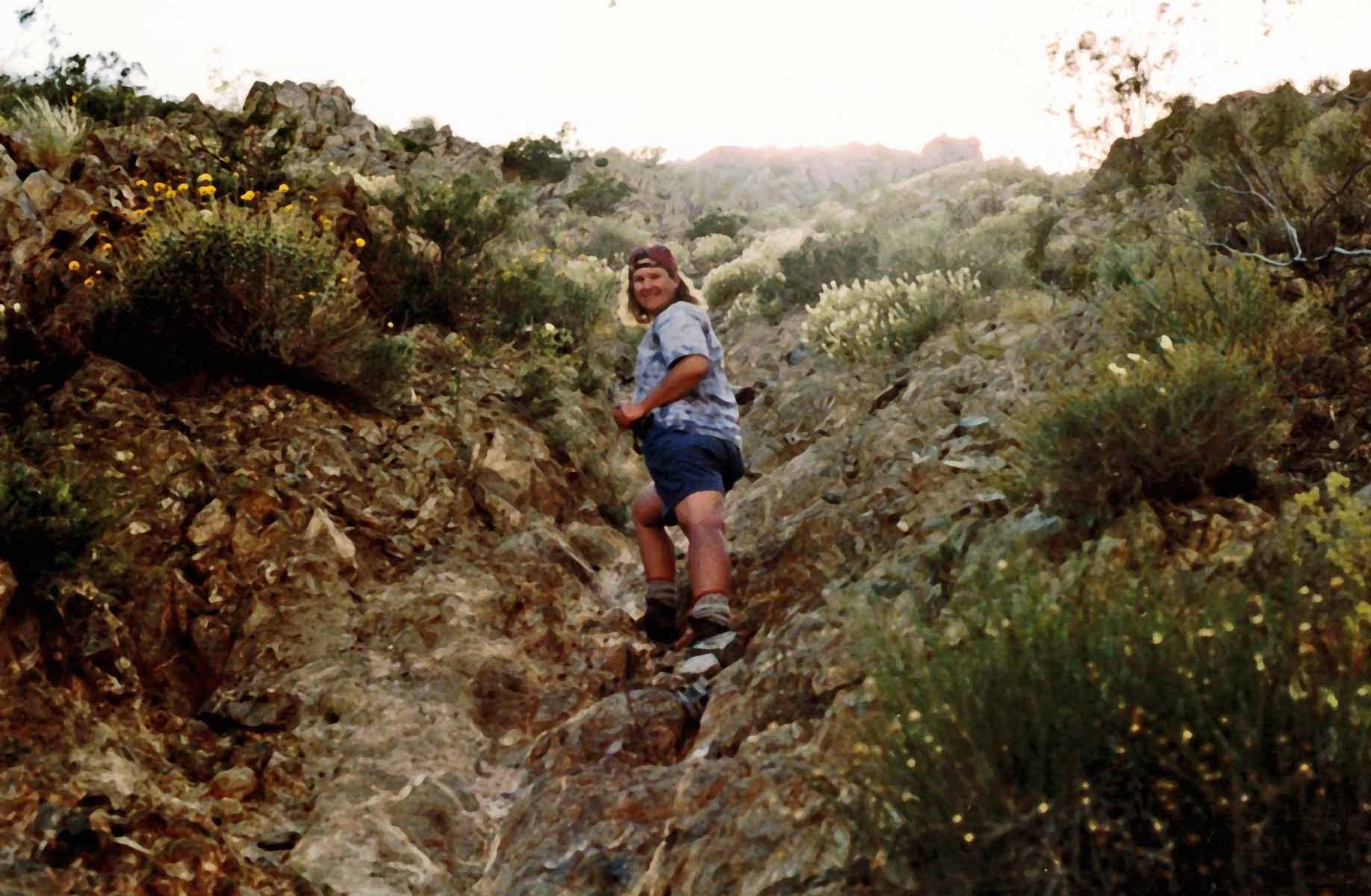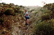 On the 2nd, Karyn and I hiked down to the San Diego River from Tierrasanta. There is a really big waterfall in Mission Gorge (lots of water this season). Lots of flowers: mustard 9' tall, margarites, black sage, etc. Really cool hike! On the 3rd, got revenge on Craig and Bryan at tennis: 6-2, 6-1, 6-0, with partner Sid, who was doing pretty good. On the 4th, went to Rattlesnake Canyon, 5 mile hike, took a few pix. ![]() Rattlesnake Canyon Flowing into Clark Valley On the 5th, took it easy. McD came by for a few minutes. On the 9th, Karyn and I did a little hike in back hills of Tierrasanta, and wound up climbing Mt. Fortuna. ![]() Tierrasanta On the 12th, after a moderately relaxing weekend, Karyn and I took off for the south part of the park, and wound up hiking most of the trails in the Mountain Palm Springs area. This is a great area, and the flowers were still terrific. ![]() Karyn at Torote Bowl ![]() SW Grove ![]() Karyn at the Torote Bowl (just a view with an Elephant Tree in the foreground) ![]() |