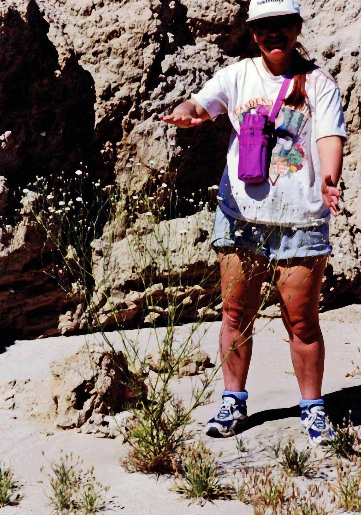 On the 8th and 9th, took Karyn up Cowles, taking 1 roll of film of flowers there on the 7th. Saw the Alaska film at Reuben H Fleet. Then went on 2 hikes. A quick one to Palm Wash on the 7th, and a medium one to Lookout Rock on the 8th. Took 5 rolls of pix.