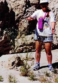 On the 27th, Mari, Karyn and I did the damned dam to dam hike starting at Lake Murray, going as close to the dam there as possible 0.8mi, and making an about face, proceding north to Cowles Peak 4.5 mi, continuing to Piles Peak 6 mi, descending to western side of Kwaaypaay 7.2 mi. We bushwhacked up Kwaaypaay, and descended to Mission Dam 11.5 mi. We then hiked to Mari's house 15.3 mi, as we were hot and tired (it was about 100°). Hike was 7 hours, about 15 miles, and over 3000' vertical up and down - a worthy hike. Karyn took me out to Khyber Pass that night, and we had a great dinner (sitting on cushions on the floor).