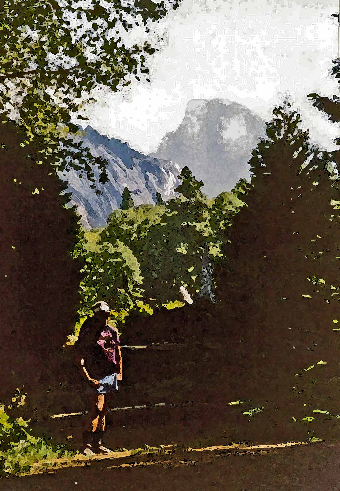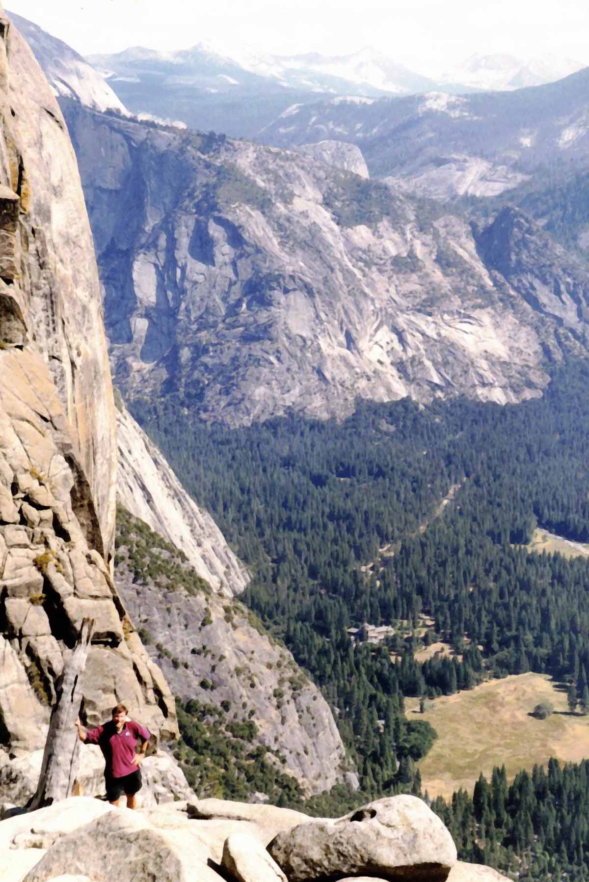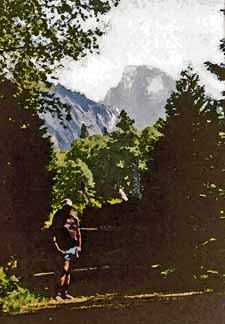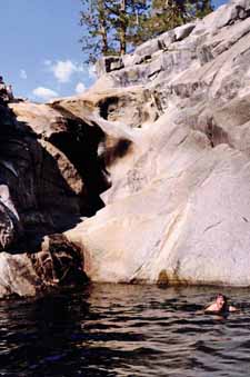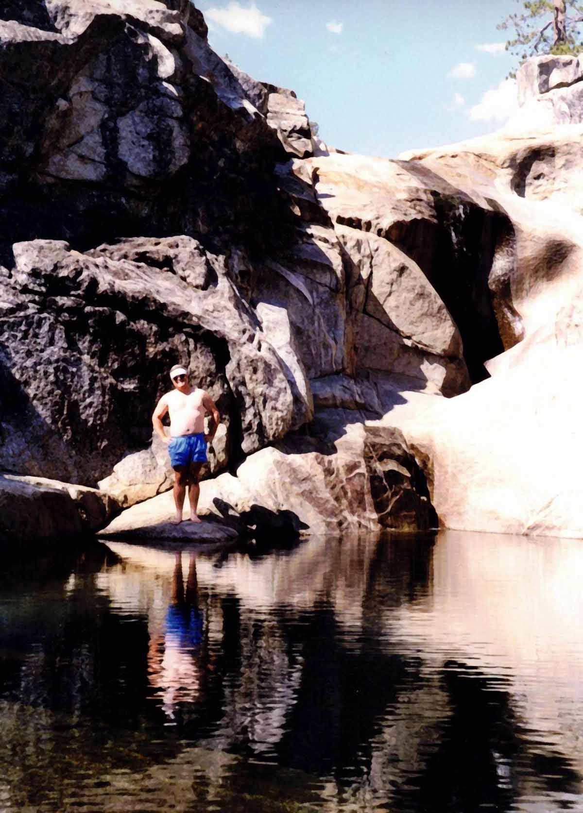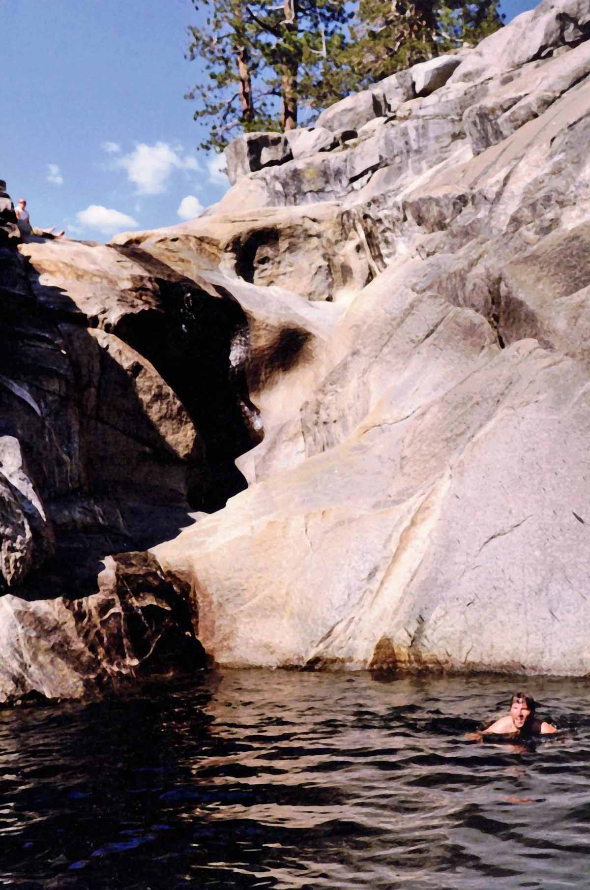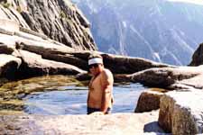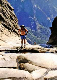 ![]() Yosemite Falls is behind Dyer ![]() Jef swam in this pool to far side and back - water temp just above freezing ![]() Dyer dutifully followed this foolhardy event ![]() ![]() Dyer in the water |