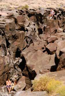 From the 13th to the 21st, Julie, Thor, and Logan visited me for Thor's spring break. We went up to see dad & Leny, met Midge & Kip (relatives from Michigan), went to Universal City, went to the beach in San Diego. Took visiting relatives, and Harold and Carol on short hike to upper Tubb Canyon. ![]() Logan and Thor At dad's, 3/14/99