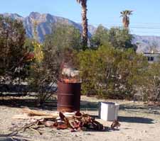 ![]() Noted bees were attracted to sap in paloverde - also noted before leaving that a woodpecker is responsible for holes in the trunk ![]() Smoke is darker when there is water in what is burned ![]() Palm fronds put out a good flame ![]() | |||||||||||||||||||||