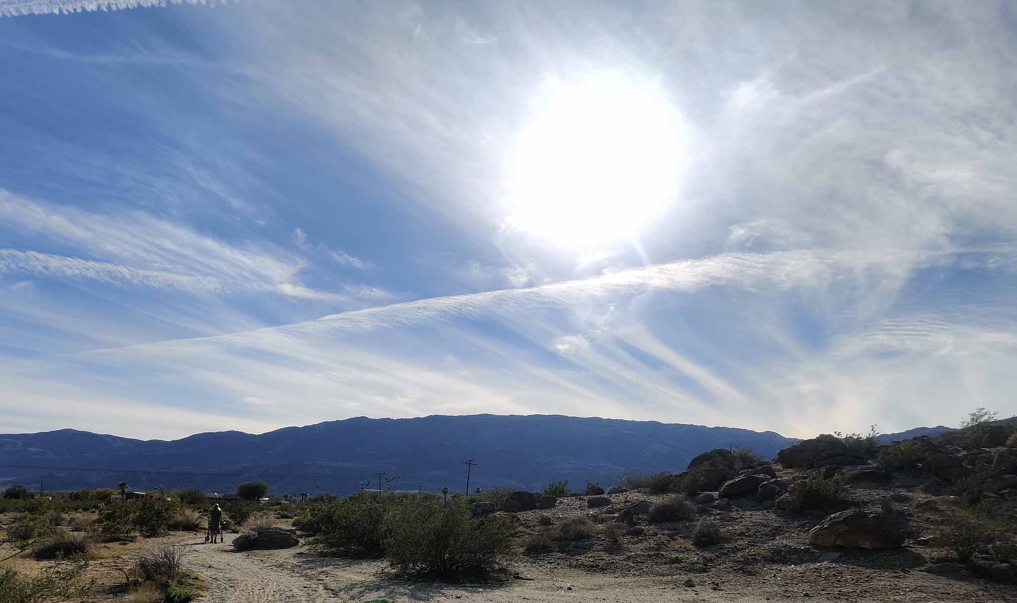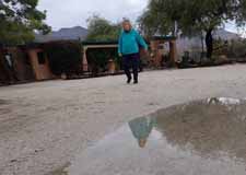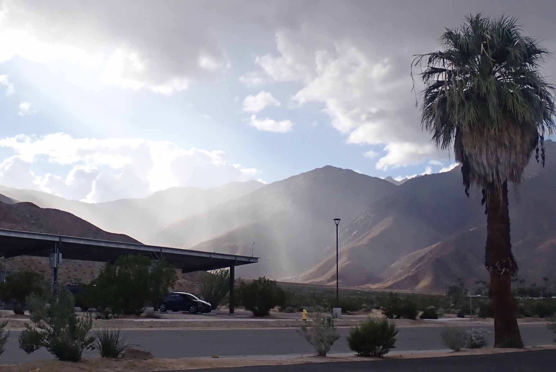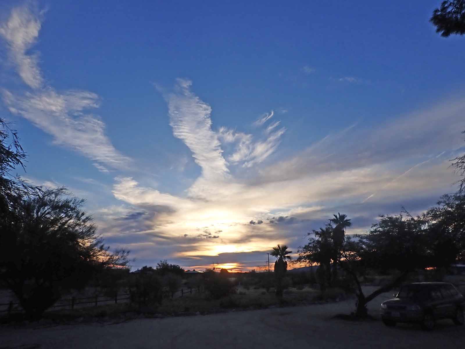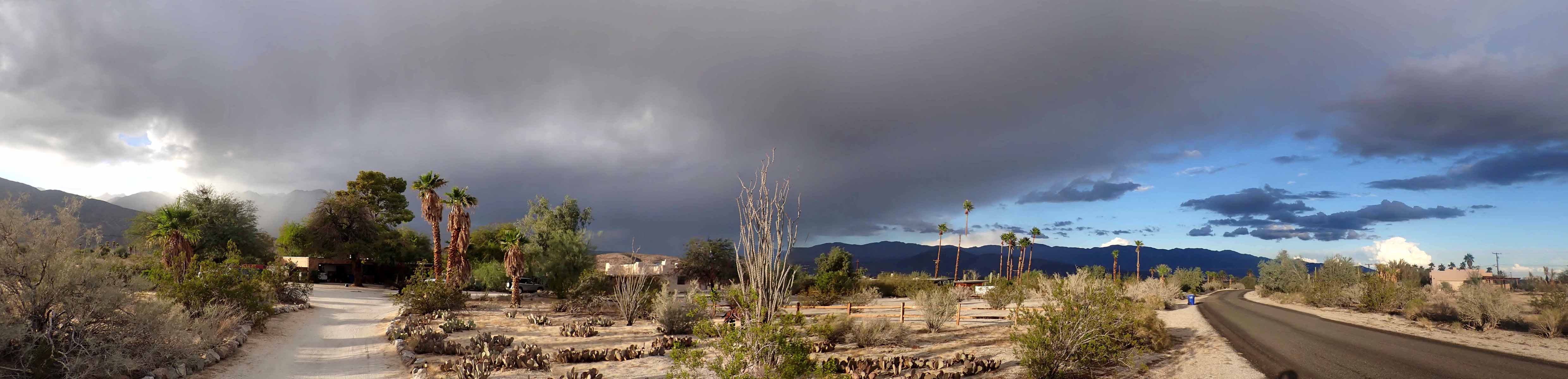 On the 11th, Kathy did 2 patients at the office. ![]() Dave stayed for dinner this evening ![]() Aurora Borealis was visible with camera this evening ![]() ![]() ![]() ![]() On the 12th, Camry was finally ready, so Jef got a ride with Dave to Poway, picked it up, and shopped on the way home. On the 13th, Kathy had 2 patients at the office. Jef walked to town, helped out Kathy some and did a couple other chores. ![]() Meter at this time ![]() Starting walk home, noticed small cloud - they are predicting a big storm coming in, perhaps this is the start ![]() Trail was obscured by erosion, such as this wash cut ![]() Grasses along trail ![]() Top of first hill ![]() Nearing top ![]() At the top - most of this grass is dead (not protected from wind, like in lower slopes) ![]() Chinchweed still blooming in this little draw ![]() Before descending to main wash ![]() Looks pretty green down there ![]() Erosion may make this a problem area ![]() Arriving in main wash ![]() Some chuparosa blooms ![]() ![]() Blooming brittlebush ![]() Desert hibiscus also blooming ![]() Giant patch of windmills ![]() ![]() Passing rotary trough ![]() Healthy cheesebush ![]() Rain washed away this old couch that had been a minor obstacle, pushing it off to the side On the 14th, Jef helped Kathy make a batch of spaghetti sauce. ![]() Nice sunrise this morning ![]() ![]() ![]() ![]() Looking at red mountains & clouds behind house ![]() Camry is now fixed! ![]() Even the left side ![]() Back yard during this sunrise ![]() Plants are doing okay ![]() Montezuma grade in early morning light ![]() Rain shaft towards Coyote Canyon On the 15th, woke up to rain. Stayed home and soaked up water flooding our sunroom. ![]() Noticed this baby garter snake in sunroom ![]() Picked up with tongs and tossed into front yard ![]() Soaking up flood waters in sun room ![]() Daisy wondering what this wet stuff is ![]() Sunset this evening ![]() ![]() On the 16th, mostly took it easy at home doing chores. Kathy & Kym went to Red O for lunch. ![]() Sunrise this morning ![]() ![]() ![]() ![]() Woke up with no water pressure in house - these guys were probably fixing a leak ![]() One of Stacey's drawings from 20+ years ago left at West Star house ![]() Water pressure returned & Jef noticed SOMEONE had used the hose and left it on full blast ![]() Water reached into neighbor's property ![]() Walking over to see what water district had done, took this pic of a raven ![]() Water leak was on shoulder in front of next 2 neighbors ![]() ![]() Must have been a little waterfall going down towards neighbor 3 houses down ![]() Water crossing neighbor 3 houses down ![]() Water crossed neighbor 4 houses down an continued to main wash, but never made it all the way to Tilting T ![]() Still have blooming chinchweed ![]() Kathy & Pepper starting walk ![]() ![]() Saw a little rainbow over toward Santa Rosas On the 17th, mostly took it easy at home. Jef worked on old pix & then walked about 4 miles to base of ridge in Dry Canyon in 74 minutes. Later we walked doggies about 2 miles around the circle. ![]() Sunrise this morning ![]() ![]() Meter is heading north - probably due to hot tub ![]() Walking up Wagon noticed and took this shortcut dirt road to Bar O ![]() 2 miles from house took this panorama shot looking east to water tank ![]() ![]() Looking back to ridge I was on - top is height of road cut-out on Montezuma ![]() Wash was blocked here for recharge basin for water district ![]() Discovered this track leading into Dry Canyon ![]() Weather at the Mall later this day On the 18th, Kathy resumed work with 3 patients this day. On the 19th, did chores at Sewanee and WStar houses. ![]() Cut some branches from this paloverde and brought palm frond over to burn barrel, but matches didn't work, so no burning this day ![]() Raining in Hellhole ![]() Thunderstorm to the east |