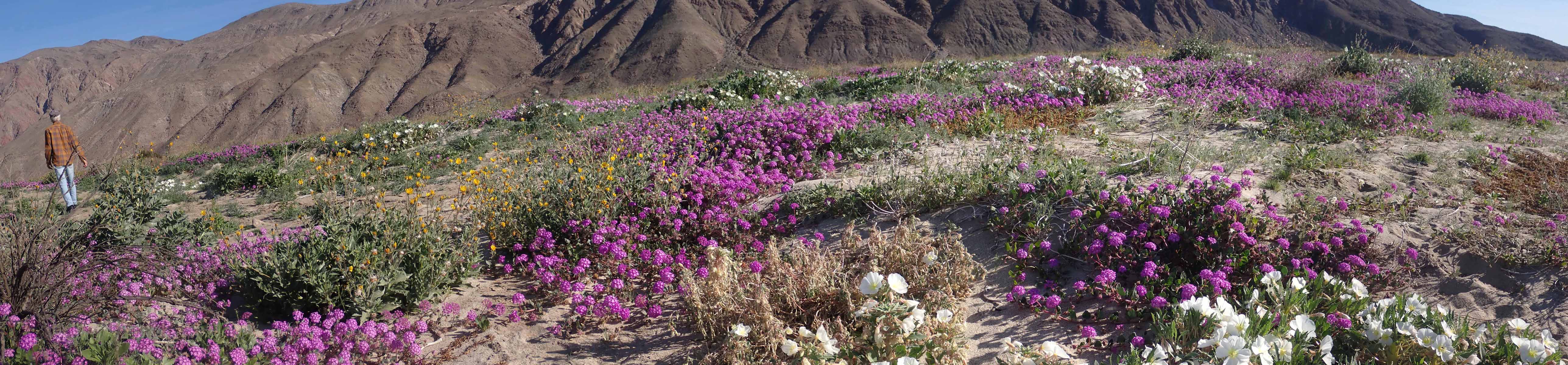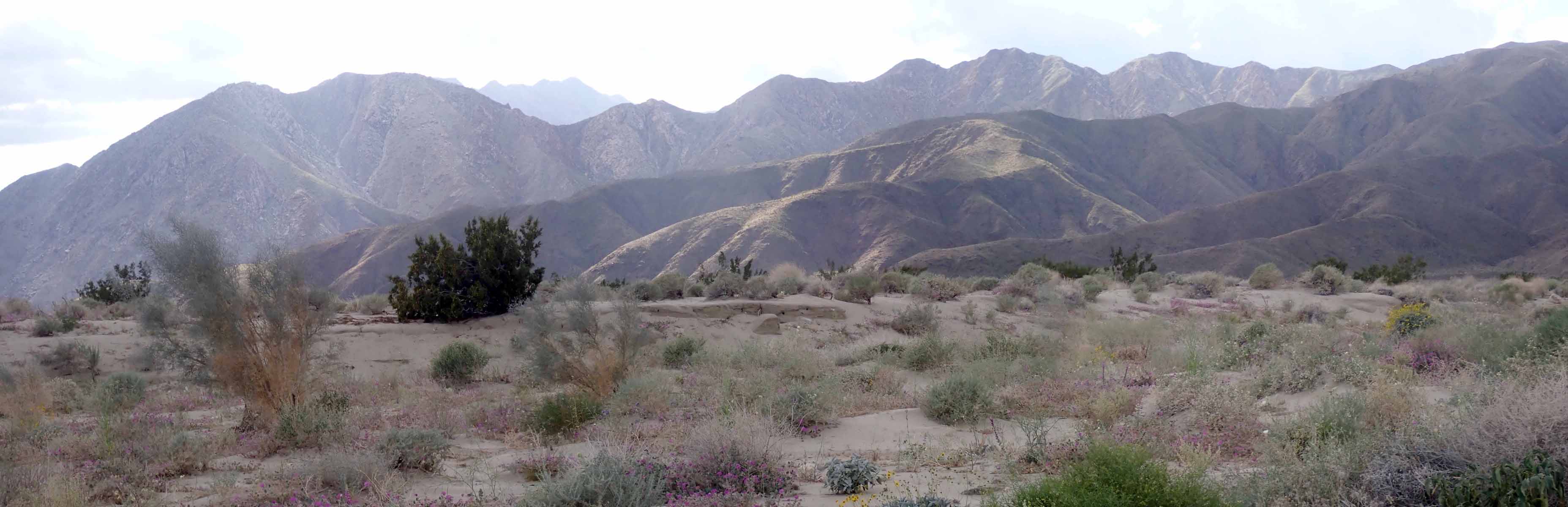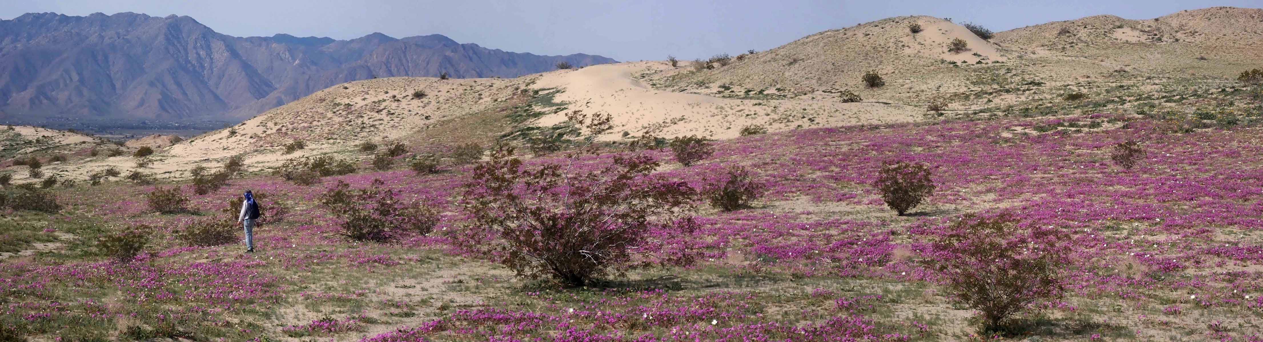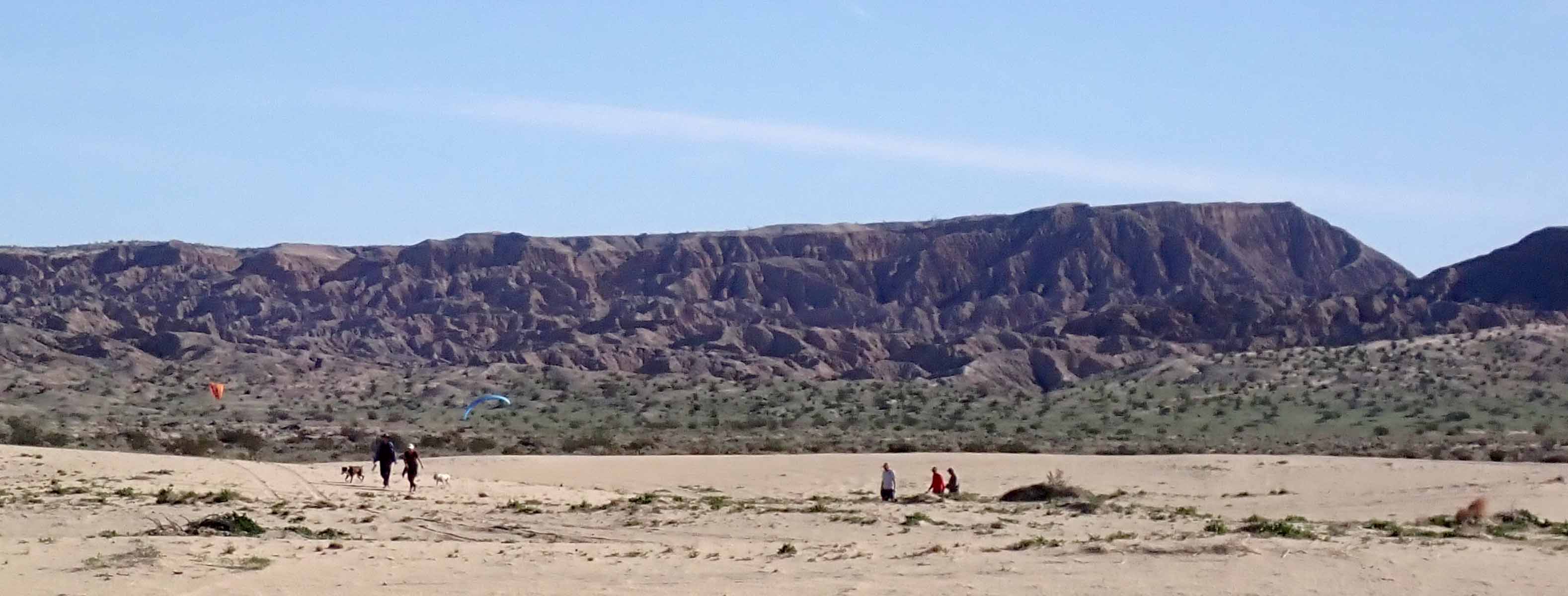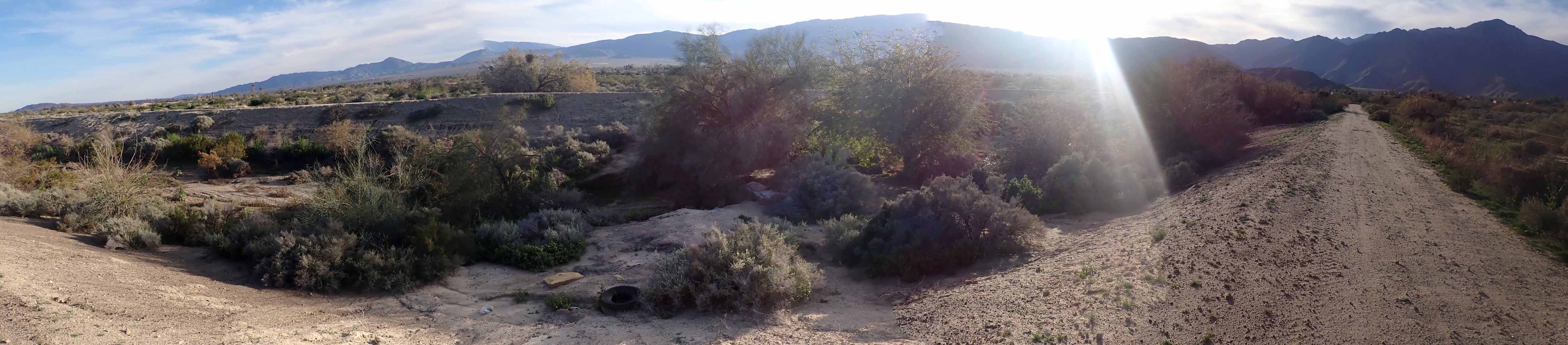 ![]() We dined on Canneloni this evening On the 25th, Kathy took it easy at home while Flaco & Jef hiked Ant Hill. Later that day, after Flaco left, Kathy & Jef walked the puppies on a new pole-line road for over 3 miles. Jef walked about 10 miles this day. ![]() Briefly stopped at Henderson Canyon flower fields before the hike ![]() ![]() Flaco at left in this panorama ![]() Flaco starting the hike ![]() Saw these 2 parasailors a few times on our hike ![]() One of, perhaps, 100 desert lily plants we saw on this hike ![]() Parasailors in front of Fonts Point(L) and Ant Hill(R) ![]() Actually saw these other hikers! ![]() Baby ant hills on way to Ant Hill ![]() Patch of 8 desert lilies ![]() We were about to walk on this dirt road when the 2 parasailors, following the road, passed right by us! ![]() ![]() ![]() ![]() Desert sunflower ![]() Dune primrose ![]() Lots of Sahara mustard as we near the hilly part of the hike ![]() ![]() ![]() Toro Peak ![]() Hit this fence line, but followed it a bit before crossing it at a low point, such as this ![]() Flaco getting something from pack ![]() ![]() When Flaco was about to put on more suntan lotion, I offered my bandana to protect his neck ![]() Flaco sporting his new headgear ![]() ![]() Desert lily bloom amid verbena field ![]() Flaco noticed this chuckwalla when it moved ![]() Another big patch of desert lily ![]() Creosote blooms with verbena field in background ![]() After reaching the ridge leading up to the peak ![]() Panorama with Ant Hill at left and flower field on south slope of ridge ![]() Upper reaches of this flower field are brown-eyed primrose ![]() ![]() Flaco approaching the peak ![]() ![]() ![]() Flaco at the peak. Jef called Julie & Kathy, but noone answered ![]() Badlands panorama from the peak ![]() Heading back down ![]() Heading into the Valley of Flowers ![]() ![]() ![]() ![]() ![]() Montezuma Grade & Borrego in distance. Green in middle ground might be mostly Sahara mustard ![]() Sahara mustard ![]() ![]() ![]() Summary of Ant Hill hike - about 6.5 miles ![]() Summary of hike with doggies - about 3.2 miles On the 26th, took it easy doing chores at home. On the 27th, Kathy returned to work. Jef walked to Tito's to pick up black Jeep, taking a new route. ![]() Meter still heading north ![]() After continuing x-country from Walking H, saw this abandonned wellhead ![]() Terrain to be traversed ![]() Chinchweed that bloomed so spectacularly in this area in October is all dead now ![]() Crossed this drainage choked with vegetation ![]() This might be the new invasive Valeria weed - this one about 5' tall ![]() Old pumphouse along DiGiorgio Rd ![]() Slab of an abandonned house ![]() Wellhead implies this was a pumphouse ![]() The drainage I crossed over emptied on east side of DiGiorgio Rd in a 6' deep trench - dammed up before enterring an even bigger 12' deep drainage - perhaps to have more water seep in here, not far from that pump house ![]() Where the main drainage comes from DiGiorgio - I believe this is when Palm Canyon creeks makes it this far ![]() Looking down the drainage channel - I believe this was made to prevent flooding at the Borrego Springs Resort ![]() Panorama of this channel ![]() Found this kite, which I later found out to be part of a $700 kite Steve had lost a year ago ![]() Turned out to be Steve's number ![]() Use your imagination.... No Trespassing, perhaps? ![]() Kathy had me look at the sunset this evening - just caught the tail end of it ![]() ![]() ![]() ![]() On the 28th, drove Kathy to MD in Rancho Mirage. We went on an hour hike from city hall afterwards, before shopping and driving home. ![]() Sunrise this morning ![]() Starting hike above the city hall ![]() City hall is composed of buildings to the left ![]() Sitting at the first lookout ![]() Next leg of hike took us to a water tank where we turned and came back ![]() Back at the lookout ![]() Words of wisdom ![]() Our viewing bench ![]() Flowers at Henderson Canyon as the sunset continues to fade ![]() ![]() ![]() ![]() On the 29th, another work day for Kathy. Jef did some weeding at Sewanee. ![]() Sunrise this morning ![]() On the 30th, did chores at home all day. On the 31st, packed up and drove to Niland to get wind chimes Kathy couldn't get weekend before and camped at Bashford's Hot Springs Resort. ![]() At Bashfords - we set up tent before heading to Bombay Beach ![]() We parked at "Last car that parked here is still missing" space, as Steve was packing up - managed to buy the wind chimes ![]() Steve bagging chimes for Kathy ![]() ![]() Tesseract projection ![]() Setting sun ![]() ![]() ![]() Roon rising about porta-potties ![]() Sun setting at left in this panorama with moon rising at right ![]() ![]() We spent an hour or so listening to a great band playing at the "trash dance" this evening at Bashford's rec room | |||||||||||||||||||||