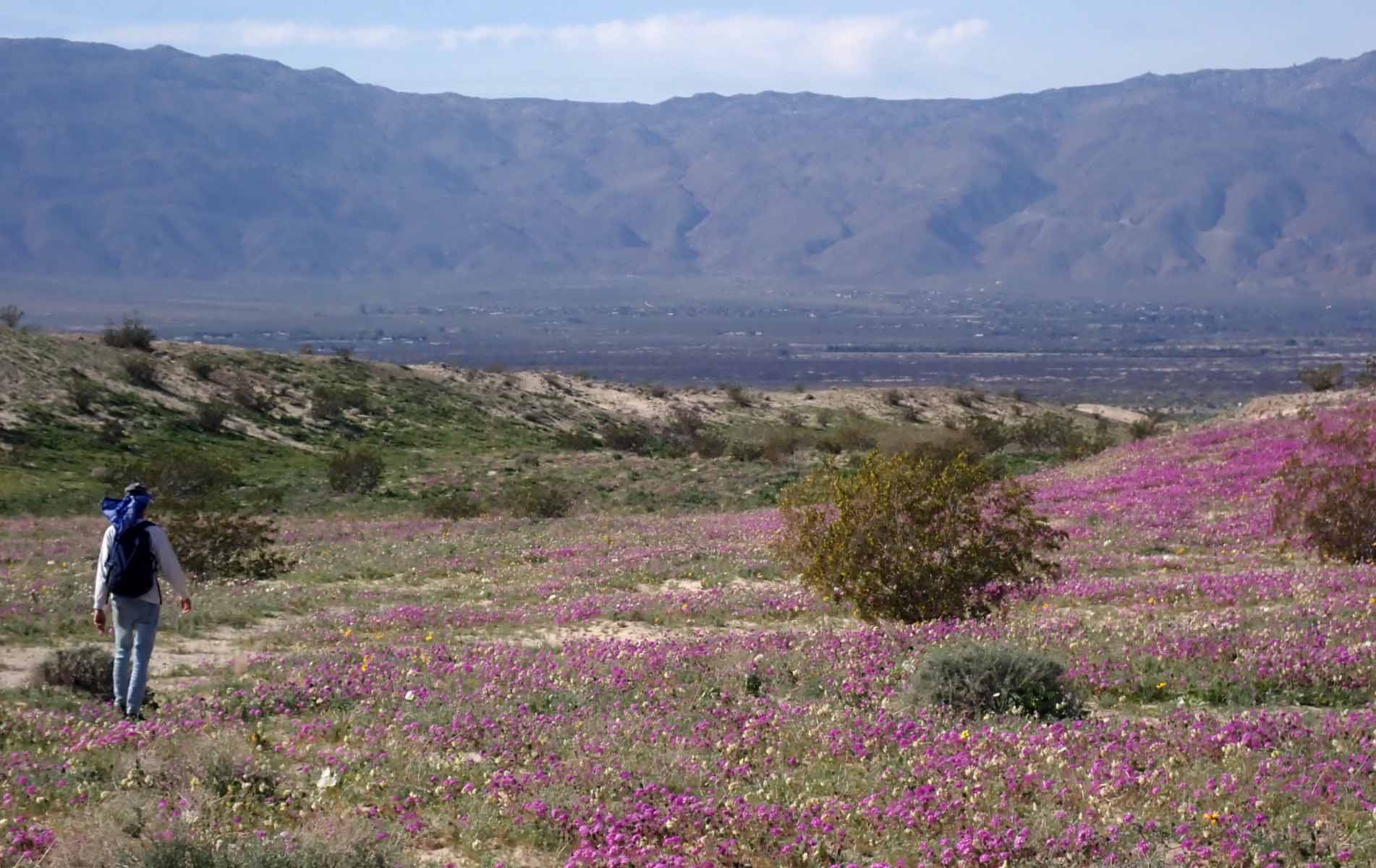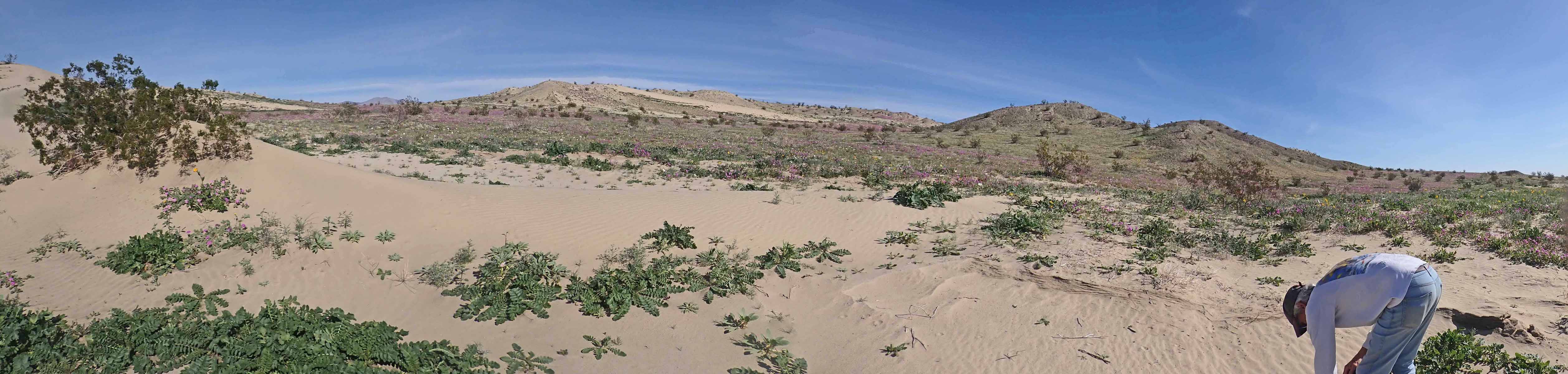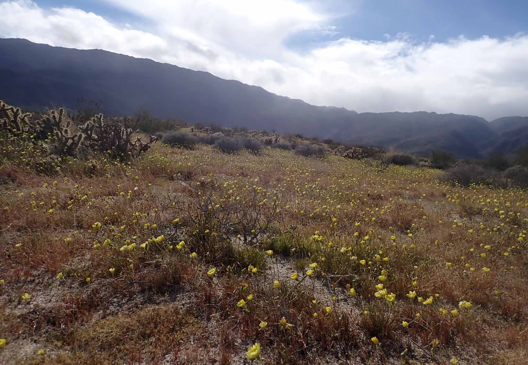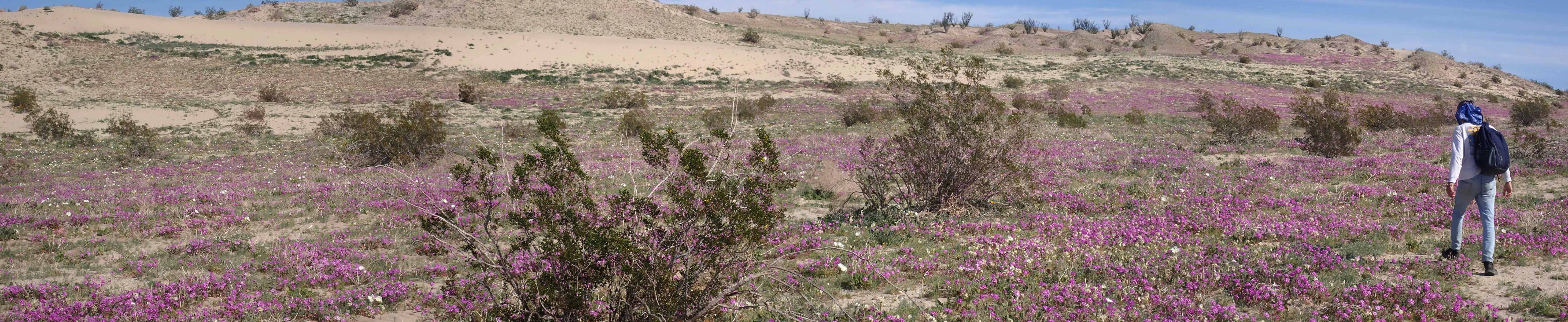 ![]() We dined on Canneloni this evening On the 25th, Kathy took it easy at home while Flaco & Jef hiked Ant Hill. Later that day, after Flaco left, Kathy & Jef walked the puppies on a new pole-line road for over 3 miles. Jef walked about 10 miles this day. ![]() Briefly stopped at Henderson Canyon flower fields before the hike ![]() ![]() Flaco at left in this panorama ![]() Flaco starting the hike ![]() Saw these 2 parasailors a few times on our hike ![]() One of, perhaps, 100 desert lily plants we saw on this hike ![]() Parasailors in front of Fonts Point(L) and Ant Hill(R) ![]() Actually saw these other hikers! ![]() Baby ant hills on way to Ant Hill ![]() Patch of 8 desert lilies ![]() We were about to walk on this dirt road when the 2 parasailors, following the road, passed right by us! ![]() ![]() ![]() ![]() Desert sunflower ![]() Dune primrose ![]() Lots of Sahara mustard as we near the hilly part of the hike ![]() ![]() ![]() Toro Peak ![]() Hit this fence line, but followed it a bit before crossing it at a low point, such as this ![]() Flaco getting something from pack ![]() ![]() When Flaco was about to put on more suntan lotion, I offered my bandana to protect his neck ![]() Flaco sporting his new headgear ![]() ![]() Desert lily bloom amid verbena field ![]() Flaco noticed this chuckwalla when it moved ![]() Another big patch of desert lily ![]() Creosote blooms with verbena field in background ![]() After reaching the ridge leading up to the peak ![]() Panorama with Ant Hill at left and flower field on south slope of ridge ![]() Upper reaches of this flower field are brown-eyed primrose ![]() ![]() Flaco approaching the peak ![]() ![]() ![]() Flaco at the peak. Jef called Julie & Kathy, but noone answered ![]() Badlands panorama from the peak ![]() Heading back down ![]() Heading into the Valley of Flowers ![]() ![]() ![]() ![]() ![]() Montezuma Grade & Borrego in distance. Green in middle ground might be mostly Sahara mustard ![]() Sahara mustard ![]() ![]() ![]() Summary of Ant Hill hike - about 6.5 miles ![]() Summary of hike with doggies - about 3.2 miles On the 26th, took it easy doing chores at home. On the 27th, Kathy returned to work. Jef walked to Tito's to pick up black Jeep, taking a new route. ![]() Meter still heading north ![]() After continuing x-country from Walking H, saw this abandonned wellhead ![]() Terrain to be traversed ![]() Chinchweed that bloomed so spectacularly in this area in October is all dead now ![]() Crossed this drainage choked with vegetation ![]() This might be the new invasive Valeria weed - this one about 5' tall ![]() Old pumphouse along DiGiorgio Rd ![]() Slab of an abandonned house ![]() Wellhead implies this was a pumphouse ![]() The drainage I crossed over emptied on east side of DiGiorgio Rd in a 6' deep trench - dammed up before enterring an even bigger 12' deep drainage - perhaps to have more water seep in here, not far from that pump house ![]() Where the main drainage comes from DiGiorgio - I believe this is when Palm Canyon creeks makes it this far ![]() Looking down the drainage channel - I believe this was made to prevent flooding at the Borrego Springs Resort ![]() Panorama of this channel ![]() Found this kite, which I later found out to be part of a $700 kite Steve had lost a year ago ![]() Turned out to be Steve's number ![]() Use your imagination.... No Trespassing, perhaps? ![]() Kathy had me look at the sunset this evening - just caught the tail end of it ![]() ![]() ![]() ![]() On the 28th, drove Kathy to MD in Rancho Mirage. We went on an hour hike from city hall afterwards, before shopping and driving home. ![]() Sunrise this morning ![]() Starting hike above the city hall ![]() City hall is composed of buildings to the left ![]() Sitting at the first lookout ![]() Next leg of hike took us to a water tank where we turned and came back ![]() Back at the lookout ![]() Words of wisdom ![]() Our viewing bench ![]() Flowers at Henderson Canyon as the sunset continues to fade ![]() ![]() ![]() ![]() On the 29th, another work day for Kathy. Jef did some weeding at Sewanee. ![]() Sunrise this morning ![]() On the 30th, did chores at home all day. On the 31st, packed up and drove to Niland to get wind chimes Kathy couldn't get weekend before and camped at Bashford's Hot Springs Resort. ![]() At Bashfords - we set up tent before heading to Bombay Beach ![]() We parked at "Last car that parked here is still missing" space, as Steve was packing up - managed to buy the wind chimes ![]() Steve bagging chimes for Kathy ![]() ![]() Tesseract projection ![]() Setting sun ![]() ![]() ![]() Roon rising about porta-potties ![]() Sun setting at left in this panorama with moon rising at right ![]() ![]() We spent an hour or so listening to a great band playing at the "trash dance" this evening at Bashford's rec room | |||||||||||||||||||||