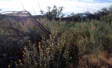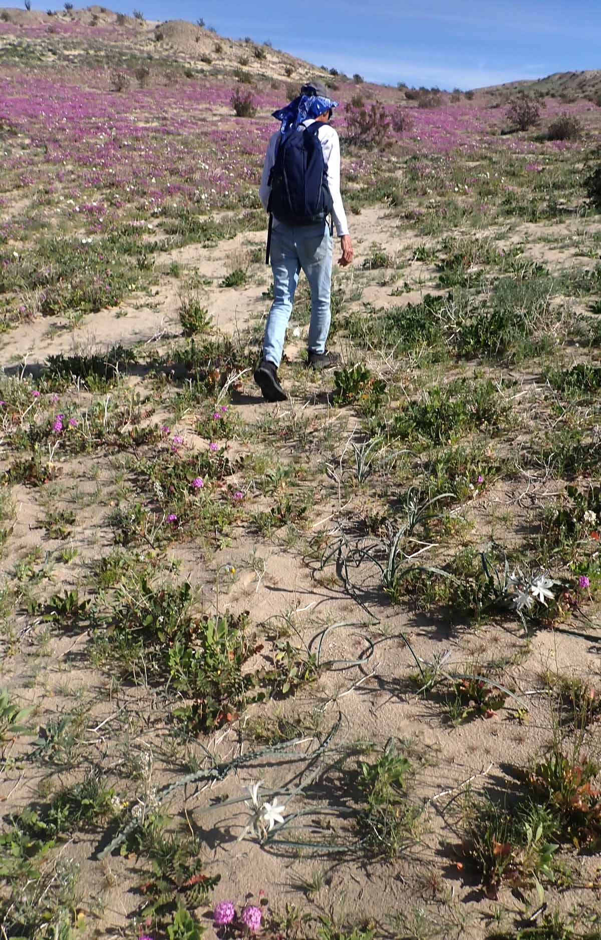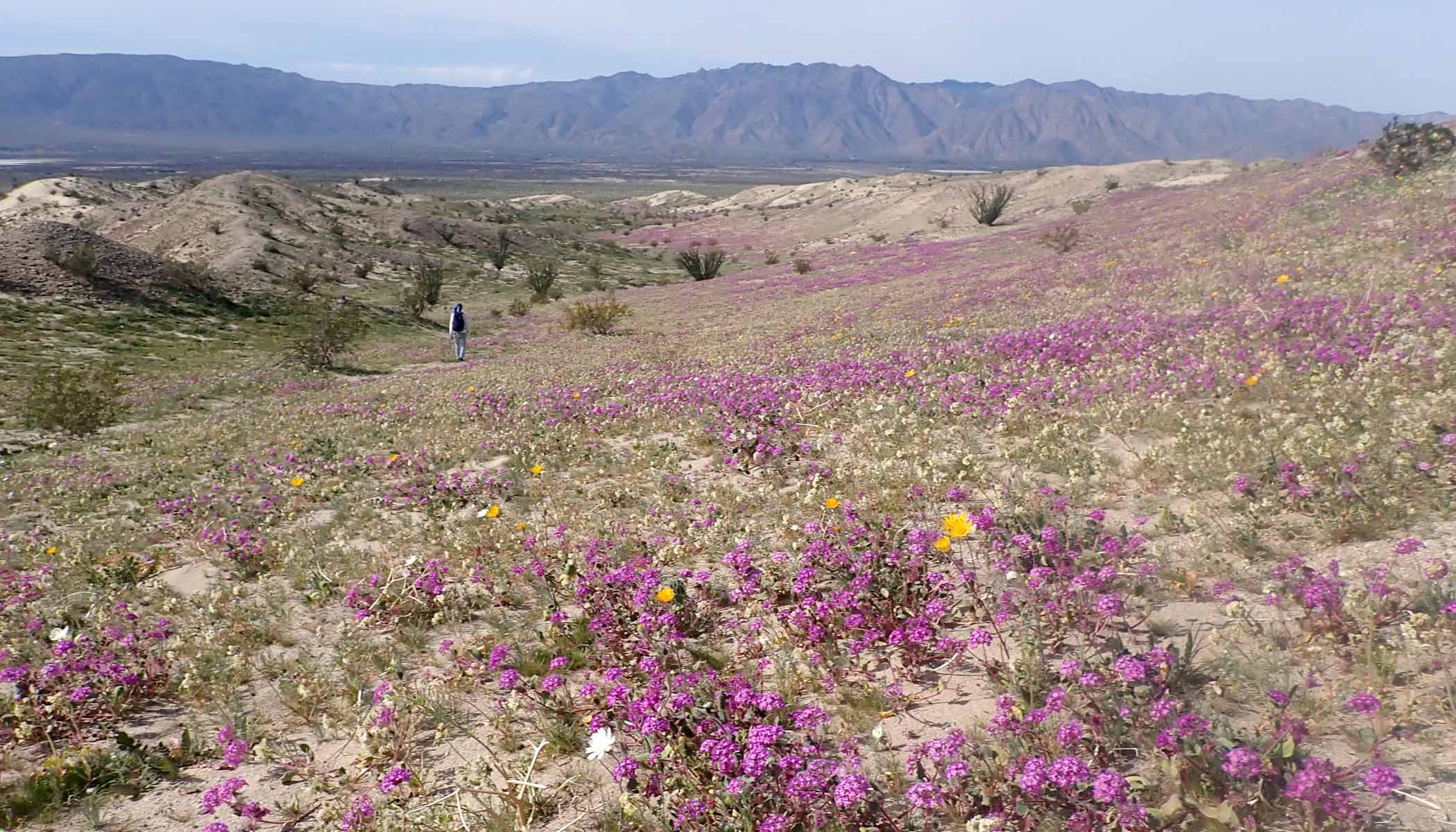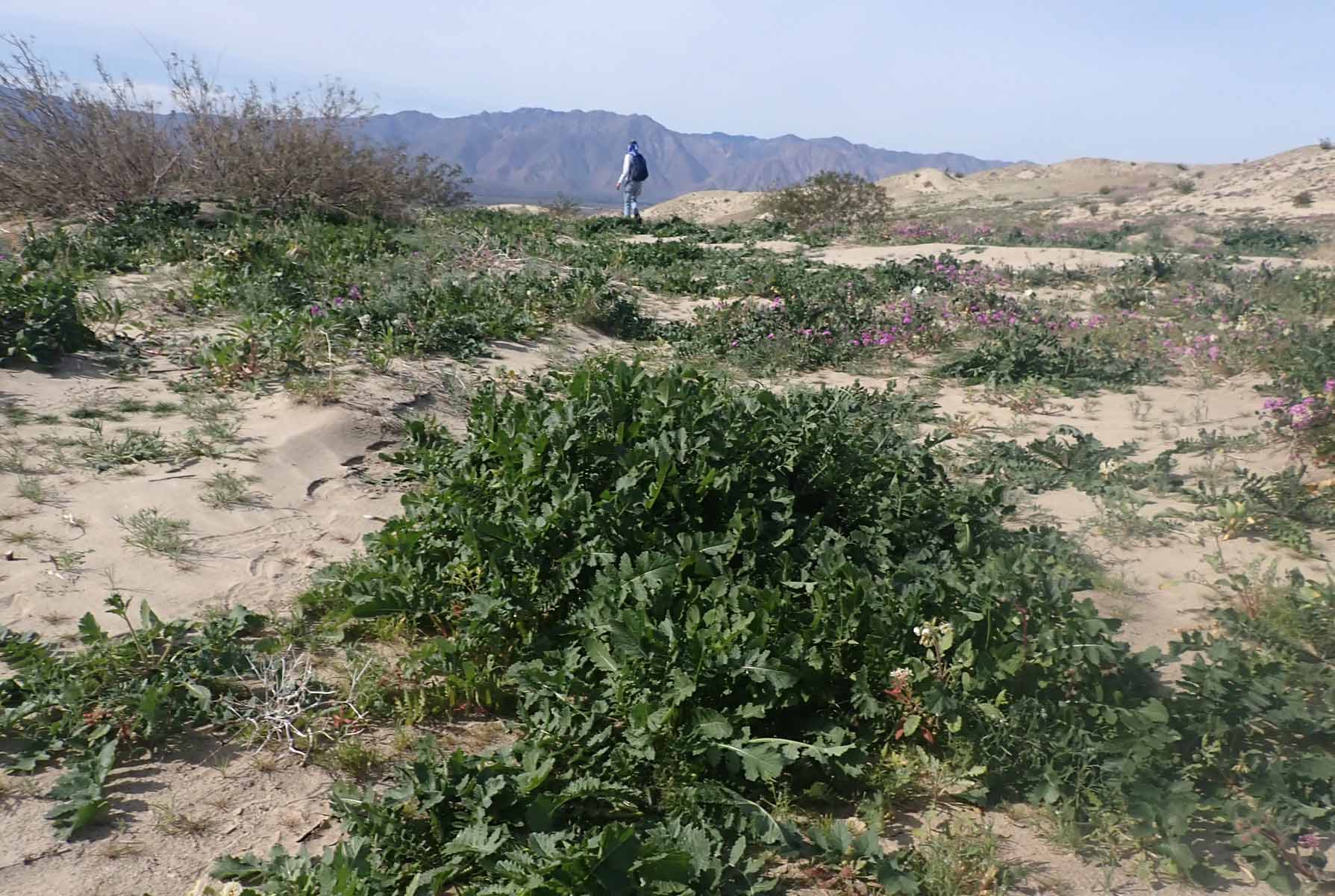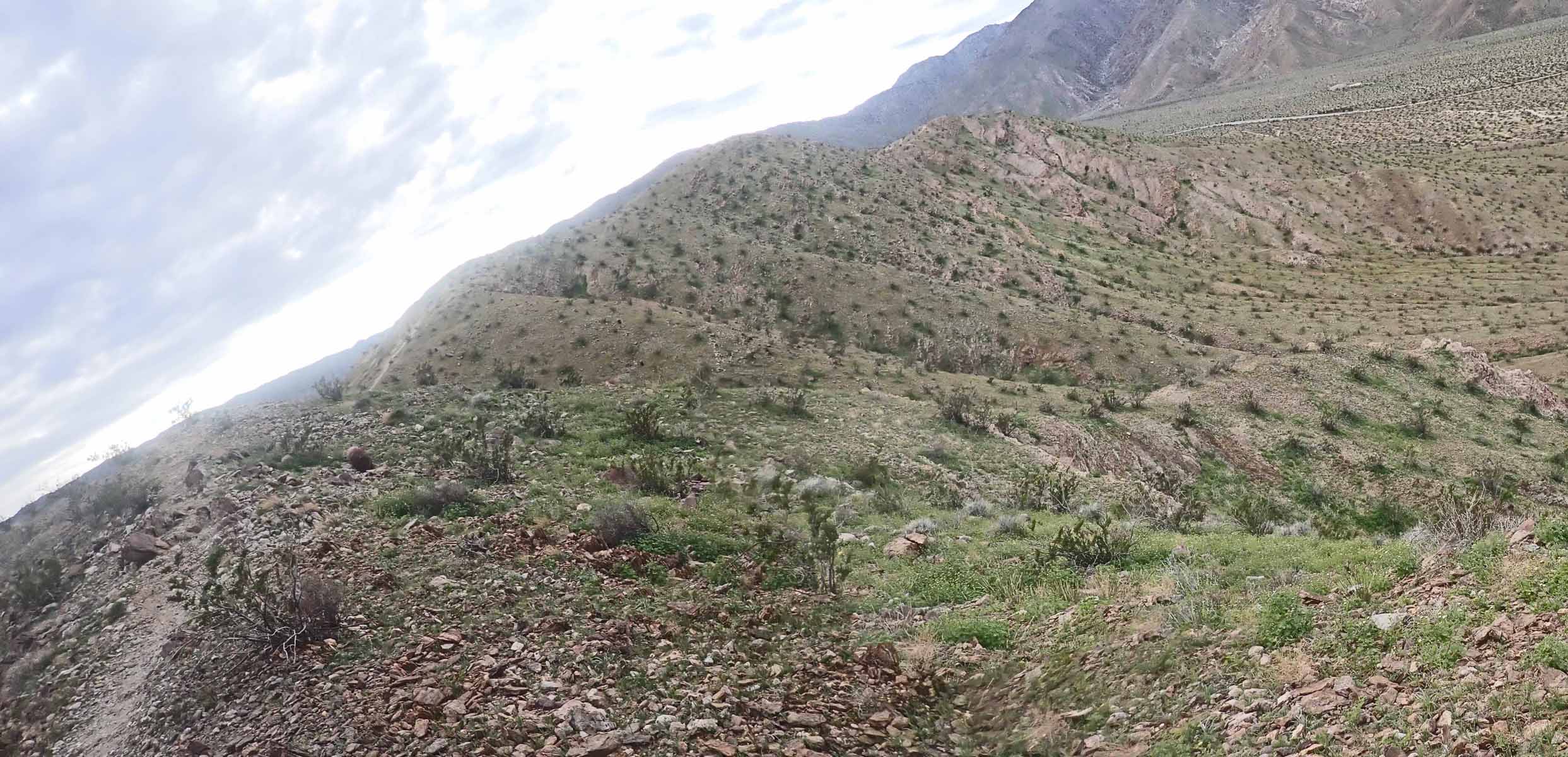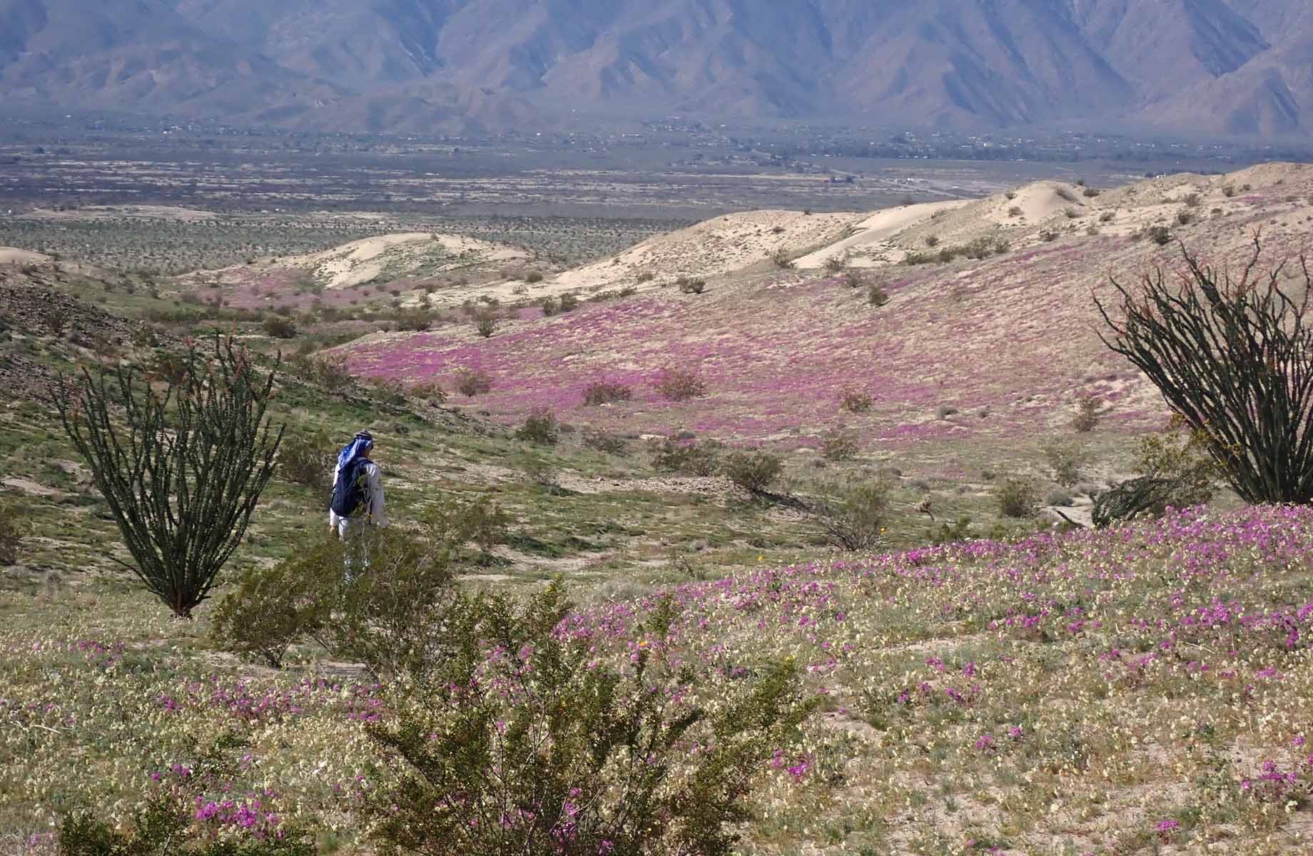 ![]() We dined on Canneloni this evening On the 25th, Kathy took it easy at home while Flaco & Jef hiked Ant Hill. Later that day, after Flaco left, Kathy & Jef walked the puppies on a new pole-line road for over 3 miles. Jef walked about 10 miles this day. ![]() Briefly stopped at Henderson Canyon flower fields before the hike ![]() ![]() Flaco at left in this panorama ![]() Flaco starting the hike ![]() Saw these 2 parasailors a few times on our hike ![]() One of, perhaps, 100 desert lily plants we saw on this hike ![]() Parasailors in front of Fonts Point(L) and Ant Hill(R) ![]() Actually saw these other hikers! ![]() Baby ant hills on way to Ant Hill ![]() Patch of 8 desert lilies ![]() We were about to walk on this dirt road when the 2 parasailors, following the road, passed right by us! ![]() ![]() ![]() ![]() Desert sunflower ![]() Dune primrose ![]() Lots of Sahara mustard as we near the hilly part of the hike ![]() ![]() ![]() Toro Peak ![]() Hit this fence line, but followed it a bit before crossing it at a low point, such as this ![]() Flaco getting something from pack ![]() ![]() When Flaco was about to put on more suntan lotion, I offered my bandana to protect his neck ![]() Flaco sporting his new headgear ![]() ![]() Desert lily bloom amid verbena field ![]() Flaco noticed this chuckwalla when it moved ![]() Another big patch of desert lily ![]() Creosote blooms with verbena field in background ![]() After reaching the ridge leading up to the peak ![]() Panorama with Ant Hill at left and flower field on south slope of ridge ![]() Upper reaches of this flower field are brown-eyed primrose ![]() ![]() Flaco approaching the peak ![]() ![]() ![]() Flaco at the peak. Jef called Julie & Kathy, but noone answered ![]() Badlands panorama from the peak ![]() Heading back down ![]() Heading into the Valley of Flowers ![]() ![]() ![]() ![]() ![]() Montezuma Grade & Borrego in distance. Green in middle ground might be mostly Sahara mustard ![]() Sahara mustard ![]() ![]() ![]() Summary of Ant Hill hike - about 6.5 miles ![]() Summary of hike with doggies - about 3.2 miles On the 26th, took it easy doing chores at home. On the 27th, Kathy returned to work. Jef walked to Tito's to pick up black Jeep, taking a new route. ![]() Meter still heading north ![]() After continuing x-country from Walking H, saw this abandonned wellhead ![]() Terrain to be traversed ![]() Chinchweed that bloomed so spectacularly in this area in October is all dead now ![]() Crossed this drainage choked with vegetation ![]() This might be the new invasive Valeria weed - this one about 5' tall ![]() Old pumphouse along DiGiorgio Rd ![]() Slab of an abandonned house ![]() Wellhead implies this was a pumphouse ![]() The drainage I crossed over emptied on east side of DiGiorgio Rd in a 6' deep trench - dammed up before enterring an even bigger 12' deep drainage - perhaps to have more water seep in here, not far from that pump house ![]() Where the main drainage comes from DiGiorgio - I believe this is when Palm Canyon creeks makes it this far ![]() Looking down the drainage channel - I believe this was made to prevent flooding at the Borrego Springs Resort ![]() Panorama of this channel ![]() Found this kite, which I later found out to be part of a $700 kite Steve had lost a year ago ![]() Turned out to be Steve's number ![]() Use your imagination.... No Trespassing, perhaps? ![]() Kathy had me look at the sunset this evening - just caught the tail end of it ![]() ![]() ![]() ![]() On the 28th, drove Kathy to MD in Rancho Mirage. We went on an hour hike from city hall afterwards, before shopping and driving home. ![]() Sunrise this morning ![]() Starting hike above the city hall ![]() City hall is composed of buildings to the left ![]() Sitting at the first lookout ![]() Next leg of hike took us to a water tank where we turned and came back ![]() Back at the lookout ![]() Words of wisdom ![]() Our viewing bench ![]() Flowers at Henderson Canyon as the sunset continues to fade ![]() ![]() ![]() ![]() On the 29th, another work day for Kathy. Jef did some weeding at Sewanee. ![]() Sunrise this morning ![]() On the 30th, did chores at home all day. On the 31st, packed up and drove to Niland to get wind chimes Kathy couldn't get weekend before and camped at Bashford's Hot Springs Resort. ![]() At Bashfords - we set up tent before heading to Bombay Beach ![]() We parked at "Last car that parked here is still missing" space, as Steve was packing up - managed to buy the wind chimes ![]() Steve bagging chimes for Kathy ![]() ![]() Tesseract projection ![]() Setting sun ![]() ![]() ![]() Roon rising about porta-potties ![]() Sun setting at left in this panorama with moon rising at right ![]() ![]() We spent an hour or so listening to a great band playing at the "trash dance" this evening at Bashford's rec room | |||||||||||||||||||||