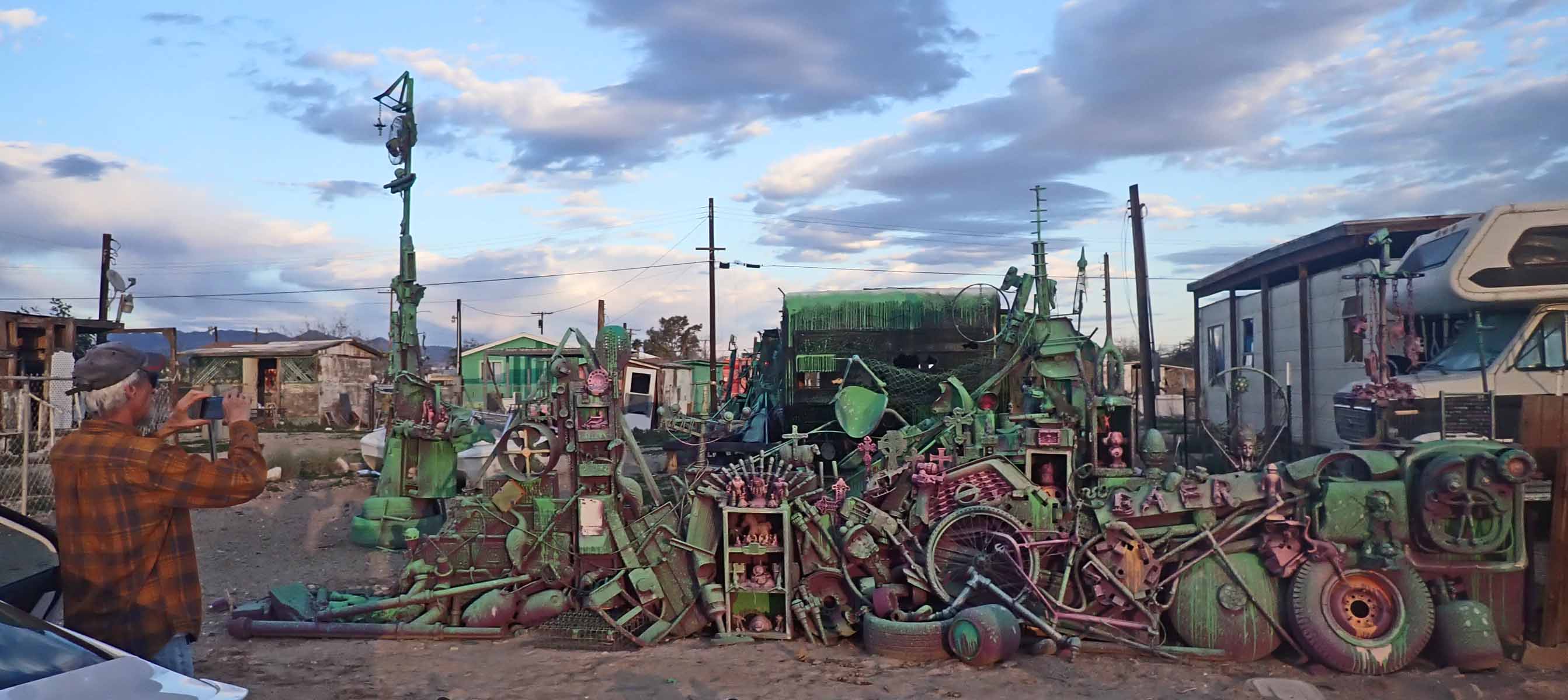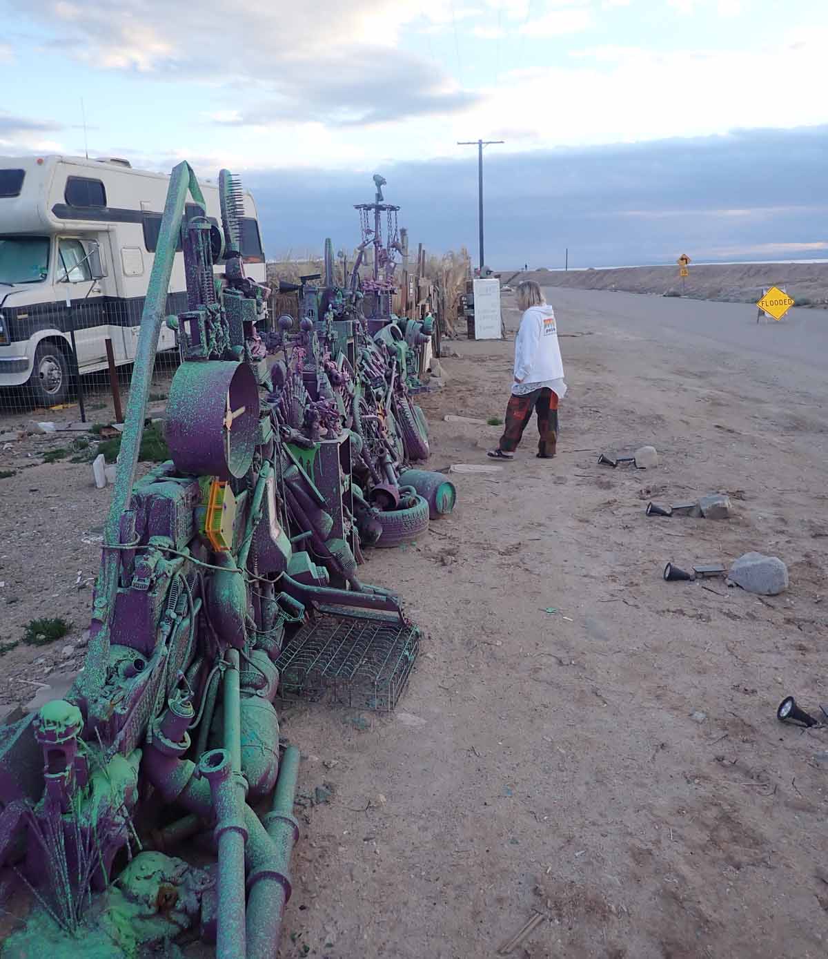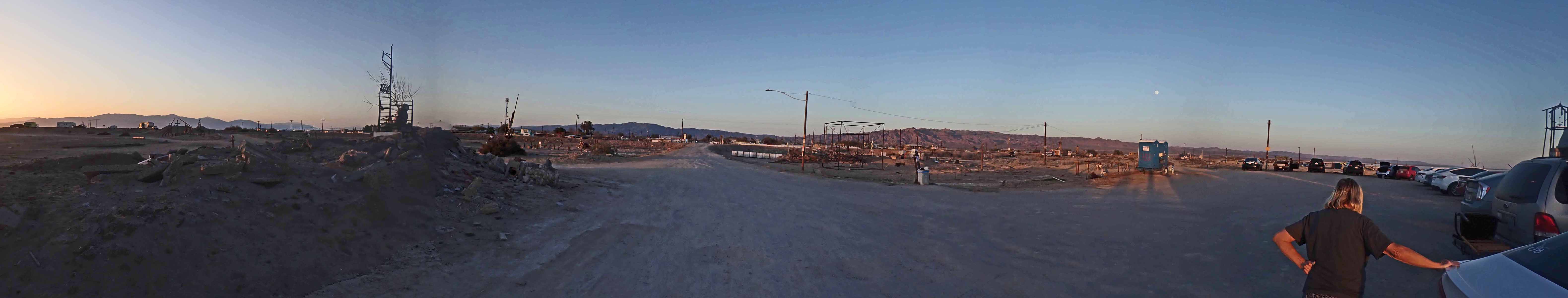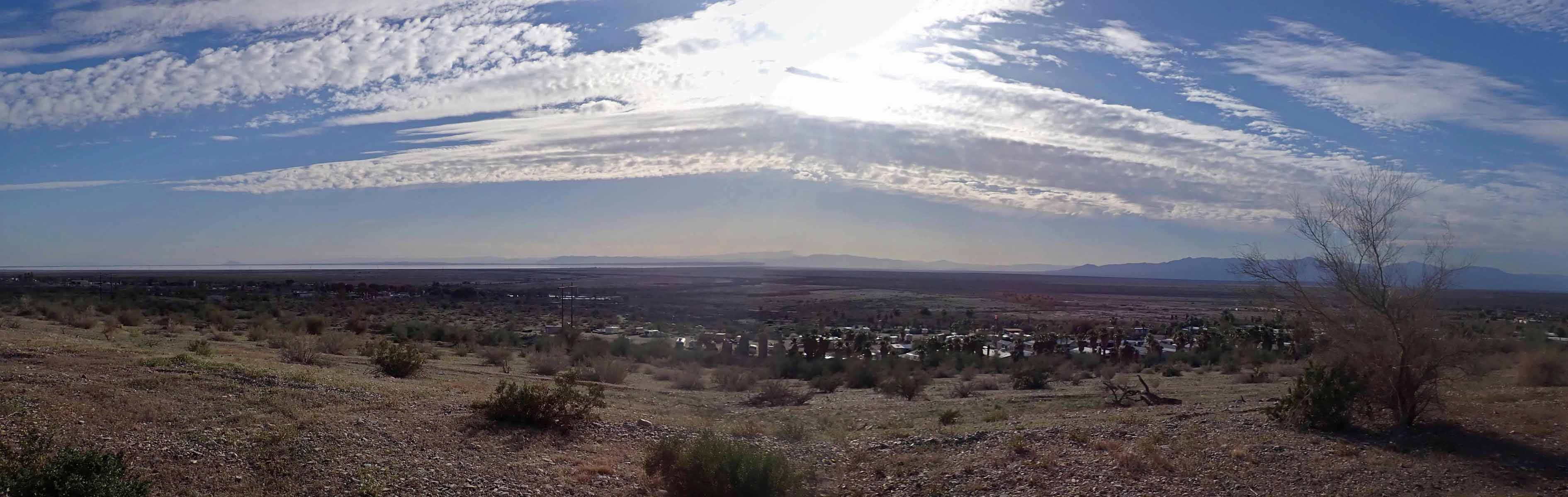 ![]() ![]() ![]() Most of the terrain was similar to this on walk home ![]() Dunno what weed this is ![]() Saw 2 pairs of pants on walk home ![]() Old fence around abandoned driving range ![]() Panorama from middle of driving range ![]() 3 of the 4 tires I saw dumped along my cross country route ![]() Saw this and another patch of broken glass ![]() Took this trail on final 1/2 mile on walk home ![]() This little (yellow) primrose and fillery were blooms I saw along the way ![]() Walked Daisy around circle after Kathy was unable to continue and she decided Pepper needed a new harness ![]() Hummingbird on nest by front door On the 20th, Kathy returned to work, seeing 5 patients. Jef met Dave at Sewanee & did weeding. Dave found problem with laundry room electricity was that it was on a GFI circuit. On the 21st, Jef & Kathy worked out at the office. ![]() Sunrise this morning ![]() ![]() On the 22nd, Kathy returned to work. Jef walked to town to do some banking and get mail, and walked back home the longer route. ![]() Clouds this morning ![]() Meter still going north ![]() Brittlebush flowers with desert hibiscus blooms behind ![]() Notchleaf phacelia in bloom ![]() Creosote blooming looking north from spur trail ![]() Limestone implies this was probably underwater a million years ago or so ![]() Heading up trail beyond point I usually turn off to go home ![]() Panorama ![]() Note the big tennis ball in front of old tennis club ![]() North slopes are still pretty green ![]() ![]() ![]() Creosote blooms with old tennis club in background ![]() ![]() Heading down this ridge to wash - sun is starting to come out ![]() ![]() The steep trail to pass I normally go is in this pic ![]() More easily seen in middle of this pic ![]() After reaching wash On the 23rd, mostly took it easy at home, doing chores. ![]() Walked doggies, doing a pole line on 2nd lap, doing about 2 miles this afternoon On the 24th, after seeing a facebook post on the "Obsidian Wave", we suggested we go there after Flaco arrived. We then went to Bombay Beach for a great sunset before driving home. ![]() Looking north to the Salton Sea from Obsidian Butte - I think the middle with dark rocks contain the "obsidian wave" ![]() Panorama from Obsidian Butte looking south and showing all the nearby geothermal power plants ![]() Panorama with our car in the middle left - Kathy was talking to other people, who were rock hounds, while Flaco & Jef were atop the butte ![]() Flaco & Jef ![]() Heading back down ![]() We walked down to the beach to check out this mostly obsidian area ![]() Flaco helped Kathy down to the beach while oblivious Jef snapped pix ![]() Small obsidian sample ![]() Kathy & Flaco ![]() These might be bird blinds for photographers ![]() Beach panorama ![]() Kathy picked up some small samples ![]() ![]() Kathy walking with her rockhound hammer ![]() The beach was entirely composed of barnacles! ![]() ![]() ![]() Kathy with obsidian sample & Jef ![]() ![]() ![]() ![]() Kathy needed to go to bathroom, so stopped at this gas station in Niland ![]() Besides this collarless dog, we were amused with a crazy person digging a bottle from the trash and using it as a light saber against a phantom menace. We had to help Kathy find her wallet, as she temporarily lost it in the bathroom ![]() Arriving in Bombay Beach ![]() Sample pieces of Bombay Beach art ![]() ![]() Cool clouds forming ![]() This will turn into a great sunset ![]() ![]() ![]() ![]() We didn't check this out, but looks like a good viewing point on 2nd floor ![]() 270° panorama of SW corner of berm surrounding the town ![]() Bridge made out of a trailer ![]() The sunset is starting ![]() ![]() We discover the parking area for the beach ![]() Jef took this pic of stranded boat, perhaps a Spanish sailing vessel from the time of Cabrillo? ![]() ![]() ![]() ![]() Conditions may exist with Flaco ![]() ![]() ![]() ![]() ![]() A couple of guys drove by on their unicycles ![]() ![]() Sea monster arm is high & dry, as the lake level has been going down ![]() ![]() ![]() Flaco on the grounded cube raft ![]() Jef catching the now high & dry fish ![]() ![]() The other thing ![]() This sea might be gone someday, but the oceans will remain ![]() Uh, oh. A pirate pyrimid! ![]() Kathy was talking with the guy in this van while Flaco & Jef took pix - she wanted to buy a wind chimes, but we didn't have enuff cash, so Kathy promised to be back in a week ![]() We had a drink at the Ski Inn, after finding the Legion was closed - note the dollars decorating the walls & ceiling ![]() Flaco playing Semer's(Kathy's dad) old Silvertone, which hadn't been played for over 50 years, and was still in perfect tune! ![]() Kathy & Flaco jammed a little |