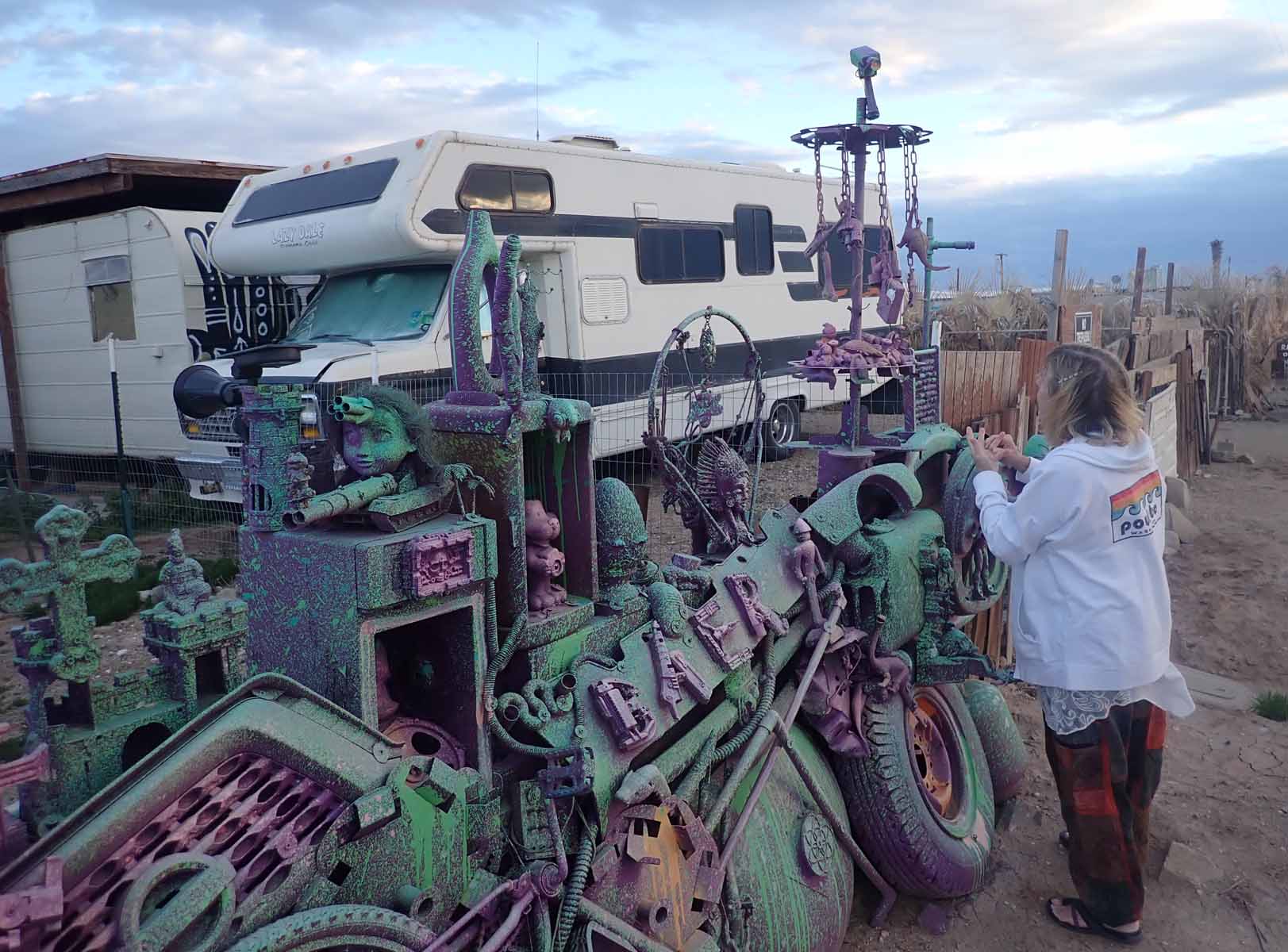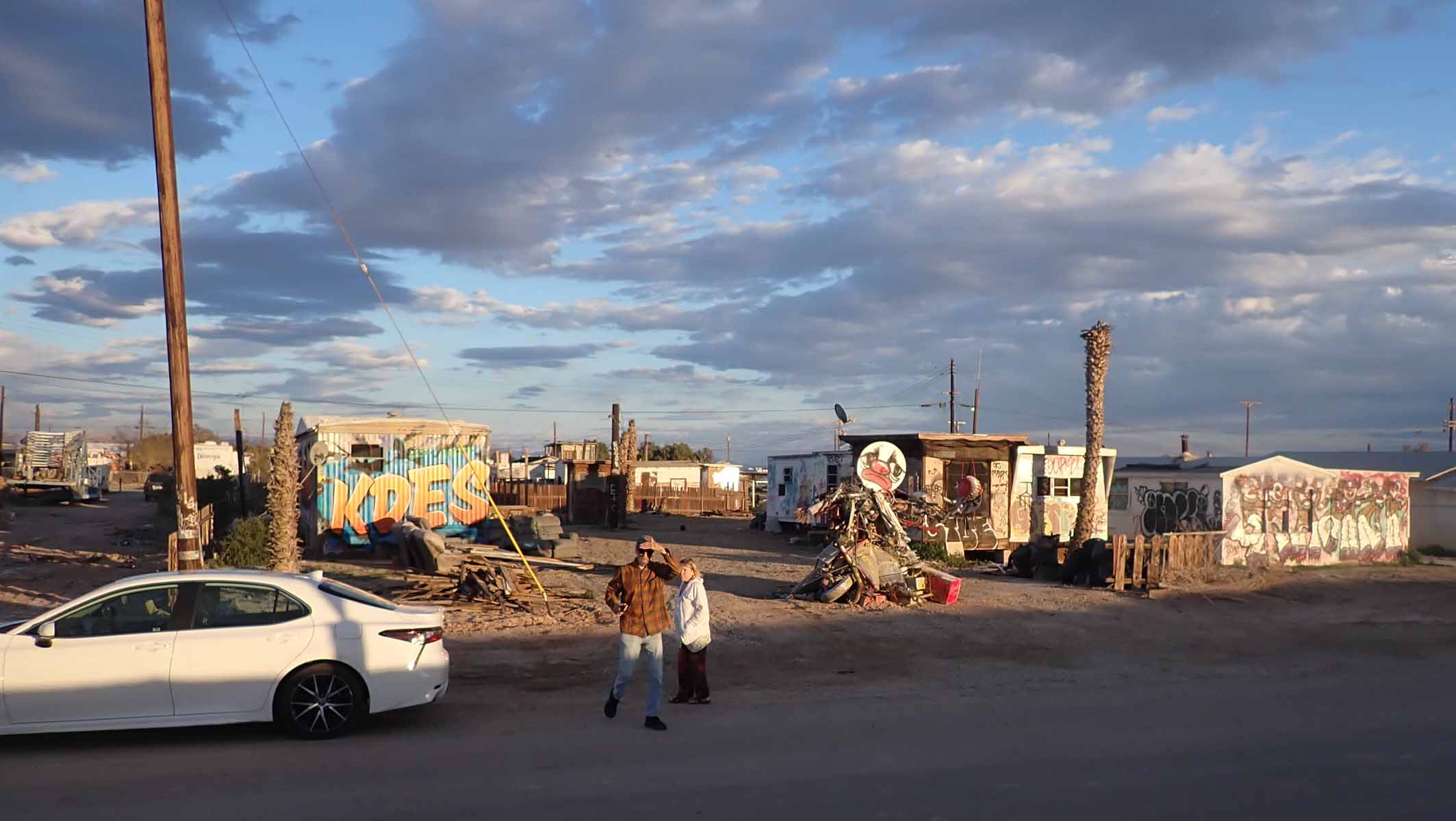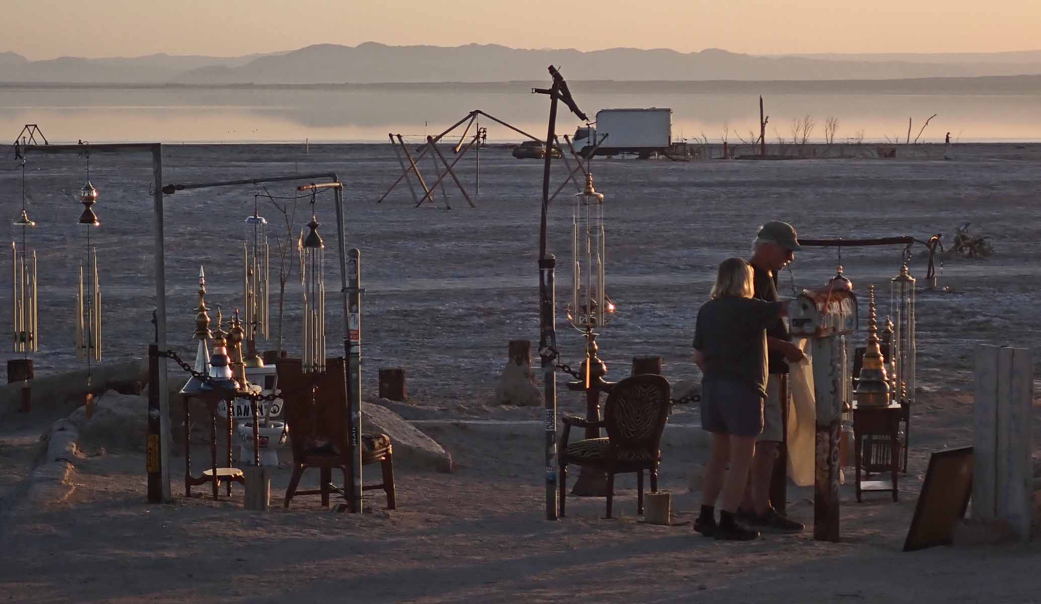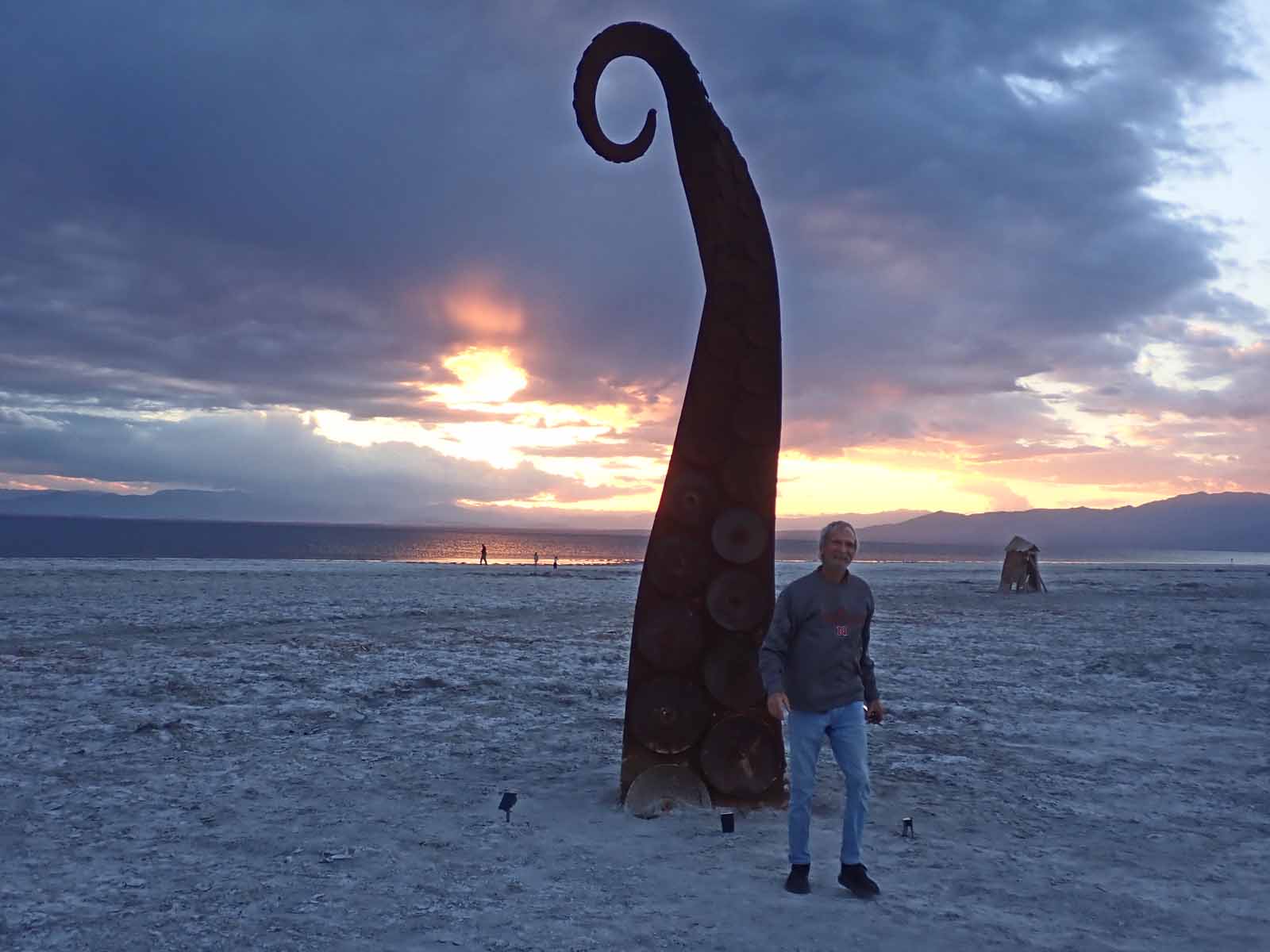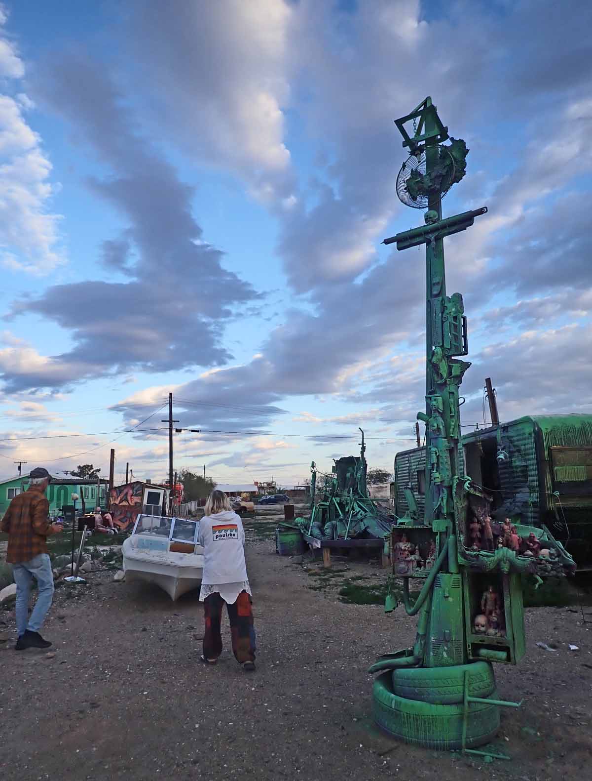 ![]() ![]() ![]() Most of the terrain was similar to this on walk home ![]() Dunno what weed this is ![]() Saw 2 pairs of pants on walk home ![]() Old fence around abandoned driving range ![]() Panorama from middle of driving range ![]() 3 of the 4 tires I saw dumped along my cross country route ![]() Saw this and another patch of broken glass ![]() Took this trail on final 1/2 mile on walk home ![]() This little (yellow) primrose and fillery were blooms I saw along the way ![]() Walked Daisy around circle after Kathy was unable to continue and she decided Pepper needed a new harness ![]() Hummingbird on nest by front door On the 20th, Kathy returned to work, seeing 5 patients. Jef met Dave at Sewanee & did weeding. Dave found problem with laundry room electricity was that it was on a GFI circuit. On the 21st, Jef & Kathy worked out at the office. ![]() Sunrise this morning ![]() ![]() On the 22nd, Kathy returned to work. Jef walked to town to do some banking and get mail, and walked back home the longer route. ![]() Clouds this morning ![]() Meter still going north ![]() Brittlebush flowers with desert hibiscus blooms behind ![]() Notchleaf phacelia in bloom ![]() Creosote blooming looking north from spur trail ![]() Limestone implies this was probably underwater a million years ago or so ![]() Heading up trail beyond point I usually turn off to go home ![]() Panorama ![]() Note the big tennis ball in front of old tennis club ![]() North slopes are still pretty green ![]() ![]() ![]() Creosote blooms with old tennis club in background ![]() ![]() Heading down this ridge to wash - sun is starting to come out ![]() ![]() The steep trail to pass I normally go is in this pic ![]() More easily seen in middle of this pic ![]() After reaching wash On the 23rd, mostly took it easy at home, doing chores. ![]() Walked doggies, doing a pole line on 2nd lap, doing about 2 miles this afternoon On the 24th, after seeing a facebook post on the "Obsidian Wave", we suggested we go there after Flaco arrived. We then went to Bombay Beach for a great sunset before driving home. ![]() Looking north to the Salton Sea from Obsidian Butte - I think the middle with dark rocks contain the "obsidian wave" ![]() Panorama from Obsidian Butte looking south and showing all the nearby geothermal power plants ![]() Panorama with our car in the middle left - Kathy was talking to other people, who were rock hounds, while Flaco & Jef were atop the butte ![]() Flaco & Jef ![]() Heading back down ![]() We walked down to the beach to check out this mostly obsidian area ![]() Flaco helped Kathy down to the beach while oblivious Jef snapped pix ![]() Small obsidian sample ![]() Kathy & Flaco ![]() These might be bird blinds for photographers ![]() Beach panorama ![]() Kathy picked up some small samples ![]() ![]() Kathy walking with her rockhound hammer ![]() The beach was entirely composed of barnacles! ![]() ![]() ![]() Kathy with obsidian sample & Jef ![]() ![]() ![]() ![]() Kathy needed to go to bathroom, so stopped at this gas station in Niland ![]() Besides this collarless dog, we were amused with a crazy person digging a bottle from the trash and using it as a light saber against a phantom menace. We had to help Kathy find her wallet, as she temporarily lost it in the bathroom ![]() Arriving in Bombay Beach ![]() Sample pieces of Bombay Beach art ![]() ![]() Cool clouds forming ![]() This will turn into a great sunset ![]() ![]() ![]() ![]() We didn't check this out, but looks like a good viewing point on 2nd floor ![]() 270° panorama of SW corner of berm surrounding the town ![]() Bridge made out of a trailer ![]() The sunset is starting ![]() ![]() We discover the parking area for the beach ![]() Jef took this pic of stranded boat, perhaps a Spanish sailing vessel from the time of Cabrillo? ![]() ![]() ![]() ![]() Conditions may exist with Flaco ![]() ![]() ![]() ![]() ![]() A couple of guys drove by on their unicycles ![]() ![]() Sea monster arm is high & dry, as the lake level has been going down ![]() ![]() ![]() Flaco on the grounded cube raft ![]() Jef catching the now high & dry fish ![]() ![]() The other thing ![]() This sea might be gone someday, but the oceans will remain ![]() Uh, oh. A pirate pyrimid! ![]() Kathy was talking with the guy in this van while Flaco & Jef took pix - she wanted to buy a wind chimes, but we didn't have enuff cash, so Kathy promised to be back in a week ![]() We had a drink at the Ski Inn, after finding the Legion was closed - note the dollars decorating the walls & ceiling ![]() Flaco playing Semer's(Kathy's dad) old Silvertone, which hadn't been played for over 50 years, and was still in perfect tune! ![]() Kathy & Flaco jammed a little |