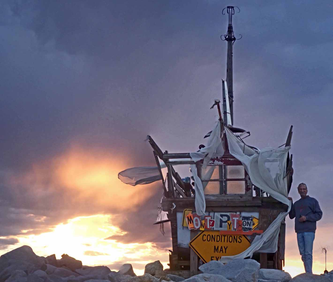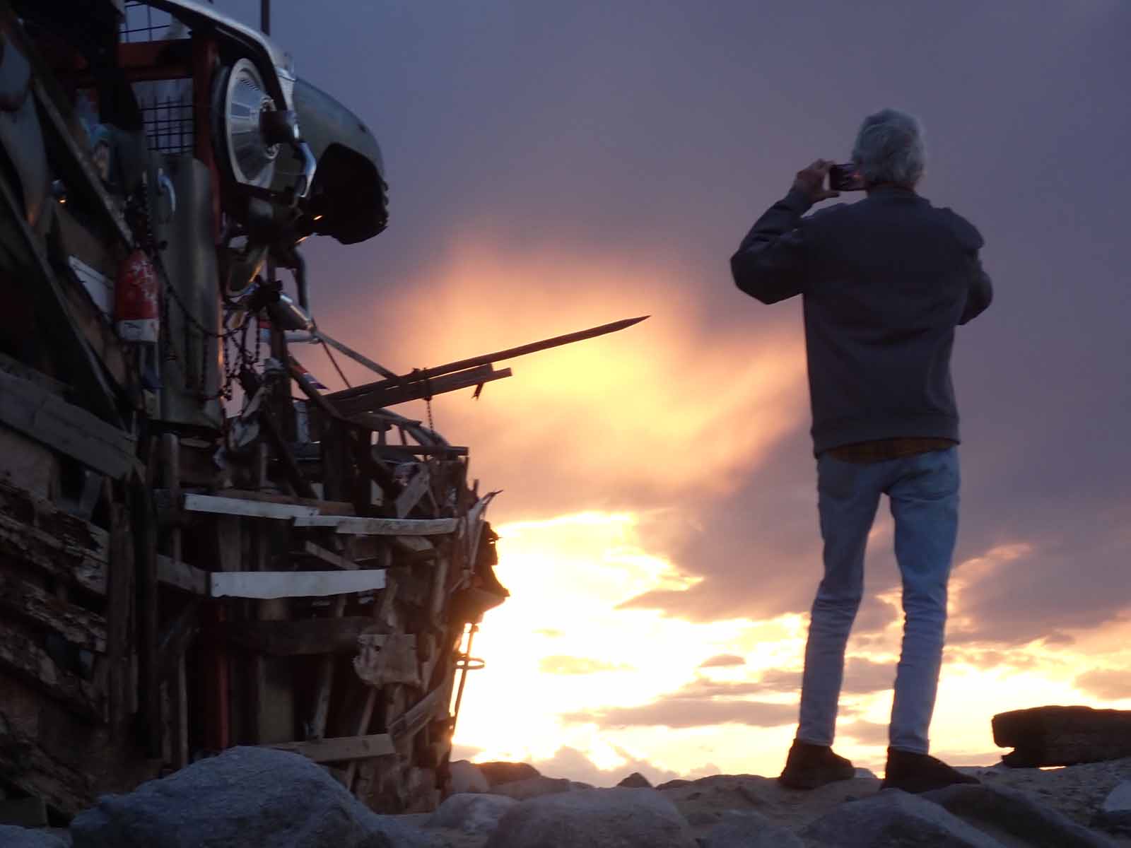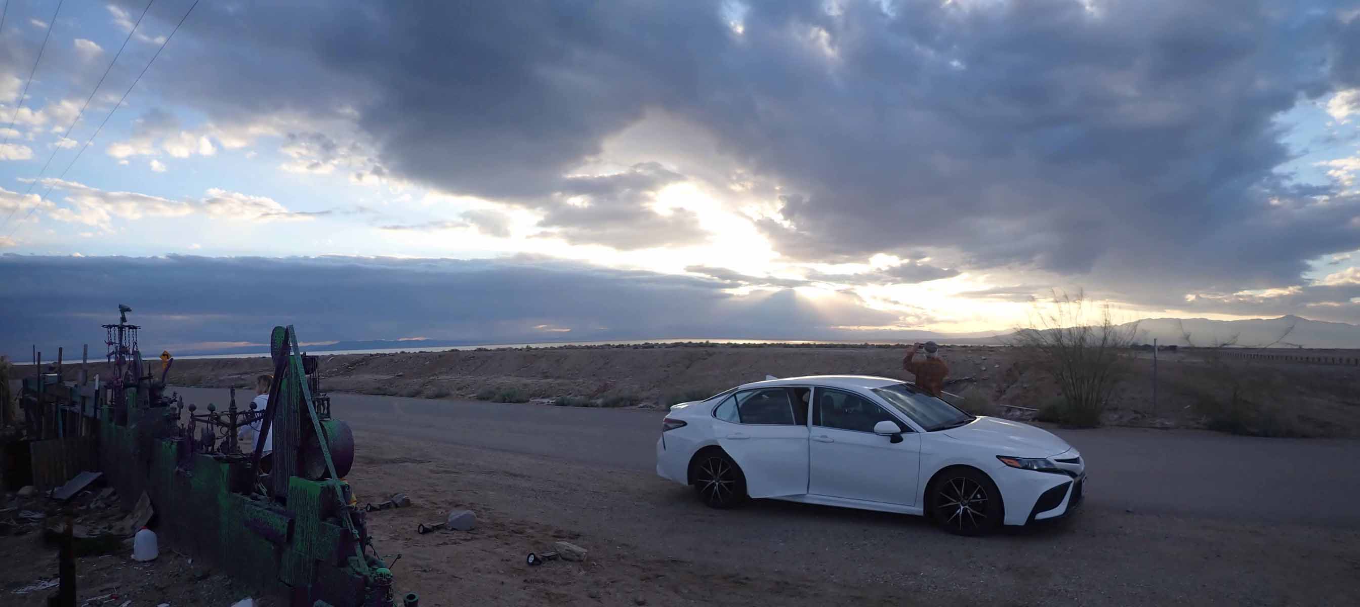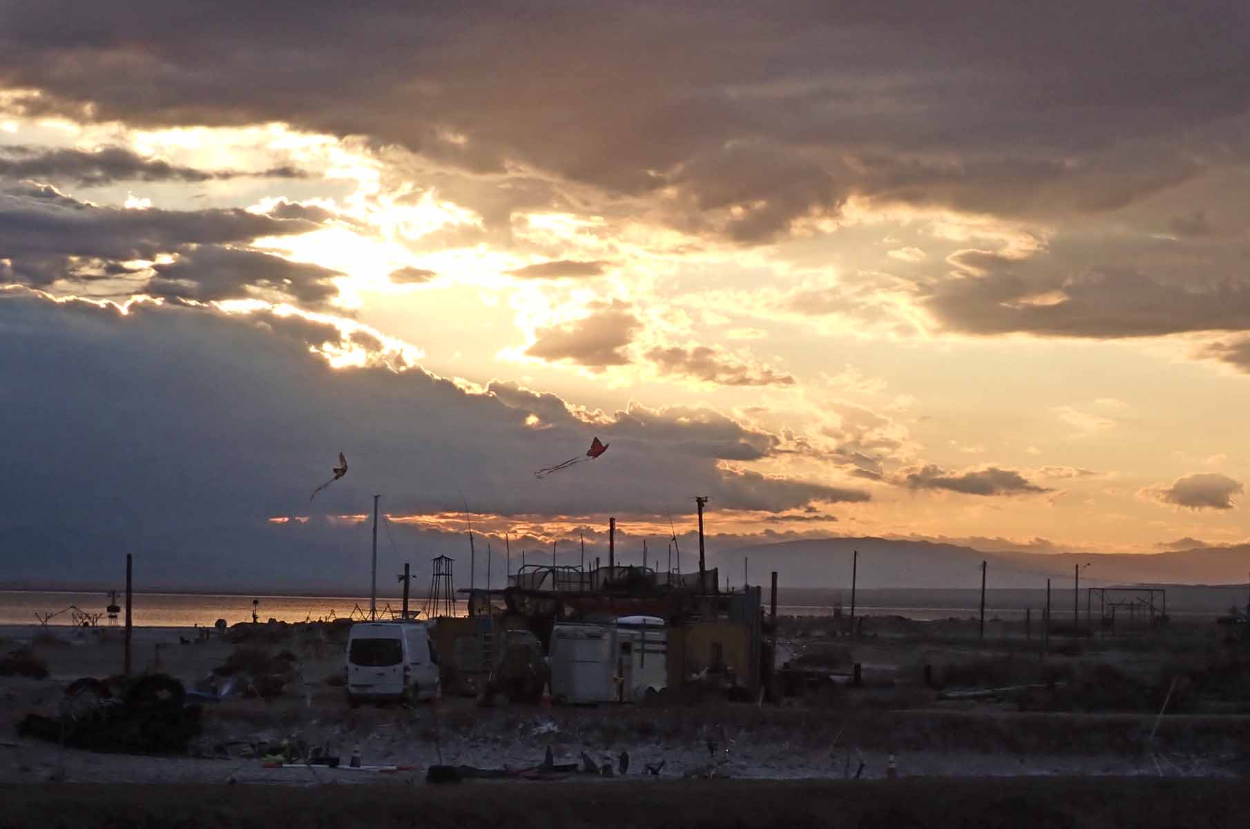 ![]() ![]() ![]() Most of the terrain was similar to this on walk home ![]() Dunno what weed this is ![]() Saw 2 pairs of pants on walk home ![]() Old fence around abandoned driving range ![]() Panorama from middle of driving range ![]() 3 of the 4 tires I saw dumped along my cross country route ![]() Saw this and another patch of broken glass ![]() Took this trail on final 1/2 mile on walk home ![]() This little (yellow) primrose and fillery were blooms I saw along the way ![]() Walked Daisy around circle after Kathy was unable to continue and she decided Pepper needed a new harness ![]() Hummingbird on nest by front door On the 20th, Kathy returned to work, seeing 5 patients. Jef met Dave at Sewanee & did weeding. Dave found problem with laundry room electricity was that it was on a GFI circuit. On the 21st, Jef & Kathy worked out at the office. ![]() Sunrise this morning ![]() ![]() On the 22nd, Kathy returned to work. Jef walked to town to do some banking and get mail, and walked back home the longer route. ![]() Clouds this morning ![]() Meter still going north ![]() Brittlebush flowers with desert hibiscus blooms behind ![]() Notchleaf phacelia in bloom ![]() Creosote blooming looking north from spur trail ![]() Limestone implies this was probably underwater a million years ago or so ![]() Heading up trail beyond point I usually turn off to go home ![]() Panorama ![]() Note the big tennis ball in front of old tennis club ![]() North slopes are still pretty green ![]() ![]() ![]() Creosote blooms with old tennis club in background ![]() ![]() Heading down this ridge to wash - sun is starting to come out ![]() ![]() The steep trail to pass I normally go is in this pic ![]() More easily seen in middle of this pic ![]() After reaching wash On the 23rd, mostly took it easy at home, doing chores. ![]() Walked doggies, doing a pole line on 2nd lap, doing about 2 miles this afternoon On the 24th, after seeing a facebook post on the "Obsidian Wave", we suggested we go there after Flaco arrived. We then went to Bombay Beach for a great sunset before driving home. ![]() Looking north to the Salton Sea from Obsidian Butte - I think the middle with dark rocks contain the "obsidian wave" ![]() Panorama from Obsidian Butte looking south and showing all the nearby geothermal power plants ![]() Panorama with our car in the middle left - Kathy was talking to other people, who were rock hounds, while Flaco & Jef were atop the butte ![]() Flaco & Jef ![]() Heading back down ![]() We walked down to the beach to check out this mostly obsidian area ![]() Flaco helped Kathy down to the beach while oblivious Jef snapped pix ![]() Small obsidian sample ![]() Kathy & Flaco ![]() These might be bird blinds for photographers ![]() Beach panorama ![]() Kathy picked up some small samples ![]() ![]() Kathy walking with her rockhound hammer ![]() The beach was entirely composed of barnacles! ![]() ![]() ![]() Kathy with obsidian sample & Jef ![]() ![]() ![]() ![]() Kathy needed to go to bathroom, so stopped at this gas station in Niland ![]() Besides this collarless dog, we were amused with a crazy person digging a bottle from the trash and using it as a light saber against a phantom menace. We had to help Kathy find her wallet, as she temporarily lost it in the bathroom ![]() Arriving in Bombay Beach ![]() Sample pieces of Bombay Beach art ![]() ![]() Cool clouds forming ![]() This will turn into a great sunset ![]() ![]() ![]() ![]() We didn't check this out, but looks like a good viewing point on 2nd floor ![]() 270° panorama of SW corner of berm surrounding the town ![]() Bridge made out of a trailer ![]() The sunset is starting ![]() ![]() We discover the parking area for the beach ![]() Jef took this pic of stranded boat, perhaps a Spanish sailing vessel from the time of Cabrillo? ![]() ![]() ![]() ![]() Conditions may exist with Flaco ![]() ![]() ![]() ![]() ![]() A couple of guys drove by on their unicycles ![]() ![]() Sea monster arm is high & dry, as the lake level has been going down ![]() ![]() ![]() Flaco on the grounded cube raft ![]() Jef catching the now high & dry fish ![]() ![]() The other thing ![]() This sea might be gone someday, but the oceans will remain ![]() Uh, oh. A pirate pyrimid! ![]() Kathy was talking with the guy in this van while Flaco & Jef took pix - she wanted to buy a wind chimes, but we didn't have enuff cash, so Kathy promised to be back in a week ![]() We had a drink at the Ski Inn, after finding the Legion was closed - note the dollars decorating the walls & ceiling ![]() Flaco playing Semer's(Kathy's dad) old Silvertone, which hadn't been played for over 50 years, and was still in perfect tune! ![]() Kathy & Flaco jammed a little |