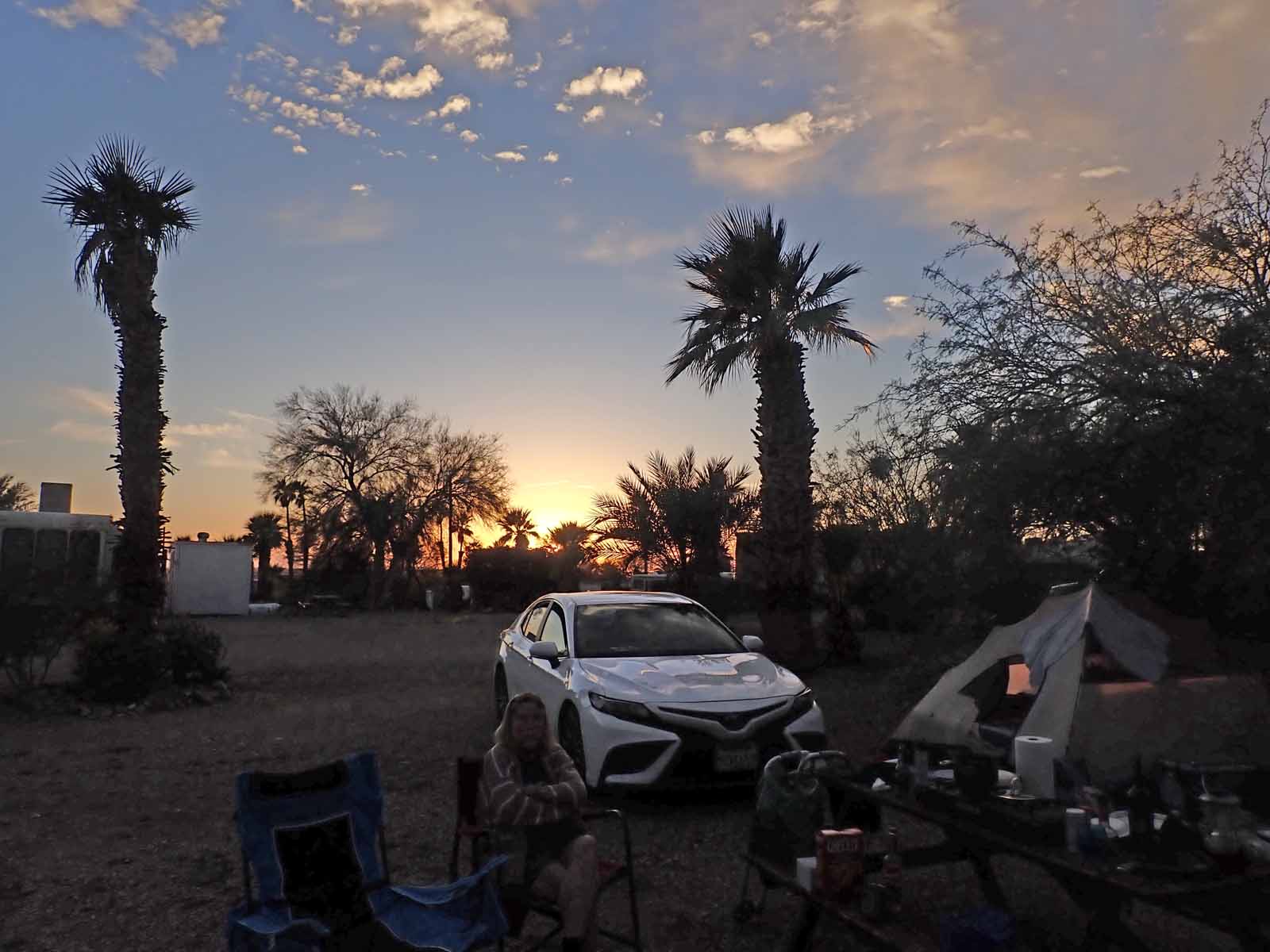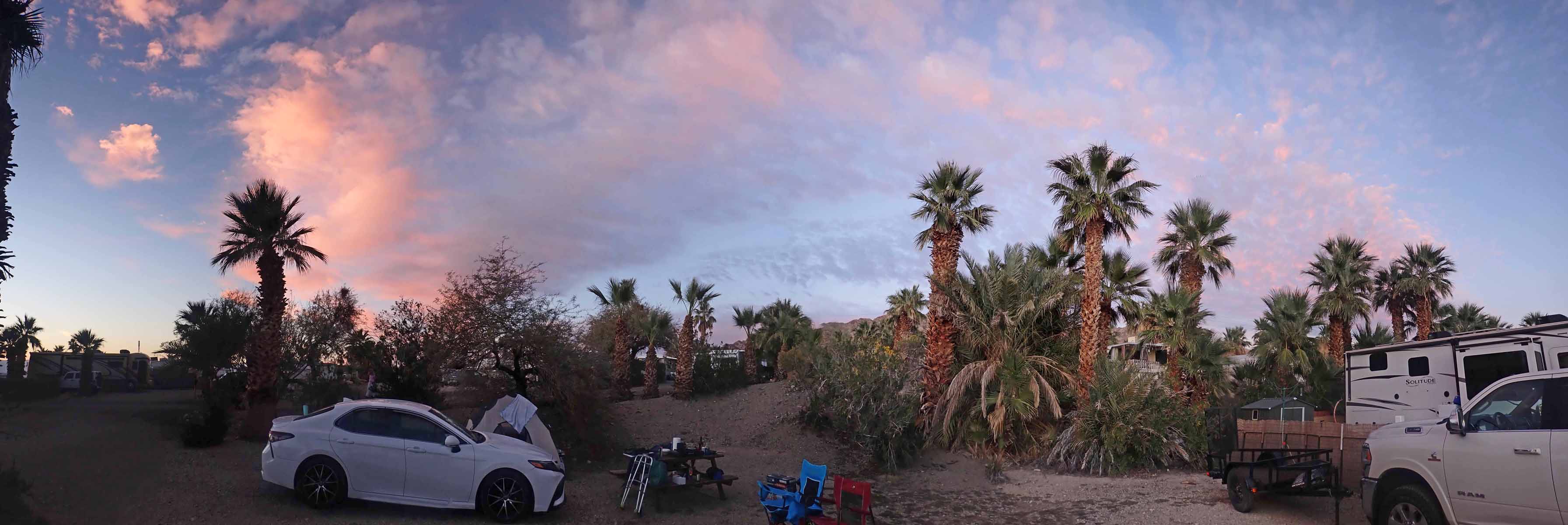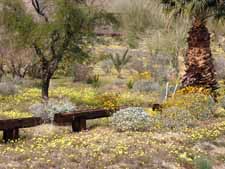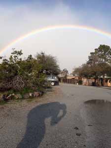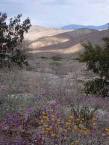 On the 1st, spent the entire day at Bashford's. In the afternoon, we checked out the hot & warm pools. We saw a couple of "black bombers" - the nasty horseflies from livestock in the nearby agricultural fields. We finished up the rest of the salad and fish tacos that we prepared before we left. ![]() Jef walked doggies this morning into the "Labyrinth" ![]() We continued into the junkyard part of the property ![]() An old fire engine ![]() More old vehicles ![]() Hot water flowing out of Bashfords ![]() Looking east to the mountain ![]() The labyrinth ![]() Back at our camp ![]() Puppies were tied to picnic table during the day ![]() At the hot spa ![]() ![]() Kathy seems to be sprouting a couple of screaming kids like Stacey & Holley - or weird reflexions ![]() Panorama showing the hot & warm pools ![]() Jef walked doggies up to frontage road that was the downhill berm preventing flooding should there be a break in the All American Canal ![]() Note the lack of foliage on the mountain(except in the draws) - indicating solid rock ![]() Bashfords from above ![]() A field of apricot mallows! ![]() The All American Canal ![]() Break in the canal to allow flash floods past without knocking out the canal ![]() These flowers are like poppies, but are probably some kind of primrose ![]() Sand blazing stars over here have much larger flowers than in Borrego ![]() Sand blazing stars ![]() Notch-leaf phacelia in bloom ![]() That primrose again ![]() Panorama looking west ![]() Doggies descending on road made up of river rock ![]() 2 doves fighting for a perch ![]() Doggies resting after hike ![]() Looking to be a good sunset ![]() Our camp ![]() ![]() ![]() ![]() ![]() ![]() ![]() ![]() Brittlebush blooming by our camp ![]() ![]() One of the interesting vehicles driving around the camp ![]() Kathy toasting tortillas for our fish tacos ![]() Our camp at night ![]() On the 2nd, we walked the doggies before packing up and leaving Bashfords. As the zipper to the tent broke the day before, the doggies spent the nite in the car. Kathy had some diahhrea, so each of the 2 nites we were here, she drove the 100+ yards to the bathroom at all hours of the nite. We left the tent in the dumpster, as the new bed didn't fit it so well. We drove straight back home. ![]() Hawks circling above us this morning ![]() ![]() ![]() Desert cedars ![]() Kathy & Daisy in the junkyard ![]() Fire truck still has its hoses! ![]() Colour is mineral residue of outgoing hot water ![]() One of the bulletin boards ![]() We saw this geyser (blown water line?) as we neared Mecca On the 3rd, Kathy returned to work a long day with 5 patients, including 2 new ones. On the 4th, Lupita gave Kathy cooking lessons, making beans, salsa, pasta salad, and a stringbean beef dish. Jef did some filing and other paperwork. ![]() Stick bug on inside of Kym's screen door ![]() Desert dandelions have started to pop On the 5th, Kathy returned to work a full day at the office with 4 patients. On the 6th, drove Kathy to MD in SD. Shopped on the way home. ![]() Sunrise this morning ![]() ![]() Returned from SD, stopped to capture Fonts Point before sun disappeared. On the 7th, Kathy resumed walking. We walked around the circle and did one spur - about a mile. We cooked stuffed bell peppers for dinner and had them with the Morgans. ![]() Kathy on hike ![]() Desert dandelions near split level house ![]() Pepper near top of circle ![]() Looking west from end of Lightning spur ![]() Morgans came over for dinner ![]() On the 8th, took Kathy & puppies on a 2.5 mile walk to old country club. ![]() Grilled freitata sandwich this morning ![]() Both brittlebush & dandelions blooming in our front yard On the 9th, drove Kathy to dentist & we shopped on the way home. On the 10th, Kathy had a full day at the office. On the 11th, Jef drove to SD to dental appt. Got cleaning, but implant was infected, so no progress on that. ![]() Sunrise this morning ![]() 2 baby birds in hummingbird nest right outside our front door ![]() A cloudy day ![]() ![]() Big Rock house ![]() Looks like progress has been made by Holley in rennovation ![]() Panorama near Henshaw with low clouds & 1st glimpse of sun this day ![]() Sunny Palomar Mtn ![]() Drizzled on me half the way home up to here (Ranchita) ![]() At top of grade I see blue sky! ![]() Panorama at Crawford overlook ![]() Anti-crepuscular rays over Travelers Peak ![]() Panorama of whole valley ![]() Brittlebush blooming at Crawford ![]() ![]() Near bottom of grade I saw this small rainbow segment - to the right in this pic |
