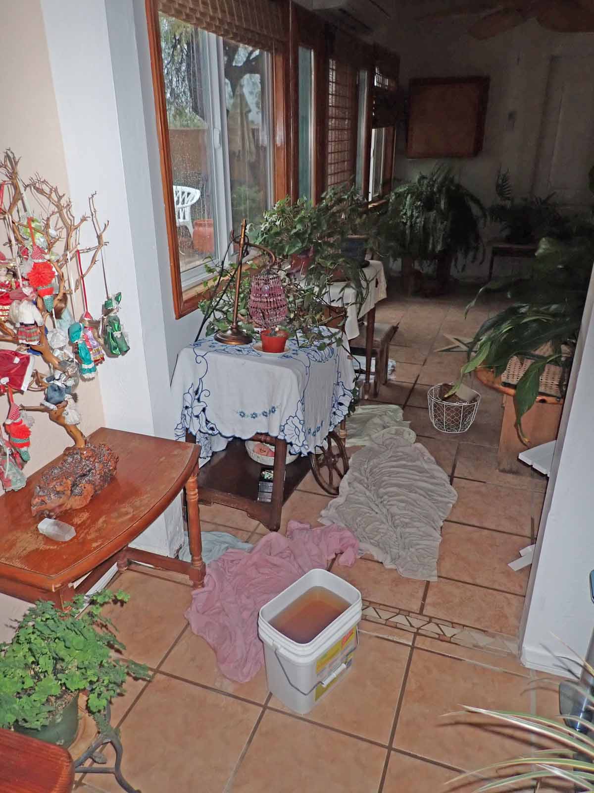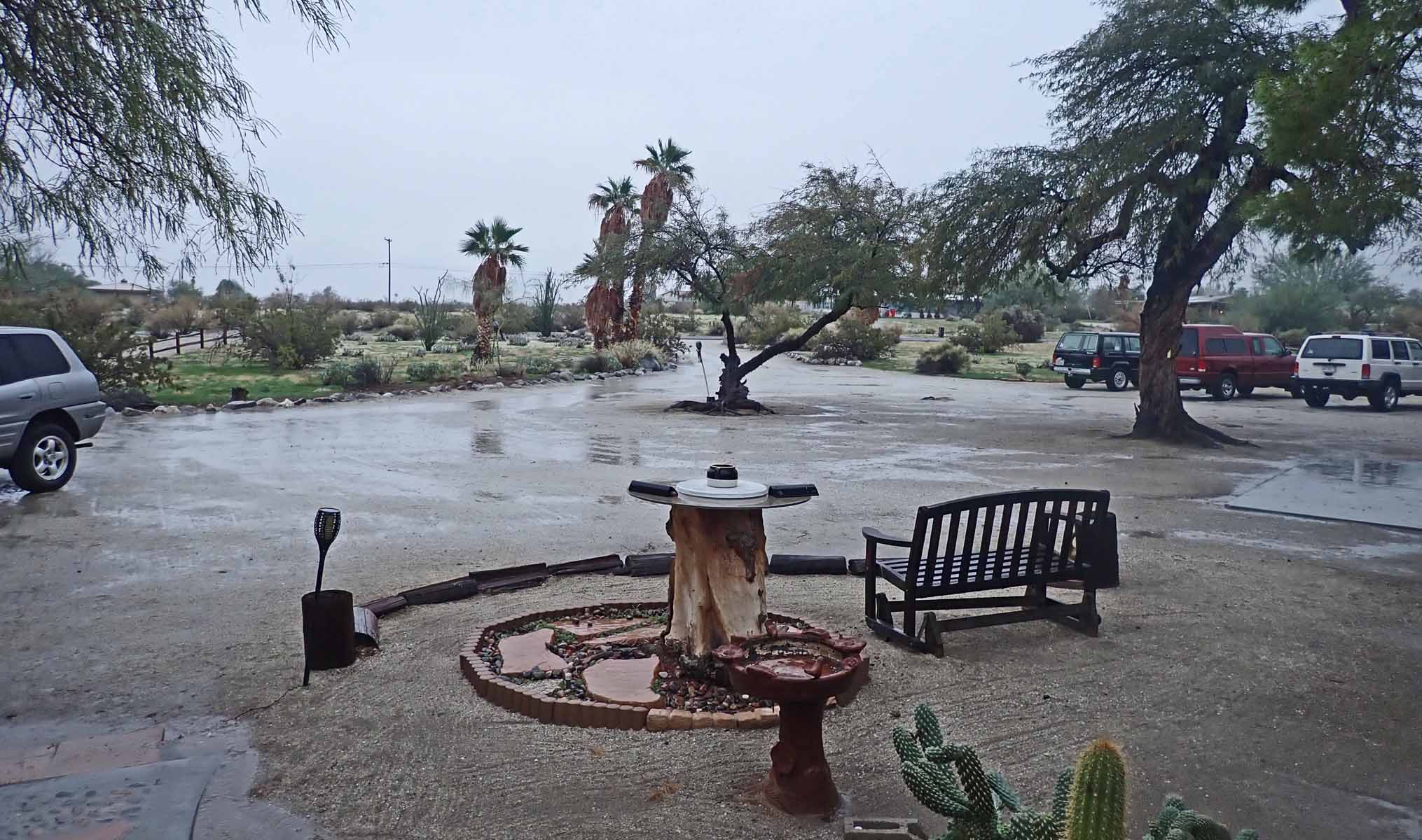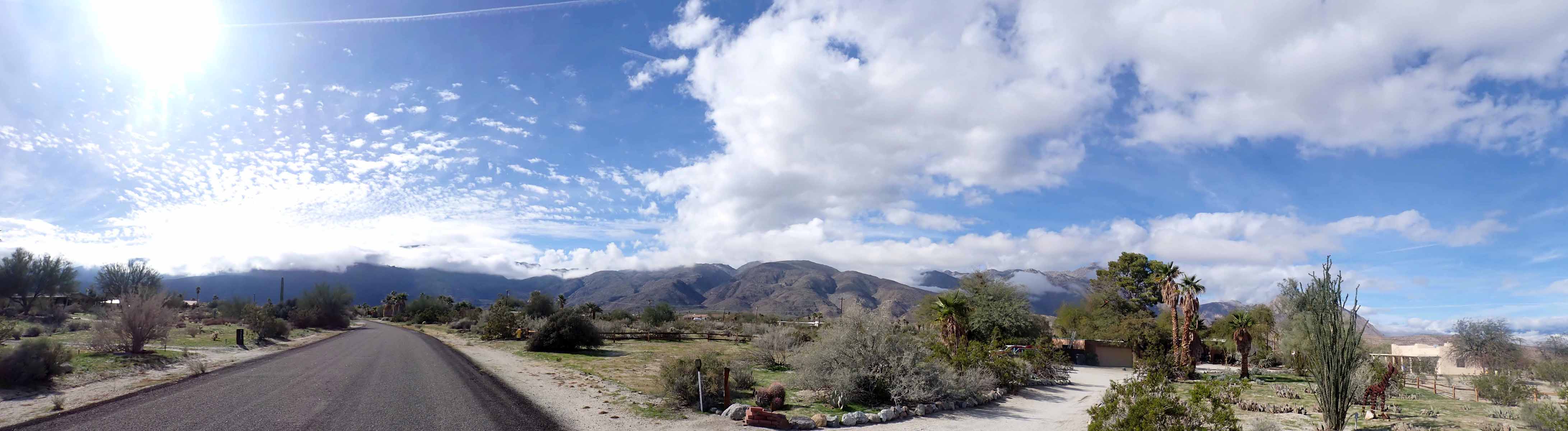 On the 1st, rained fairly hard most of the day, so stayed home & soaked up water leaking in sunroom & taking it easy. ![]() One of 6 bucket-full of water soaked up from sunroom ![]() Very wet out there! ![]() Low clouds all day ![]() ![]() ![]() Got a couple things from the store ![]() Webo is peak on left, San Ysidro Mtn on right ![]() A couple of ravens checking out dates in palm trees ![]() Noticed this bubble in ceiling paint with water dripping from it ![]() Placed ice chest to catch water from leak On the 2nd, a mostly cloudy day. We took doggies on 4 mile, 2.5 hour walk to town to drop off xmas card(3 kings) to Stacey (which her mom has been doing for decades). Kathy had bad back pain the whole way, so we had to rest a minute for every 2 minutes of walking. ![]() Sun trying to poke thru at sunrise, but clouds won out for the rest of the day ![]() |