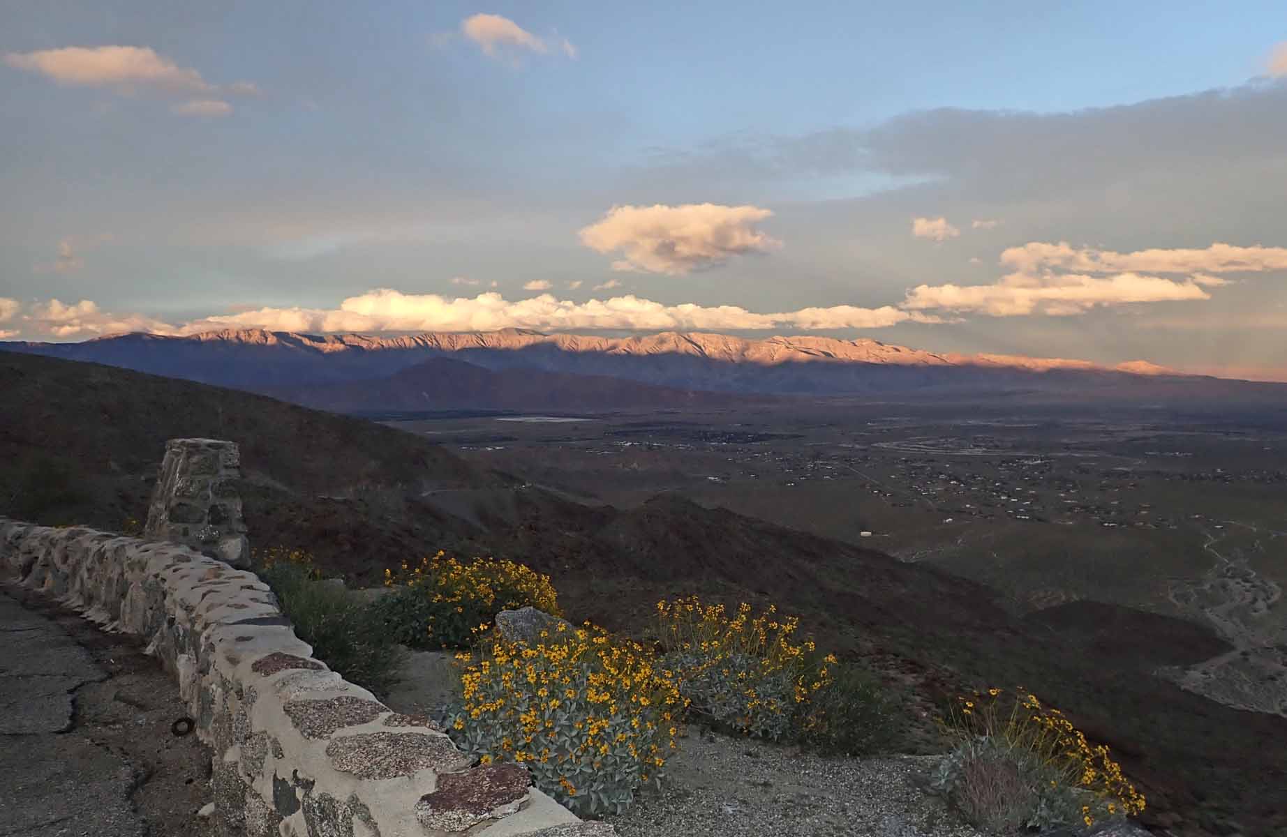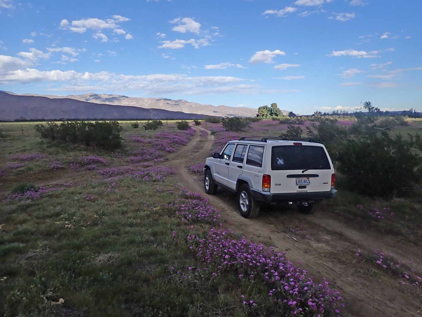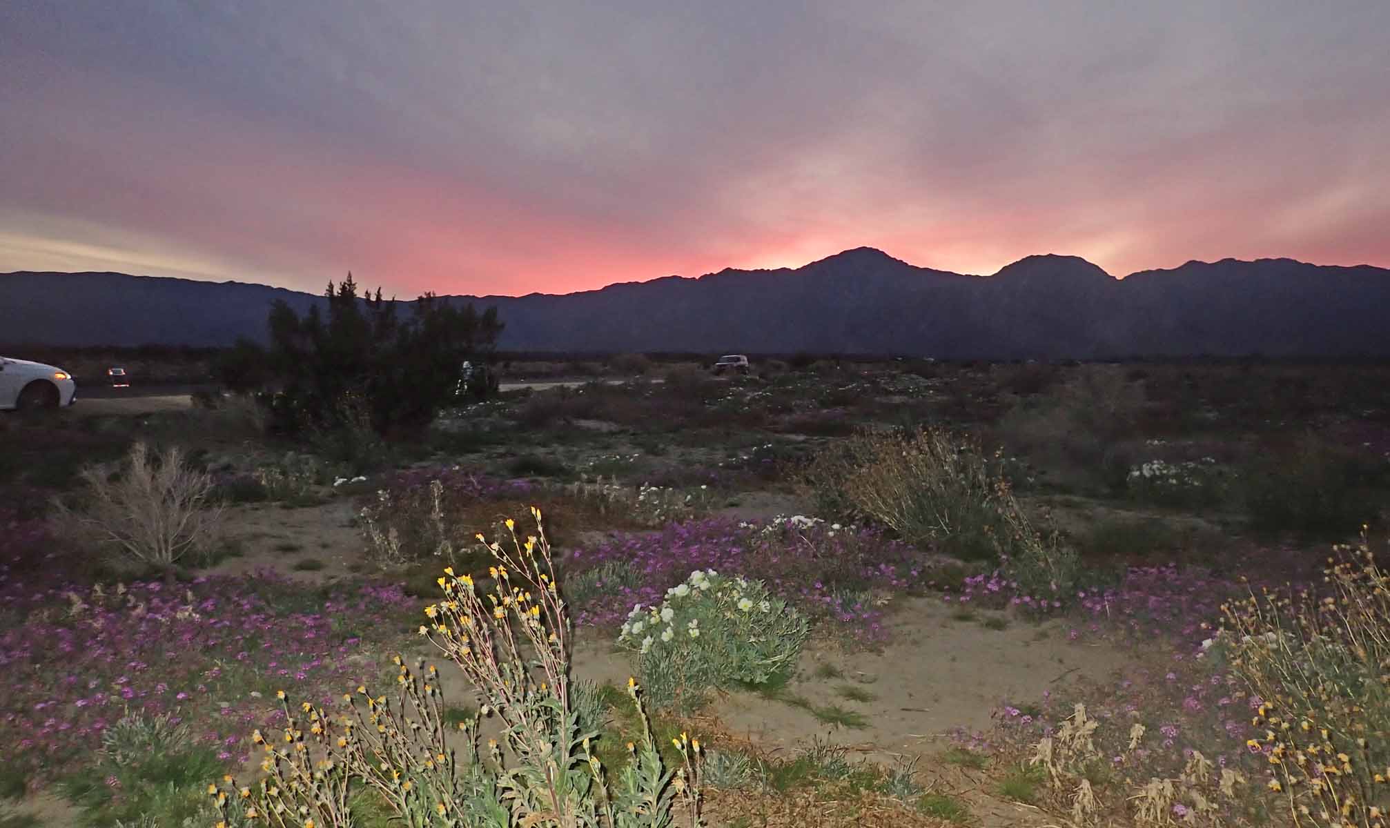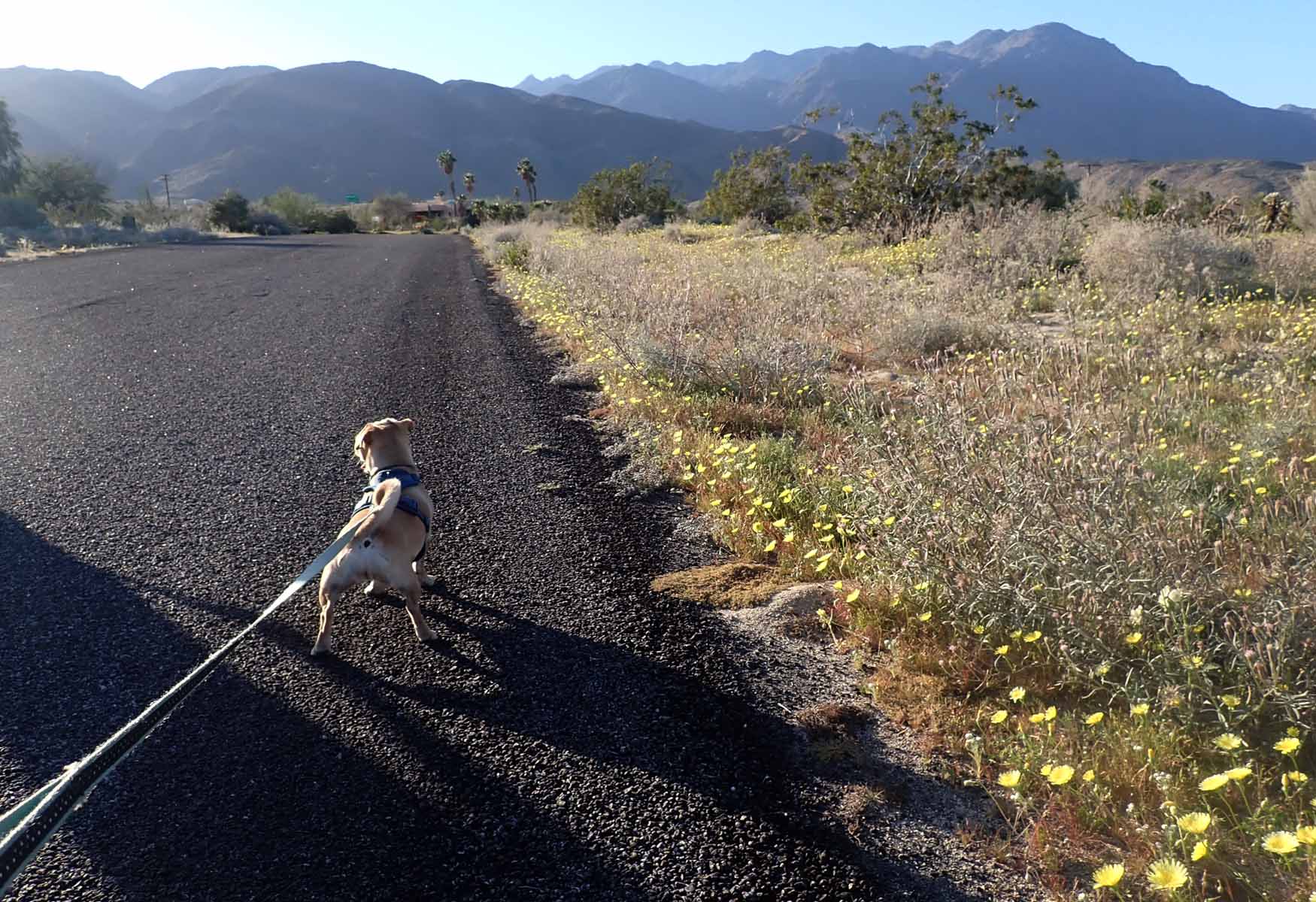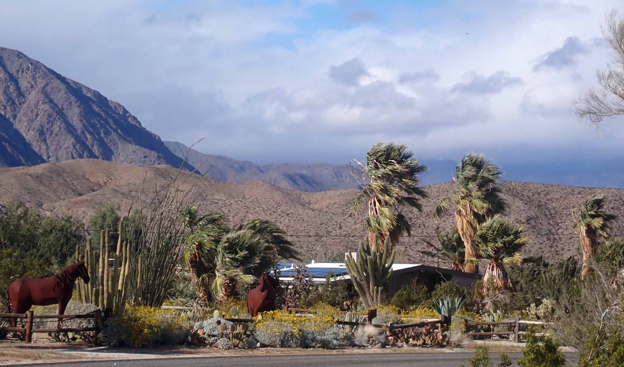 ![]() Downtown Borrego ![]() Desert dandelion & brown=eyed primrose ![]() Cool clouds to east - this is intersection of BS Rd & Tilting T On the 12th, a very full day at the office for Kathy. Jef did some work at Sewanee house. ![]() Weeded & located an irrigation leak ![]() Kathy called to let me know of a rapidly fading sunset ![]() On the 13th, we took doggies for a walk in Coyote Canyon - 1h 15m, about 2.5 miles. ![]() Our front yard on this partly cloudy day ![]() Starting our hike in Coyote Canyon ![]() Flowers were somewhat muted along the wash ![]() Some flowers managed to survive in the wash ![]() Pepper by a Jimson weed flower the size of her head ![]() Bird tracks in wash ![]() Lupine, cheesebush & brittlebush all blooming ![]() Weather behind Kathy actually dumped a fair amount at our house this afternoon - even had some hale! ![]() Weather ![]() ![]() Interesting crack patterns in the wash ![]() It actually started raining on us! ![]() Pepper puppy with rain spots in wash ![]() Desert dandelion & lupine blooms in the wash ![]() Broomrape parasite! ![]() Popcorn flowers ![]() Bank is taller than Pepper! ![]() Ground nearly all wet at this point ![]() Kathy wanted a pic of her all wet - she is slightly damp ![]() Desert sunflower, verbena & dune primrose ![]() Nearing Jeep, which I parked in the middle of the wash - fortuneately no flash flood ![]() View from Jeep after our post-hike "Miller time". Think the rain didn't fall on the Jeep on our hike ![]() Saw this cool flower-lined dirt road off of DiGiorgio - looked cooler before it got rained on ![]() ![]() On the 14th, drove Kathy to MD in Escondido & shopped on the way home. ![]() Craters in front yard indicate possible hail prior day ![]() At Big Rock house after meeting with Holley & Alvaro ![]() Kym forgot to tell me about SpaceX launch until 20 minutes afterward, but managed this pic at that time On the 15th, walked over & took a few pix in our neighborhood. Then did some weeding & irrigation repairs at Sewanee house and did Broken Arrow to Wagon loop - about 3 miles - with Kathy & puppies. Then dined at the Krazy Koyote with Pam & Jaime. ![]() Sunrise this morning ![]() ![]() ![]() ![]() ![]() ![]() ![]() ![]() Wispy clouds today partially obstructed the sun ![]() Across the street, looking back to our house ![]() ![]() ![]() Headed to sand dune at the end of Box S ![]() A few verbena in our area ![]() Started on this animal trail onto sand dune ![]() Looking S to Glorietta ![]() ![]() ![]() ![]() ![]() ![]() ![]() ![]() Looking along ridge of old sand dune ![]() A few purple mat blooms ![]() ![]() ![]() ![]() ![]() A few desert chickory ![]() ![]() Fremont pincushions ![]() ![]() ![]() ![]() ![]() ![]() Tried fixing a couple of broken irrigation lines at Sewanee ![]() This bush at our next door neighbor looks like it might be native to CA ![]() ![]() Really tall ocotillo on Broken Arrow ![]() This house has some unusual things in their front yard ![]() ![]() Dancing saguaro statue by a peyote statue ![]() Celebrating Jaime & Pam's 60th anniversary at the Krazy Koyote ![]() ![]() Eating dinner ![]() Jaime had dessert ![]() Leaving the restaurant |