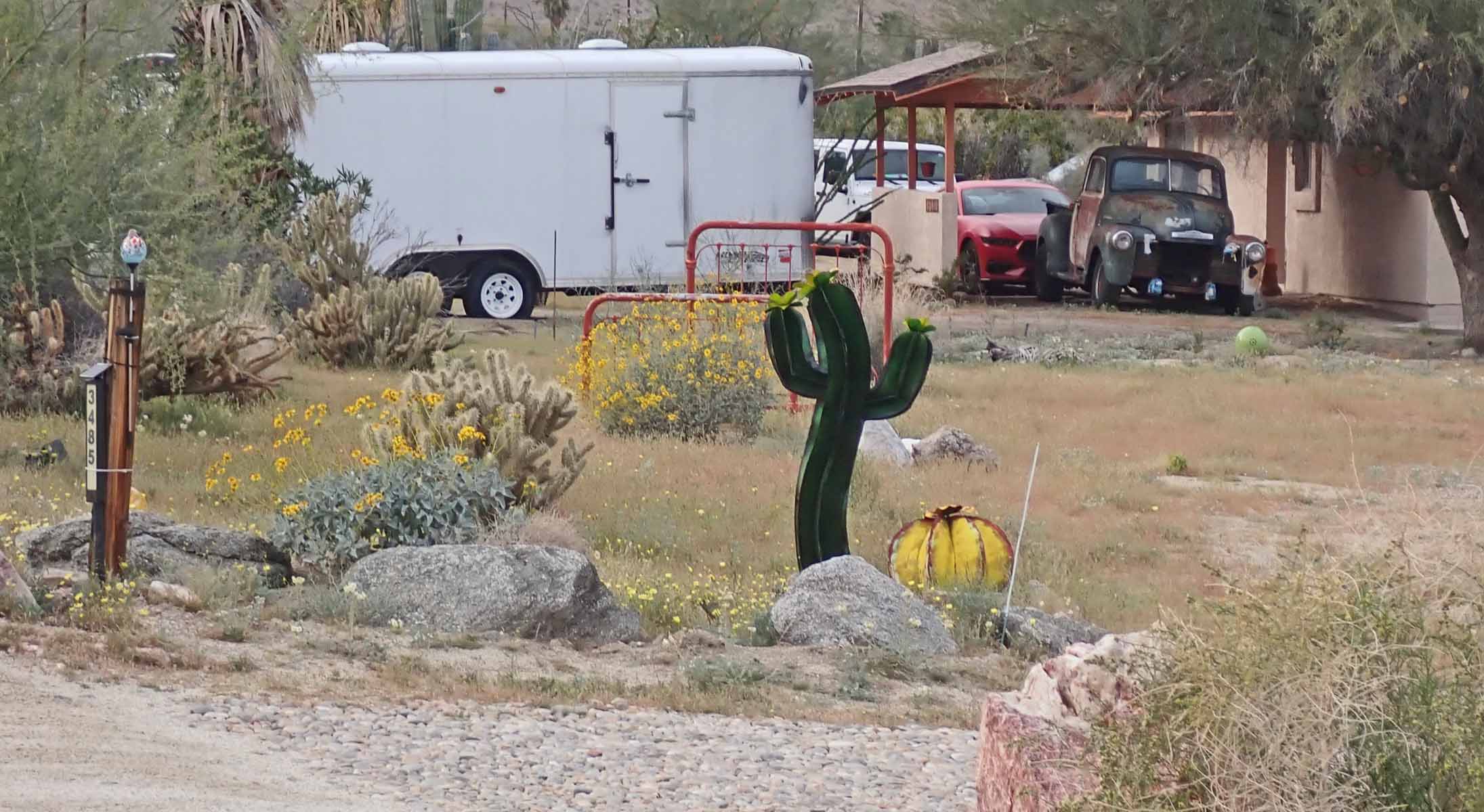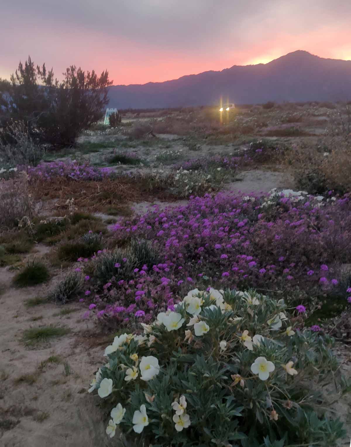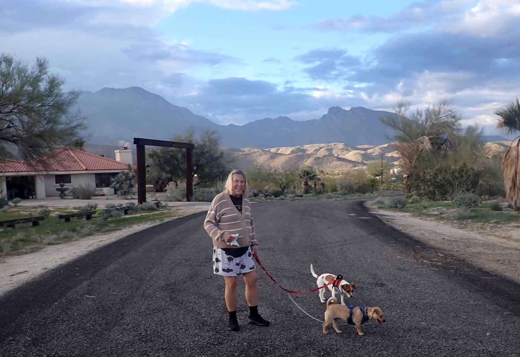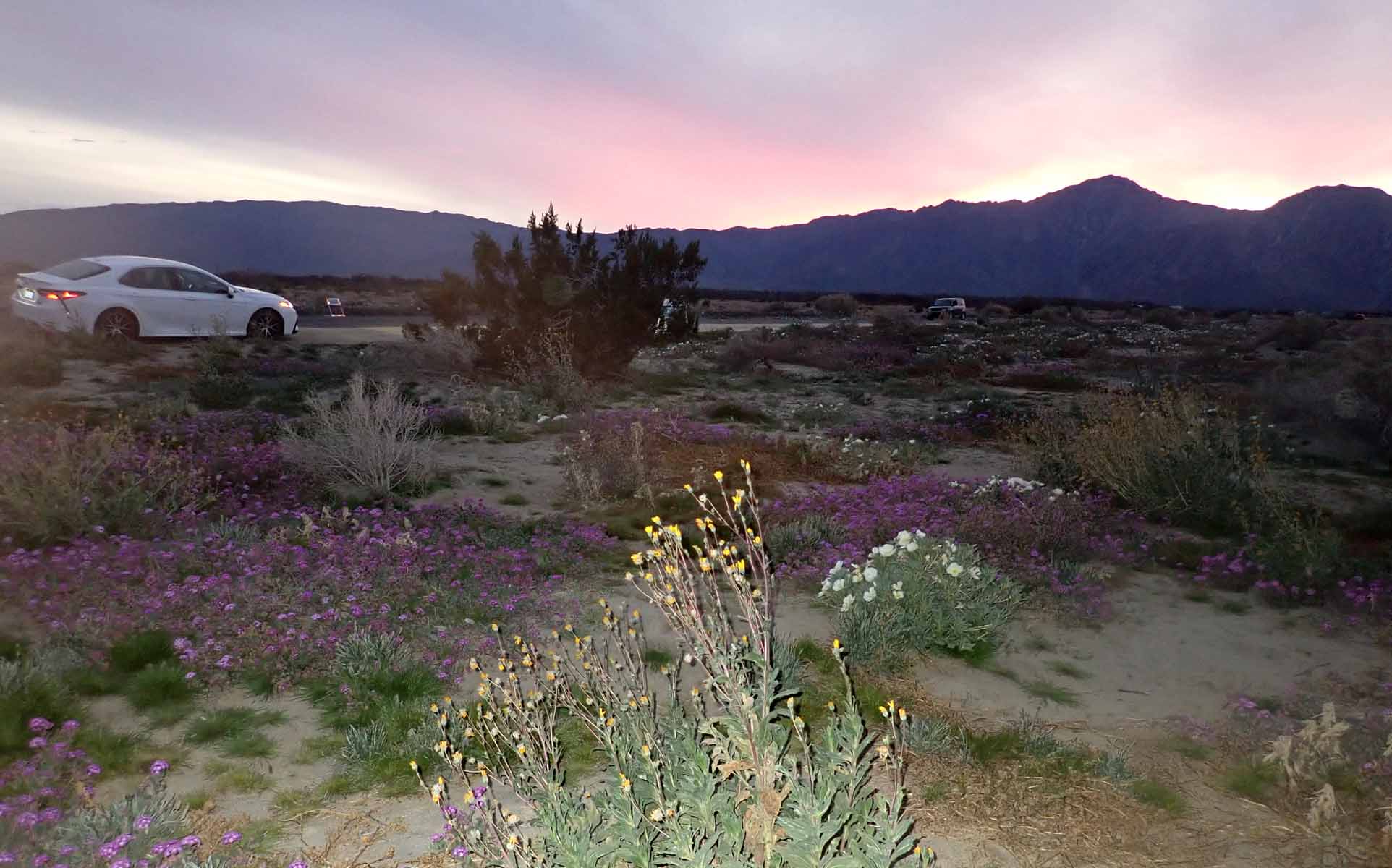 ![]() Downtown Borrego ![]() Desert dandelion & brown=eyed primrose ![]() Cool clouds to east - this is intersection of BS Rd & Tilting T On the 12th, a very full day at the office for Kathy. Jef did some work at Sewanee house. ![]() Weeded & located an irrigation leak ![]() Kathy called to let me know of a rapidly fading sunset ![]() On the 13th, we took doggies for a walk in Coyote Canyon - 1h 15m, about 2.5 miles. ![]() Our front yard on this partly cloudy day ![]() Starting our hike in Coyote Canyon ![]() Flowers were somewhat muted along the wash ![]() Some flowers managed to survive in the wash ![]() Pepper by a Jimson weed flower the size of her head ![]() Bird tracks in wash ![]() Lupine, cheesebush & brittlebush all blooming ![]() Weather behind Kathy actually dumped a fair amount at our house this afternoon - even had some hale! ![]() Weather ![]() ![]() Interesting crack patterns in the wash ![]() It actually started raining on us! ![]() Pepper puppy with rain spots in wash ![]() Desert dandelion & lupine blooms in the wash ![]() Broomrape parasite! ![]() Popcorn flowers ![]() Bank is taller than Pepper! ![]() Ground nearly all wet at this point ![]() Kathy wanted a pic of her all wet - she is slightly damp ![]() Desert sunflower, verbena & dune primrose ![]() Nearing Jeep, which I parked in the middle of the wash - fortuneately no flash flood ![]() View from Jeep after our post-hike "Miller time". Think the rain didn't fall on the Jeep on our hike ![]() Saw this cool flower-lined dirt road off of DiGiorgio - looked cooler before it got rained on ![]() ![]() On the 14th, drove Kathy to MD in Escondido & shopped on the way home. ![]() Craters in front yard indicate possible hail prior day ![]() At Big Rock house after meeting with Holley & Alvaro ![]() Kym forgot to tell me about SpaceX launch until 20 minutes afterward, but managed this pic at that time On the 15th, walked over & took a few pix in our neighborhood. Then did some weeding & irrigation repairs at Sewanee house and did Broken Arrow to Wagon loop - about 3 miles - with Kathy & puppies. Then dined at the Krazy Koyote with Pam & Jaime. ![]() Sunrise this morning ![]() ![]() ![]() ![]() ![]() ![]() ![]() ![]() Wispy clouds today partially obstructed the sun ![]() Across the street, looking back to our house ![]() ![]() ![]() Headed to sand dune at the end of Box S ![]() A few verbena in our area ![]() Started on this animal trail onto sand dune ![]() Looking S to Glorietta ![]() ![]() ![]() ![]() ![]() ![]() ![]() ![]() Looking along ridge of old sand dune ![]() A few purple mat blooms ![]() ![]() ![]() ![]() ![]() A few desert chickory ![]() ![]() Fremont pincushions ![]() ![]() ![]() ![]() ![]() ![]() Tried fixing a couple of broken irrigation lines at Sewanee ![]() This bush at our next door neighbor looks like it might be native to CA ![]() ![]() Really tall ocotillo on Broken Arrow ![]() This house has some unusual things in their front yard ![]() ![]() Dancing saguaro statue by a peyote statue ![]() Celebrating Jaime & Pam's 60th anniversary at the Krazy Koyote ![]() ![]() Eating dinner ![]() Jaime had dessert ![]() Leaving the restaurant |