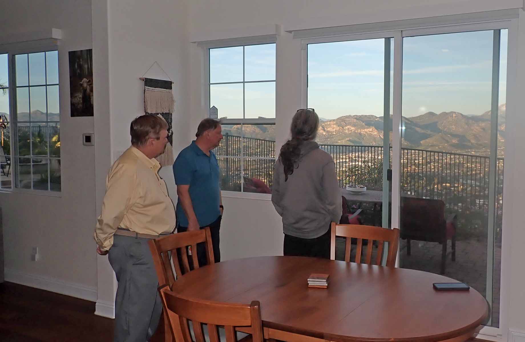 ![]() ![]() Fancy check-in area as if there were many more than 7 rooms available at this hotel On the 16th, we did a lot of cooking: enchiladas, beans, and salsa, especially since it rained and winded all afternoon outside. ![]() Kathy in bed with puppies ![]() Enchilada will last several days On the 17th, sun rose after a rainy night. Kathy had a full day at the office. Jef did more weeding at WStar house. ![]() Sunrise ![]() Puddle in driveway ![]() Olympic sized puddle in front yard ![]() ![]() Rain persisted in the mountains this day ![]() Sunset coming ![]() A windy evening ![]() On the 18th, being a windy day, we mostly stayed home & took it easy, until we went to the office and worked out for an hour. ![]() Wind & rain thrashed back yard early this morning ![]() Sunrise ![]() Note wind caused ripples in puddles in driveway with double rainbow over the house ![]() ![]() ![]() Rainbow as viewed from back window ![]() Even in this relatively safe area, turbulence knocked down all ficus trees in front patio, including the one with the hummingbird nest ![]() Possibly the mommy hummingbird looking for missing baby hummingbirds ![]() Empty hummingbird nest ![]() Thimble sticking out in notch as viewed from the office this afternoon ![]() Snow-capped Toro Peak On the 19th, Kathy was too achy-breaky to work, so cancelled a full day & we mostly hung out at home on another cool & windy day. ![]() Sunrise this morning ![]() Coolness & wind prevented desert dandelions from fully opening this day ![]() Nice clouds ![]() View from the sand dune ![]() Still raining in the mountains ![]() ![]() ![]() ![]() ![]() Wind coming from north blew over these trash cans ![]() ![]() Windy morning ![]() ![]() ![]() A winderful day ![]() Brittle bush in full bloom at this neighbor's place ![]() Tom hauled this old target into his yard from somewhere in the desert ![]() Kathy noticed we are developing a new leak in the living room On the 20th, after another bad wind storm during the night, we mostly took it easy at home with it still being windy outside. ![]() Daisy noting all our potted ficus had blown over during the night ![]() A fairly big branch blew down in back yard ![]() Our pool also succumbed to the wind ![]() Blown down ficus trees ![]() While cleaning up debris, found this baby hummingbird about 20' from its nest after it had been blown out of nest 2 nights ago - it was still barely alive, so ![]() Put it back in the nest... ![]() ...but found it had keeled over & died when I checked a couple hours later On the 21st, drove to Santee & met Shimon & Flaco at the Big Rock house. We checked out the house and hiked a couple of miles in Mission Trails, but couldn't go more than about 200' vertical before Shimon had to turn around, as he is still recovering from a lung illness. Jef did some yard clean up and then drove to poker at Frank's new house in east Santee. Jef won 3 at poker before driving home with practically no traffic this night. ![]() Took pic of desert dandelions and snow on Toro at this neighboring lot just after starting drive to SD ![]() ![]() Found out that practically the whole underground plumbing was being replaced ![]() New beam in living room ![]() Still have flowers blooming in the back yard ![]() Master bathroom walls and closet walls have been framed ![]() Shimon in garage with mysterious big rock ![]() We returned on our hike at the edge of Big Rock Park ![]() Tennis courts have been ruined and downgraded to pickleball courts, but appear to be very popular for a change ![]() Creek going behind our back yard ![]() Crossing the creek at the Rancho Fanita trailhead ![]() Little waterfall ![]() We hiked a little further on other side of creek ![]() ![]() Last check of house ![]() Holley's old bedroom ![]() Bedroom by garage ![]() This is the only bedroom with insulation in the walls ![]() Living room wall being re-wired - note the absense of insulation ![]() Panorama in living room ![]() After somewhat cleaning up front yard ![]() Panorama from Frank's hilltop abode looking north ![]() Before setting up for poker ![]() Jacuzzi with a view ![]() Looking down on Santee & Lakeside from Frank's place this evening On the 22nd, finally got rid of the wind and it started warming up. Jef took doggies & Kathy on a 2.2 mile walk doing a pole-line road north of Broken Arrow. Jef burned some medical records, part of big branch that fell down, and part of the X-mas tree this evening. On the 23rd, mostly took it easy at home, but met with tax people online and that is going now. Also went on 1h 40m hike up easier Glorietta Canyon hike with Kathy & doggies, making all the way to the "end". | |||||||||||||||||||||