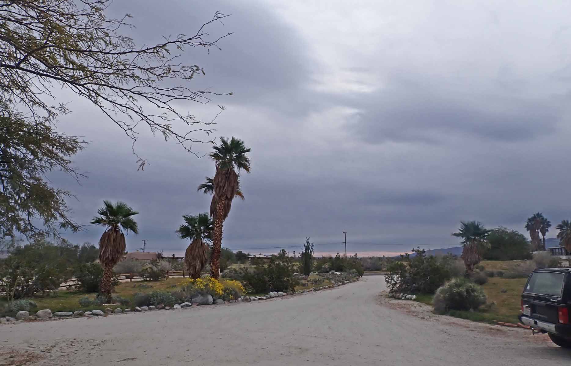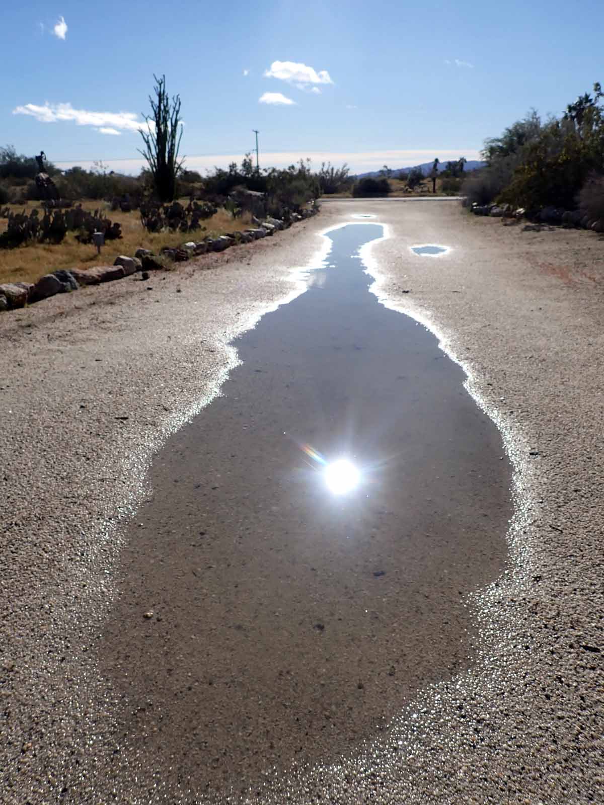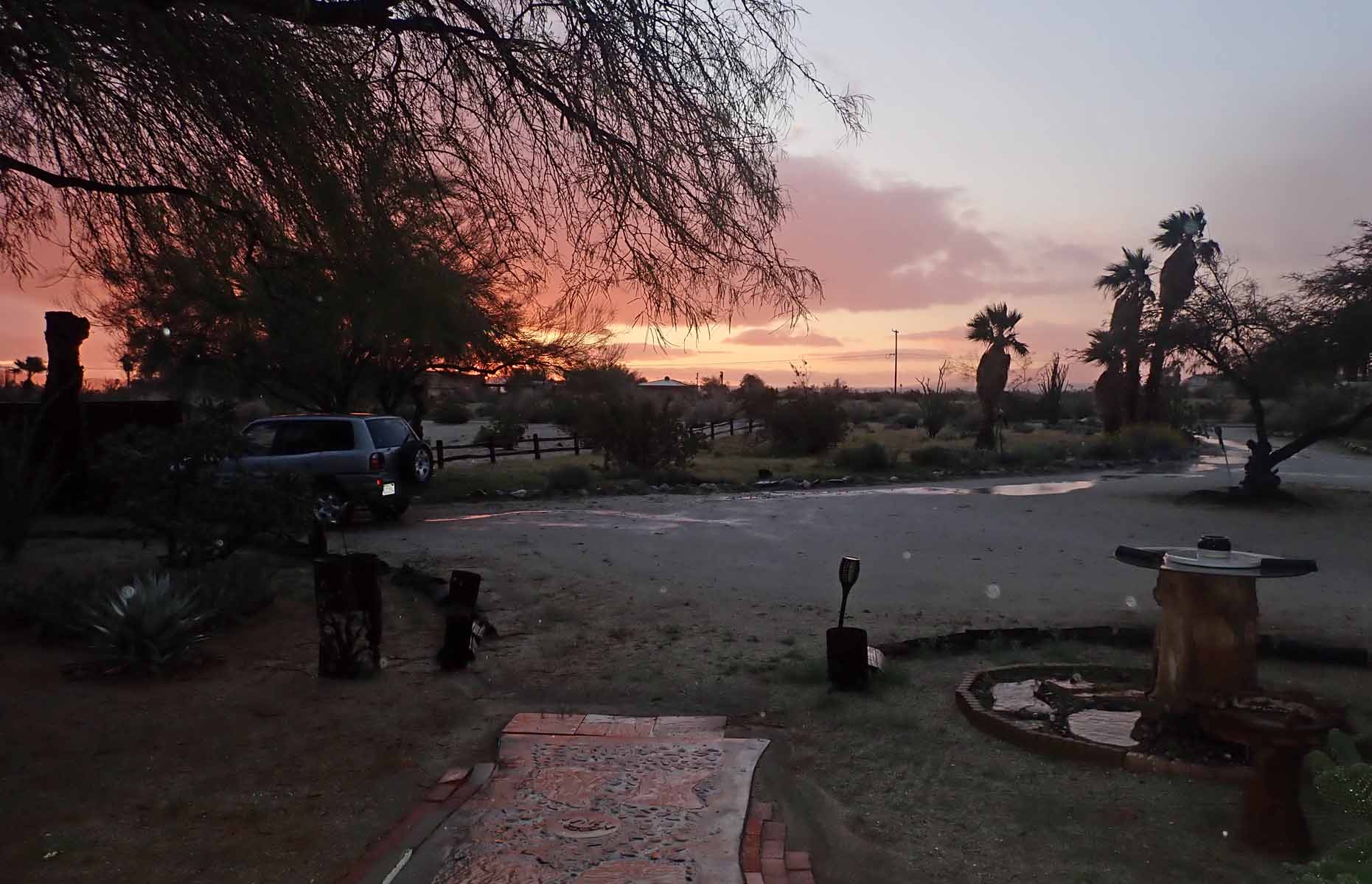 On the 1st, rained fairly hard most of the day, so stayed home & soaked up water leaking in sunroom & taking it easy. ![]() One of 6 bucket-full of water soaked up from sunroom ![]() Very wet out there! ![]() Low clouds all day ![]() ![]() ![]() Got a couple things from the store ![]() Webo is peak on left, San Ysidro Mtn on right ![]() A couple of ravens checking out dates in palm trees ![]() Noticed this bubble in ceiling paint with water dripping from it ![]() Placed ice chest to catch water from leak On the 2nd, a mostly cloudy day. We took doggies on 4 mile, 2.5 hour walk to town to drop off xmas card(3 kings) to Stacey (which her mom has been doing for decades). Kathy had bad back pain the whole way, so we had to rest a minute for every 2 minutes of walking. ![]() Sun trying to poke thru at sunrise, but clouds won out for the rest of the day ![]() ![]() Depth of water indicates we had 1.5" of rain ![]() Circled area is where new leak is located ![]() Newly painted room ![]() ![]() Panorama of backyard from roof ![]() Close up of area of possible leak ![]() WStar house at start of walk ![]() Low clouds by Indianhead ![]() ![]() Front "lawn" On the 3rd, Jef walked to town and met Kathy at the office where they worked out for another 1.5 hours. ![]() Back "lawn" ![]() Meter still heading north ![]() house viewed from the rear ![]() Shortcut trail to rocking chair ![]() Sunset this evening near end of our workout ![]() ![]() Sunset after our workout ![]() On the 4th, Jef went to Sewanee and did some weeding. Kathy went to Pam & Jaime's and helped with housecleaning. Jef joined and helped later & we had pizza there this evening. ![]() Clouds this morning ![]() Sewanee's back yard "lawn" ![]() Panorama by elephant statues ![]() Rain in mountains (Jef got a few sprinkles just before arriving at Pam's) ![]() ![]() Pam, Jaime & Kathy ![]() ![]() Moon above sloth statue on drive home ![]() Moon after arriving home to WStar ![]() Moonbow looking towards Montezuma On the 5th, mostly took it easy. We cooked albondigas this afternoon. ![]() Sunrise this morning ![]() Toro still shrouded in clouds ![]() Cool clouds this day ![]() ![]() ![]() We made a batch of Albondigas this evening On the 6th, a cool and cloudy day where we mostly took it easy at home. ![]() On the 7th, we mostly stayed home, but did take doggies on a 2 mile walk a couple times around our circle as it was sunny with little wind. ![]() ![]() Our lawn is pretty verdant now ![]() ![]() At WStar & Tilting T ![]() Heading up EStar with Daisy ![]() Kathy managed Pepper most of the way ![]() Split level house on sand dune ![]() ![]() ![]() Sand dune is covered with "lawn" ![]() Looking toward Indianhead near top of circle on EStar ![]() Kathy arriving home On the 8th, Kathy saw a couple patients at the office. Jef walked to the Mall and hit the PO on the way home. ![]() Entering canyon behind old country club ![]() This (probably invasive) weed is a problem at our houses and is also out in the wild ![]() Nearing the end of the canyon ![]() Saw a few birds fly by ![]() They appear to have been hawks ![]() The trail to exit the wash ![]() Panorama at the pass ![]() Lupine in bloom at bottom of spur trail ![]() A desert lily has come up at this point along the trail for many years On the 9th, Jef did some burning of dead branches & diagnosis of electrical problem at Sewanee house. Kathy broke her back cleaning house, but was mostly "out of it" all day. On the 10th, took Kathy to Escondido for MD appointment & MRI in Mission Valley, doing some shopping on the way home. ![]() Coldest it's been all season On the 11th, took it easy at home. On the 12th, Jef walked to town, picked up mail and got a couple things at the Pantry. ![]() Meter still heading north ![]() Sand blazing star in bloom ![]() Panorama at the top ![]() Walked home the easy way - the fountain was running at the Catholic church On the 13th, A+ Roofing came by and patched the roof. Kathy worked at the office & Jef did chores at home. ![]() A little sunset this evening On the 14th, Jef went over and did some weeding at Sewanee house. Kathy cancelled the walk this afternoon due to the "no-see-ums". Jef didn't want to work out, so we resolved to work out on Friday the 16th. ![]() Jef shadow after dropping trash at the end of the driveway ![]() Checking out patching job on roof where ceiling had been leaking ![]() A patch was also placed around sunroom roof edge, where water appears during big storms ![]() Drywall tape was placed before this spongy thick white stuff was applied ![]() At Sewanee house, the plants surrounding this old log seem to be whispering bells On the 15th, Kathy had a full day at the office. Jef stayed home and did chores, but walked to office to help with new patient paperwork this afternoon. ![]() Brittlebush blooming ![]() Rock daisy blooming at base of trail out of wash ![]() Desert hibiscus bloom fully extended ![]() Desert ground cherry ![]() View from the top ![]() Start of descent ![]() Note how green base of Fonts is ![]() 1st desert dandelion On the 16th, Jef drove Kathy to MD in SD. Kathy drove to Ramona from there where we did some shopping before Jef drove home to Borrego. On the 17th, mostly took it easy at home. ![]() Sunrise this morning ![]() ![]() On the 18th, mostly took it easy at home, doing some clean up and weeding in front yard. ![]() This black acacia is leaning on fence and roots are exposed On the 19th, Jef dropped Camry at Tito's for maintenance & then walked home. Later drove black Jeep there & exchanged with Camry. ![]() Left Camry at Tito's ![]() Saw this solid wall of green across from Roadrunner - a 6' tall growth of weeds in the channel draining from the Roadrunner |