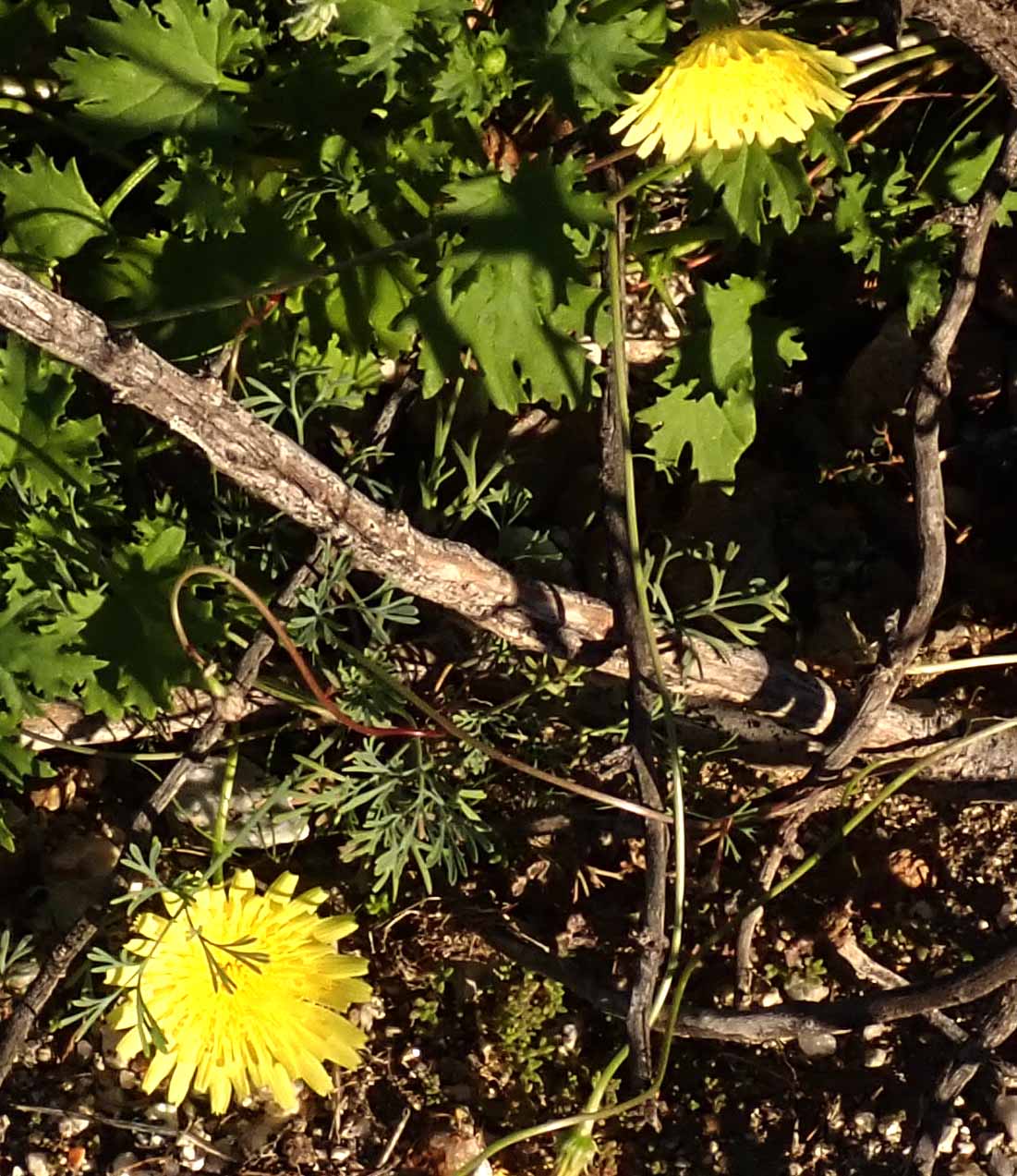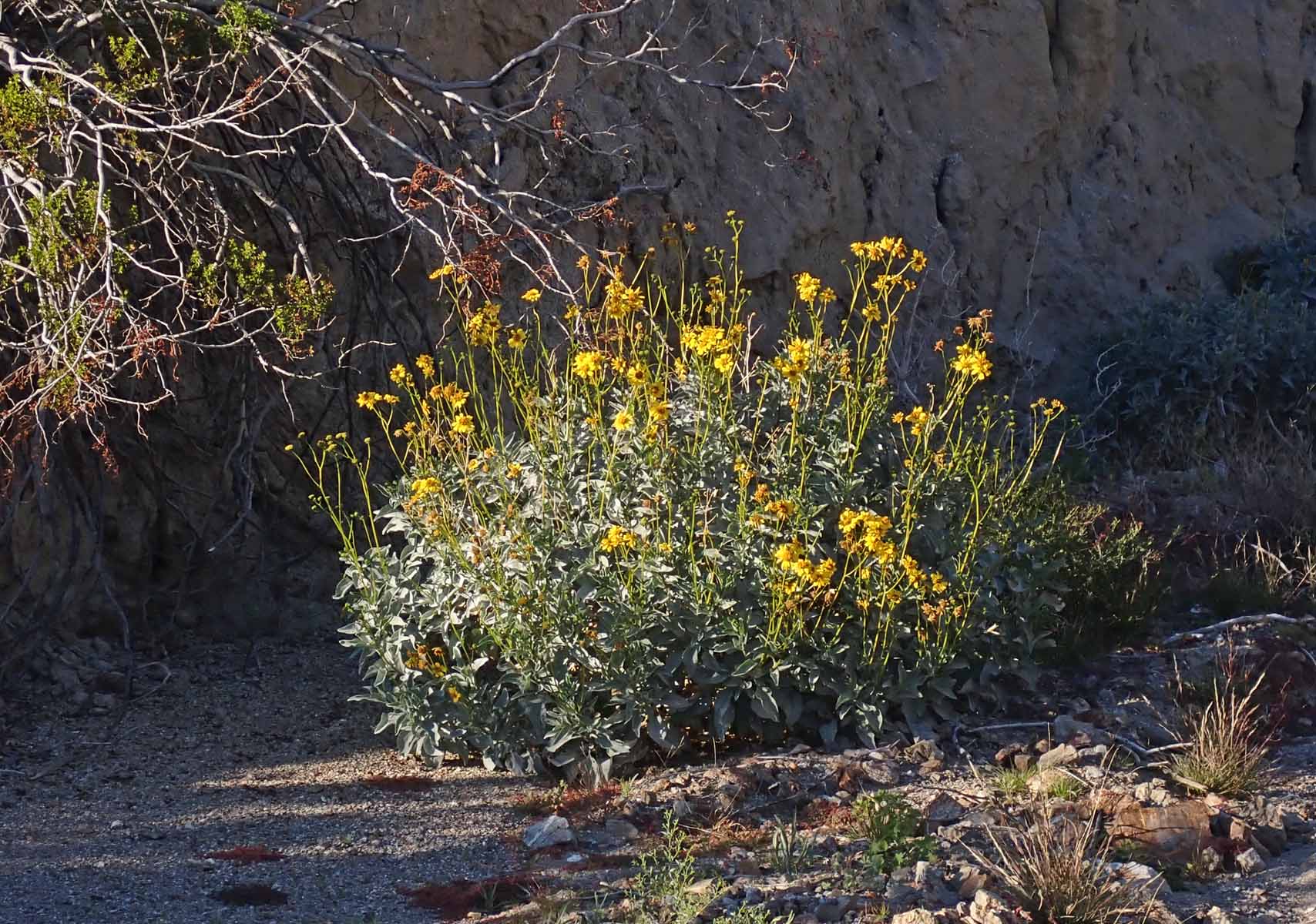 ![]() A patch was also placed around sunroom roof edge, where water appears during big storms ![]() Drywall tape was placed before this spongy thick white stuff was applied ![]() At Sewanee house, the plants surrounding this old log seem to be whispering bells On the 15th, Kathy had a full day at the office. Jef stayed home and did chores, but walked to office to help with new patient paperwork this afternoon. ![]() Brittlebush blooming ![]() Rock daisy blooming at base of trail out of wash ![]() Desert hibiscus bloom fully extended ![]() Desert ground cherry ![]() View from the top ![]() Start of descent ![]() Note how green base of Fonts is ![]() 1st desert dandelion On the 16th, Jef drove Kathy to MD in SD. Kathy drove to Ramona from there where we did some shopping before Jef drove home to Borrego. On the 17th, mostly took it easy at home. ![]() Sunrise this morning ![]() ![]() On the 18th, mostly took it easy at home, doing some clean up and weeding in front yard. ![]() This black acacia is leaning on fence and roots are exposed On the 19th, Jef dropped Camry at Tito's for maintenance & then walked home. Later drove black Jeep there & exchanged with Camry. ![]() Left Camry at Tito's ![]() Saw this solid wall of green across from Roadrunner - a 6' tall growth of weeds in the channel draining from the Roadrunner ![]() ![]() ![]() Most of the terrain was similar to this on walk home ![]() Dunno what weed this is ![]() Saw 2 pairs of pants on walk home ![]() Old fence around abandoned driving range ![]() Panorama from middle of driving range ![]() 3 of the 4 tires I saw dumped along my cross country route ![]() Saw this and another patch of broken glass ![]() Took this trail on final 1/2 mile on walk home ![]() This little (yellow) primrose and fillery were blooms I saw along the way ![]() Walked Daisy around circle after Kathy was unable to continue and she decided Pepper needed a new harness ![]() Hummingbird on nest by front door On the 20th, Kathy returned to work, seeing 5 patients. Jef met Dave at Sewanee & did weeding. Dave found problem with laundry room electricity was that it was on a GFI circuit. On the 21st, Jef & Kathy worked out at the office. On the 22nd, Kathy returned to work. Jef walked to town to do some banking and get mail, and walked back home the longer route. | |||||||||||||||||||||