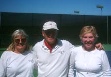 MARCH TOURNAMENT We had a good turnout of 48 contestants for the March 12 - 13, 2005 mixed doubles tournament. Weather was good with highs in the mid to low 80s, but with some wind in the early afternoon. Gary Edwards made a cameo appearance, and assisted Jef in the draw. Jef took these pictures of the winners. Harriet Schultz won the $50 drawing -- after 21 years of trying!!!. Congratulations, Harriet!