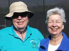 The next tournament will be the weekend of February 18 - 19, 2006. This is peak season, so get lodging reservations early. If you are planning to play, you must sign up by 7:30 p.m. on the eve of the tournament. Sign-up at the clubhouse, or contact Jef: phone 760-767-4544, e-mail: jef@itforsb.net, or if all else fails, call the tennis center at 760-767-0577 the Friday night before the tournament (definitely before 8 p.m.). The draw will be completed by around 9:00 P.M. and play will begin on Saturday at 8:00 a.m. If you want us to call you with the start time, add your phone number with your name when you sign up. Also, if you are just joining the club, please provide contact information, preferably an e-mail address, if you wish to receive a newsletter, and if you want to be listed in the club's directory. If you want to share and consume goodies, there will be a Goody Bar in the clubhouse on Saturday and Sunday mornings.
