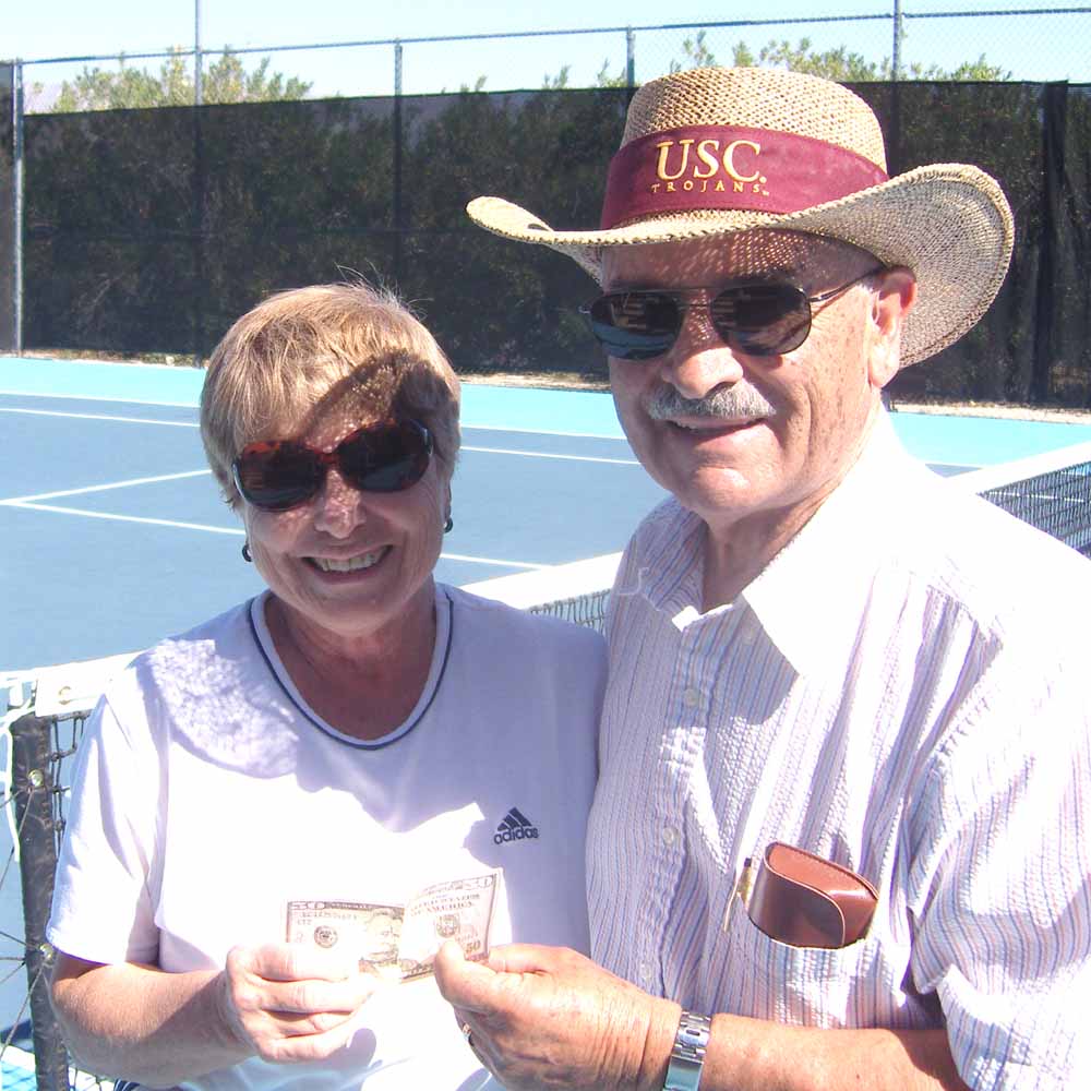 The next tournament will be the weekend of December 6 - 7, 2008. The usual double-elimination seeded format will continue, with possible round robins thrown in.This is the season, and so it is a good idea to make reservations early. If nothing can be found, call Jef or Kathy at 760-767-4536. If you are planning to play, you must sign up by 7:30 p.m. on the eve of the tournament. Sign-up at the clubhouse, or contact Jef or Kathy: phone 760-767-4536, e-mail: jef@znet.com, or if all else fails, call the tennis center at 760-767-0577 the Friday night before the tournament (definitely before 8 p.m.). The draw will be completed by around 9:00 P.M. and play will begin on Saturday at 8:00 a.m. If you want us to call you with the start time, add your phone number with your name when you sign up. Also, if you are just joining the club, please provide contact information, preferably an e-mail address, if you wish to receive a newsletter, and if you want to be listed in the club's directory. If you want to share and consume goodies, there will be a Goody Bar in the clubhouse on Saturday and Sunday mornings.