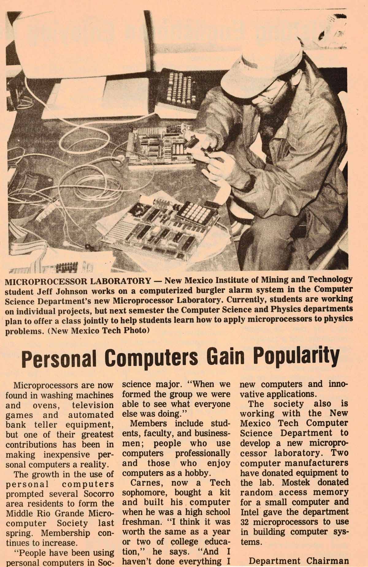 Drove up to Denver with John David. Stayed on 7th floor of the Tower Inn, and presented a paper based on my CS thesis (G: a syntactically extensible language) at an ACM conference on the 14th. Got sleepy on drive back, so John drove. When we were going thru blizzard, he panicked an stepped on brakes at one point, and we skidded off road, but I managed to get him to not stop, so we had enough momentum to skid back on to the freeway, and we continued on. We were lucky to find a gas station open after midnight in northern New Mexico. Also, we had engine problems with my Datsun 510, as the choke wasn't closing, so John wadded up some paper and stuck it in carburator, and we managed to complete this ordeal of a trip. |