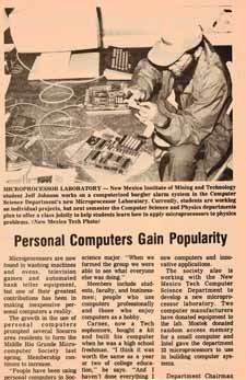 Signed on as a research assistant for the summer, continuing to work on dielectric properties of ice for the geoscience department. Continued working for the Geoscience Department as a research assistant. Went into the catacombs of Workman Center, and ran RS-232 cable from the computer center to my office in WOrkman. I was able to get 4800 baud, which wasn't too bad for 200 yards of cable. Used a terminal I bought myself. With Dyer, developed the NMT campus as a frisbee golf course. The lack of summer students enabled us to make a 2 mile course free of interference. Long grass fairways, and lots of static obstacles contributed to an awesome course. Julie, about to throw frisbee. With Deb, Anthony, Tom, Dyer, Julie and I developed throwing and catching multiple frisbees while keeping cool on submerged (over-irrigated) lawns in front of Workman Center. We also threw frisbees down the long halls of Workman. Meanwhile, dad and Leny had an adventurous summer: ![]() Dad's mom, Leny & dad having tea on the garage roof ![]() Dad celebrated his 60th birthday this year |