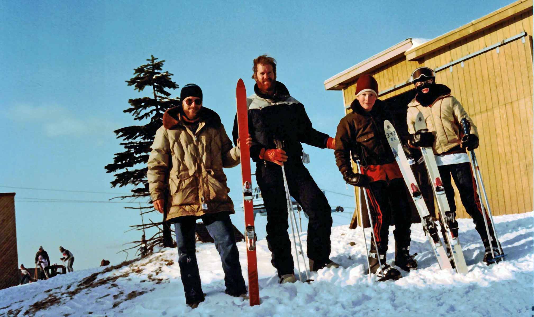 | Also in March, bought a big screen TV (gave to Julie in 1983). ![]() Took excursions into DC. Here is pic of me & my camera(in reflexion) at Natl. Art Museum ![]() Jef, Craig, Scott & Brian after they stayed with Jef all day at Blue Knob - teaching him how to ski | |||||