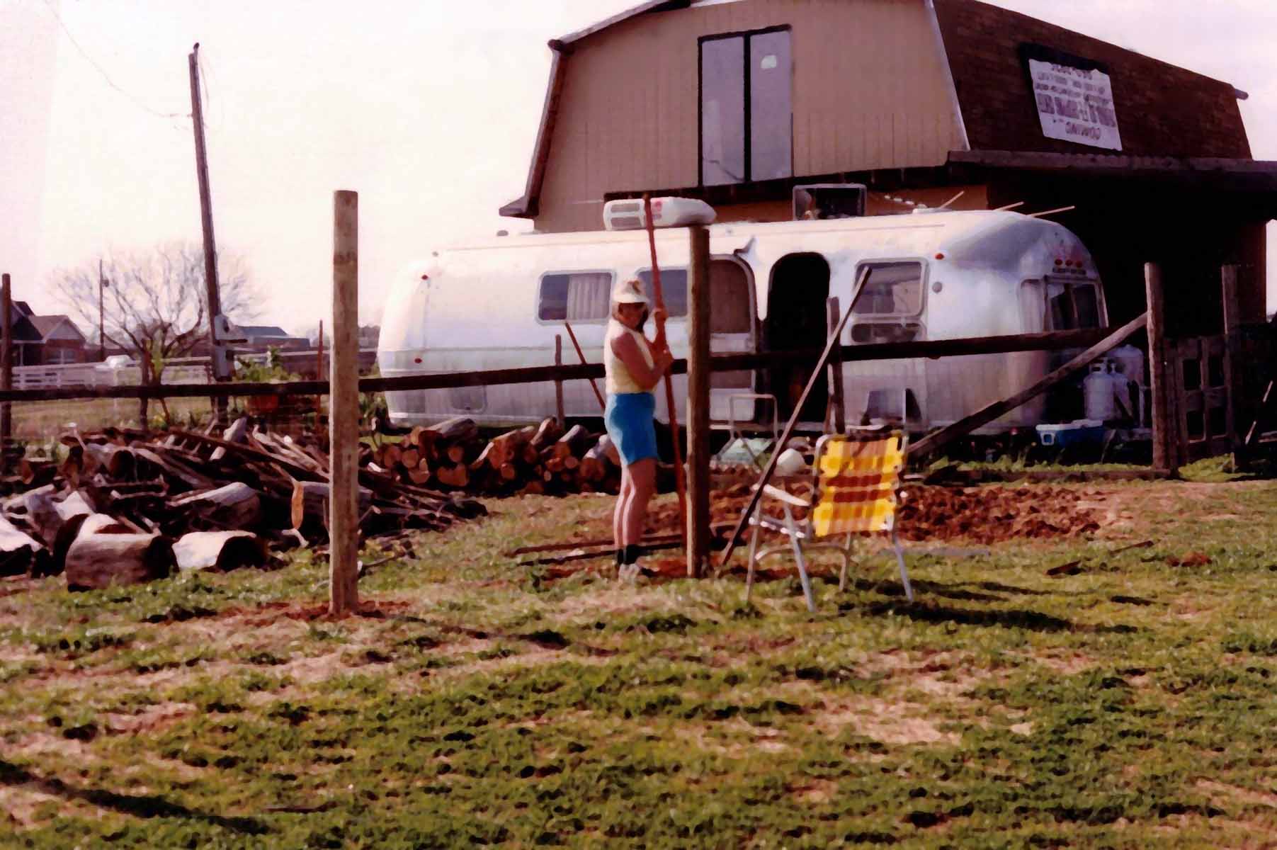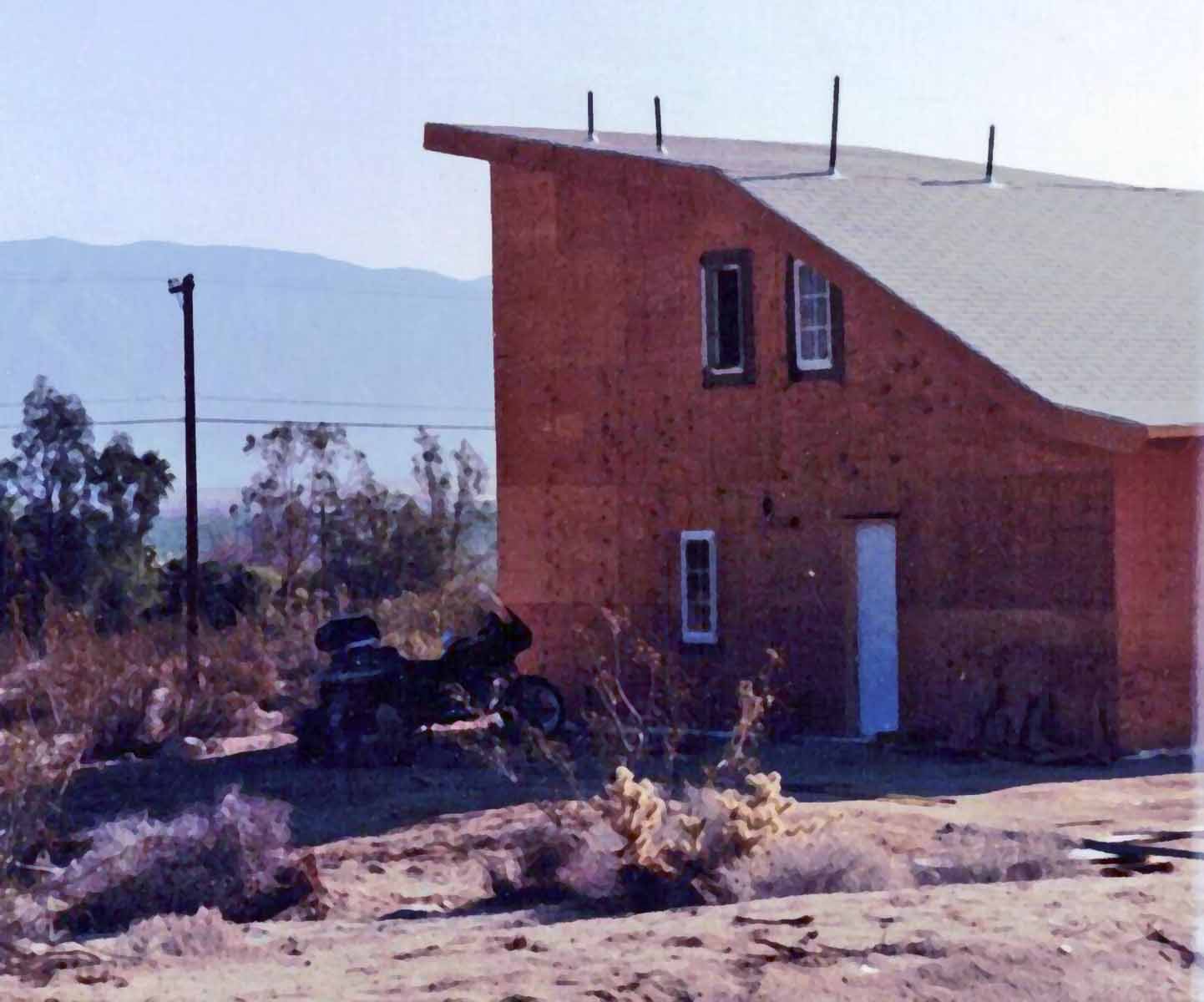 ![]() House just after fireplace was completed - Honda under tarp under shed roof | |||||||