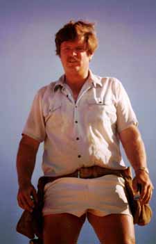 While at another multi-day party at Esteban's, where I went surfing and split open my head, arranged with Paco to get an apartment near my consulting job in Rancho Bernardo. We moved in later this month to 17203 Caminito Canasto. We only stayed there 6 months, as owner wanted to move back in at that time. This was a nice little (750 sq. ft.) house. Also at Steve's multi-day party, met Andy Jones for 1st time, and Bob Brown, who would give me my next job. Probably this month had the big cannon party adventure where Esteban's microbus blew up in Temecula & Flaco towed him back to RB. At end of cannon party, Flaco's truck blew up and the 2 of them spent a week swapping engine out (after Jef drove home). Maybe prior year, tho. ![]() About to head out to cannon party - Steve's gumby in back of Paco's truck ![]() After Esteban's VW bus broke down on way to cannon party on Friday nite, and Jefe convinced Flaco to tow it back from Temecula to RB, "Big Brown" started having some engine problems ![]() Jef & Esteban at the cannon party |