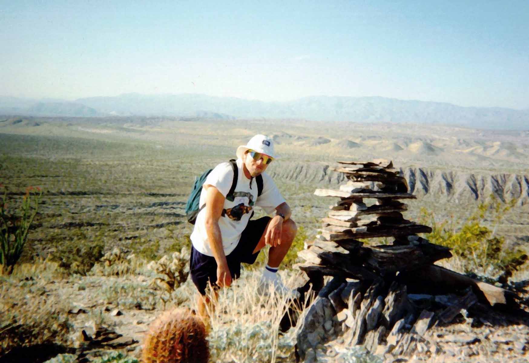 Interviewed at Anacomp in Poway. No job. Hiked up Whale Peak from Blair Valley, along with other hike snippets going to Marshall South cabin (2 miles), morteros, and first dry waterfall in Smuggler's Canyon. Hiked with Mari, Laura, and Jim. Most of hiking was going up Whale Peak, a 2200' elevation gain. | |||||