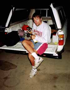 ![]() Laura ![]() Heading back to trailhead On the 13th, helped entertain Laura's friends from Holland. Attempting to meet her at the beach, I waited in wrong place and got an alchohol-in-restricted-area citation. Had we been on beach instead of grass, wouldn't have gotten the ticket, and would have actually connected with Laura! Not a good day! ![]() On the 14h went to Santee Drive-in with Laura. We saw Apollo 13 and Zorro, but were pretty tired by end of Zorro. It was a bit chilly(in August!) and we also had to contend with windows fogging up. L.C. brought some nice vittles. Sometime this month, Laura wanted to see house in Borrego. As it was too hot there (over 100F inside) and no A/C or swamp cooler, she had us bug out and go back to SD this night. ![]() Sitting out in back patio ![]() On the 28th, attended art gala with Laura - I think, maybe, in North Park. ![]() Flyer for gala ![]() At the gala | ||||||