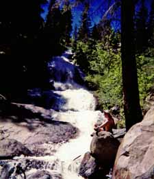 Hiked to Boy Scout Lake below Mt. Whitney with Laura. ![]() Stopped by creek & side of road & got this bridge pic ![]() At our camp ![]() Used this disposible camera ![]() Posing by waterfall by parking area of trailhead ![]() ![]() ![]() Taking a break midway to lake |