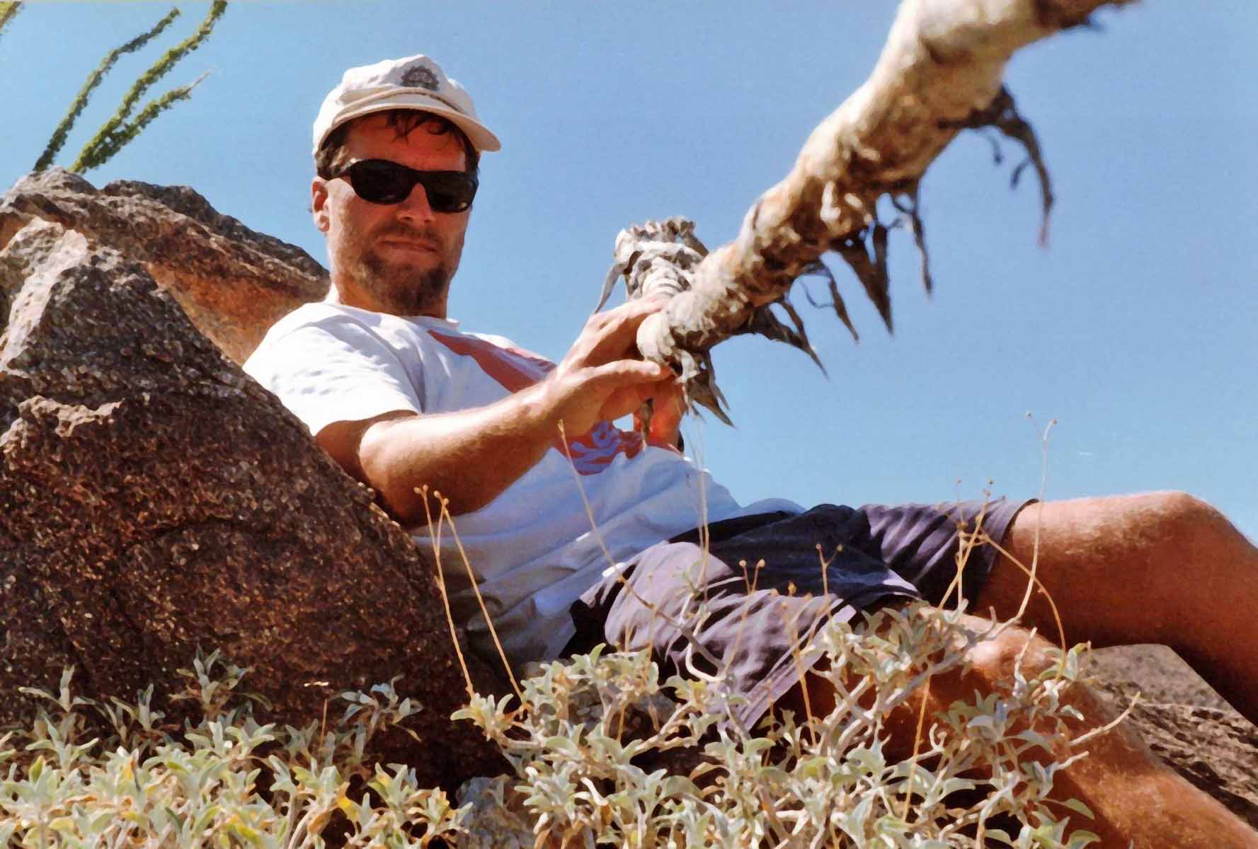 On the 25th, climbed San Ysidro Mountain: 8 miles, 4400' vertical, 8 hours. Snow was at the top! ![]() Jef after reaching snow ![]() Looking down on valley that drains into Hellhole Canyon ![]() Looking down on Indianhead Peak ![]() ![]() ![]() San Ysidro Peak register - note the snow at this lofty (5000') location | ||||||||
