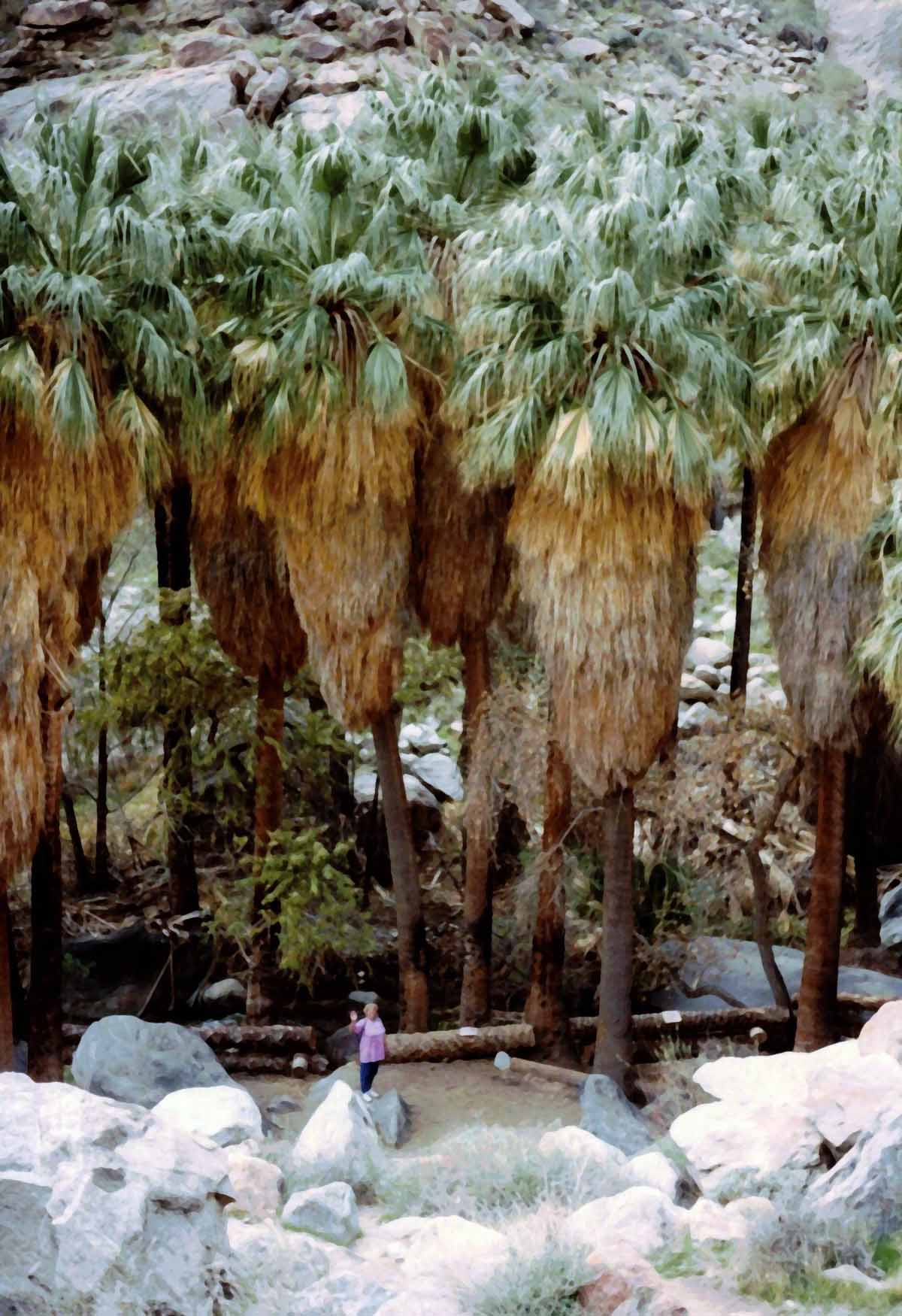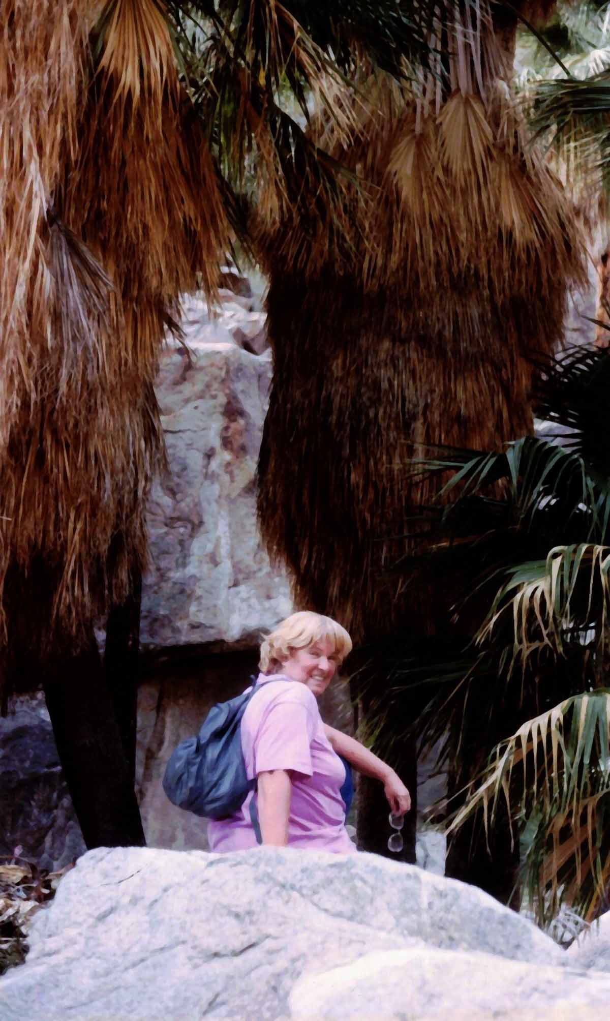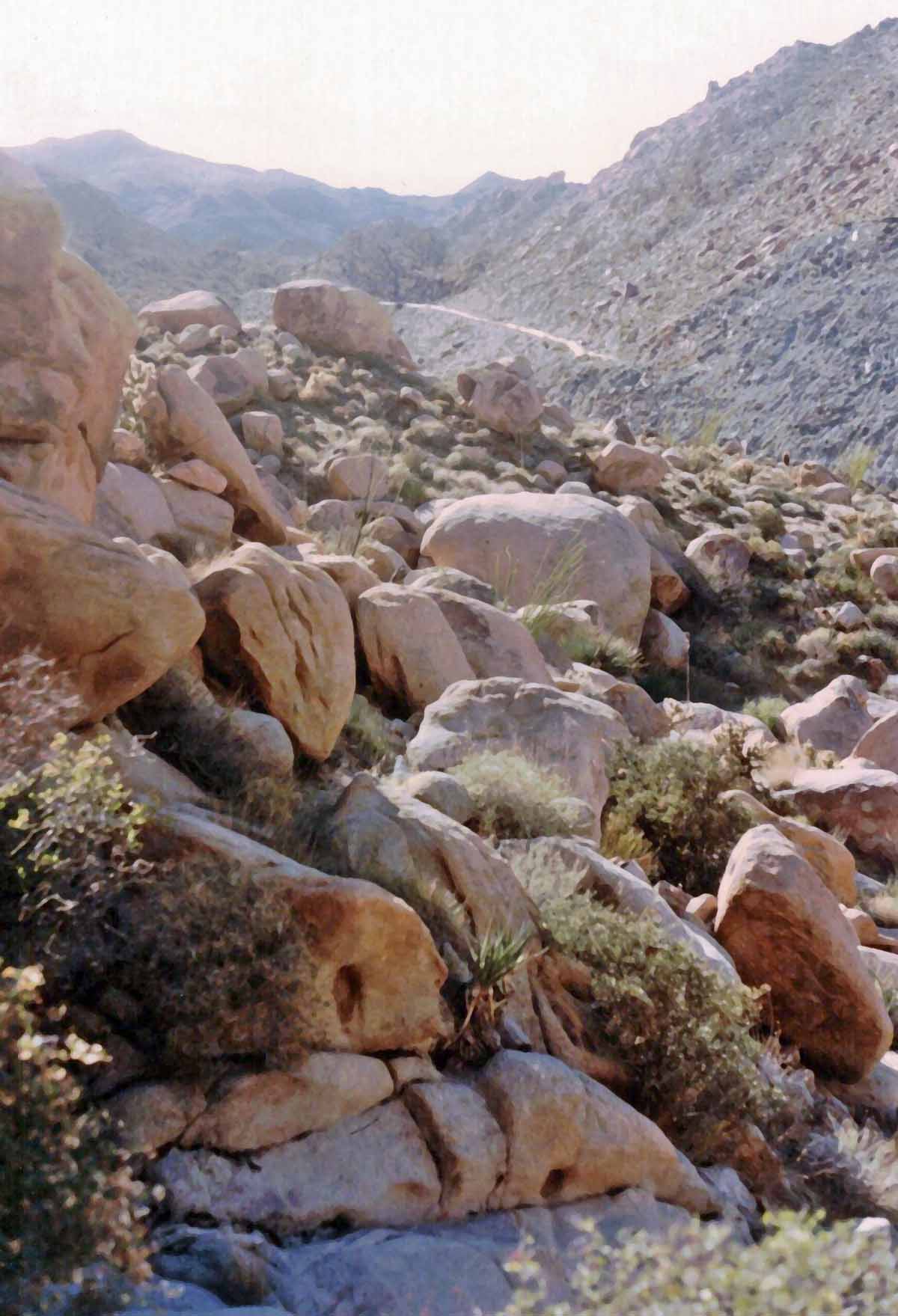 On the 2nd, hiked to Blue Angel Peak, crossing briefly into Mexico: 5 miles, 1300' vertical, 3 hours. ![]() ![]() Also on the 2nd, explored the Myer Wash area, after parking on an unused snippet of highway 80: 4 miles, 1000' vertical, 3 hours. ![]() Parked on abandonned section of Hwy 80 ![]() Looking down on part of the I-8 replacement to Hwy 89 ![]() Looking from across the canyon at the old Hwy 80 at the point it was cut off to make way for the I-8 ![]() On the 3rd, mom accompanied me to the main destination in Palm Canyon, where I left her and continued to the top of Indianhead. ![]() Mom at the normal turnaround point ![]() Very few go beyond this waterfall |