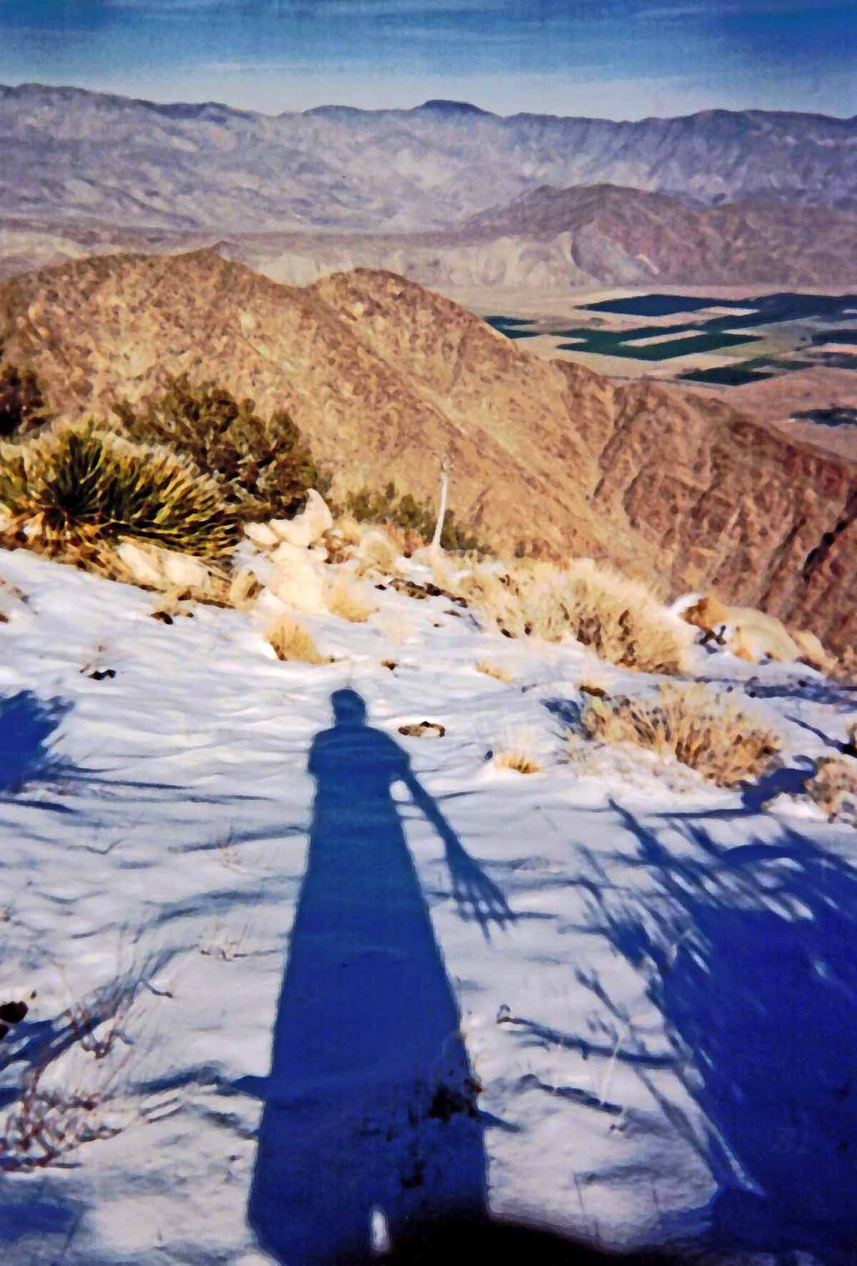 ![]() Jef waved goodbye as he continued up-canyon ![]() Leaving Palm Canyon ![]() Viewing Borrego from near peak on north side ![]() Chanced into rare hiker near the peak and got him to take my pic ![]() Viewing Borrego from southern part of peak ![]() Southern part of peak ![]() Indianhead hike is about 8 miles, 3200' vertical, 7 hours. ![]() Mom at Sewanee house - this statis lasted a few years before succumbing to the heat On the 23rd, did a loop hike up Arroyo Tapiado to Arroyo Seco del Diablo: 16.5 miles, 600' vertical, 8 hours. On the 27th, went skiing with Craig and Greg at Snow Summit. On the 31st, climbed Rabbit Peak, a 20 mile, 8300' vertical, 14 hour hike, on the 31st. ![]() |