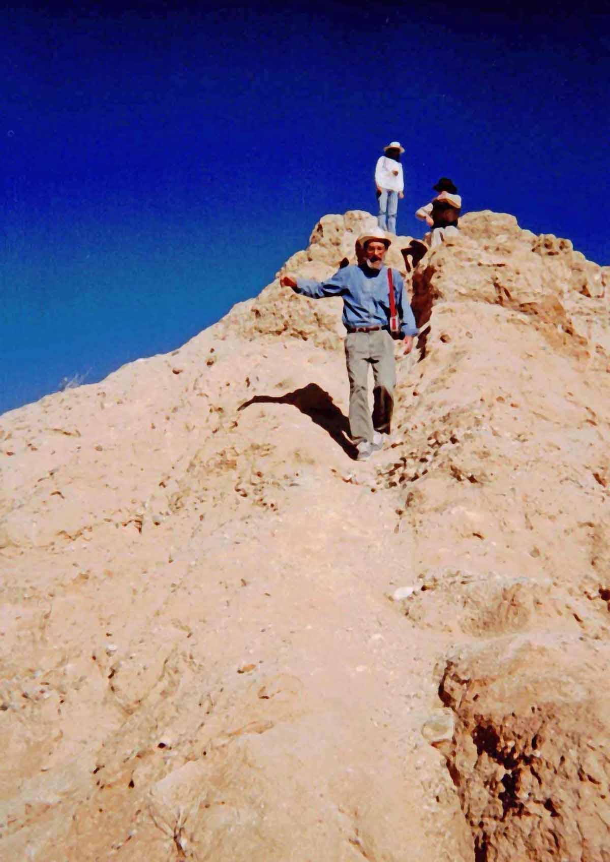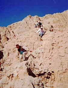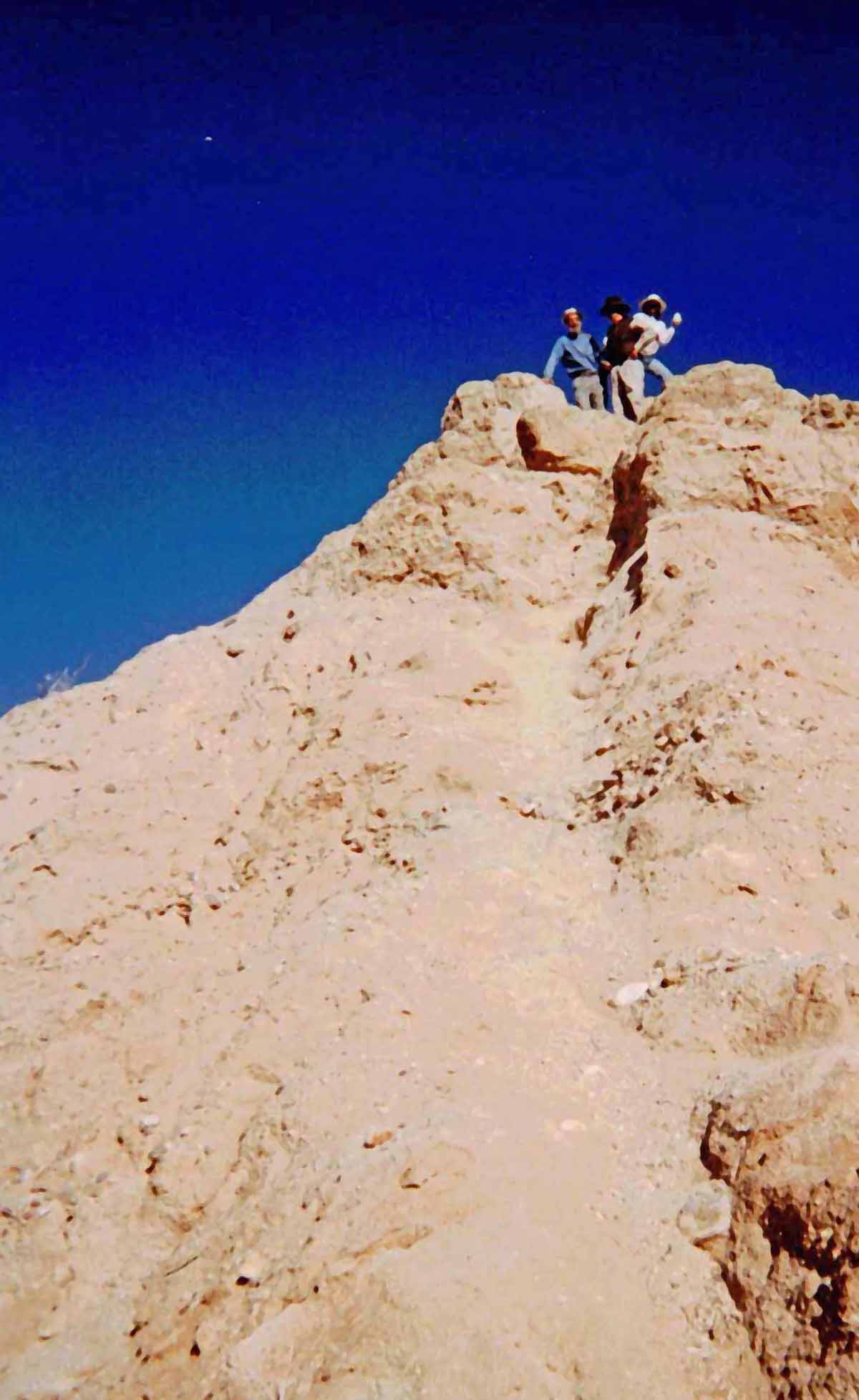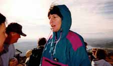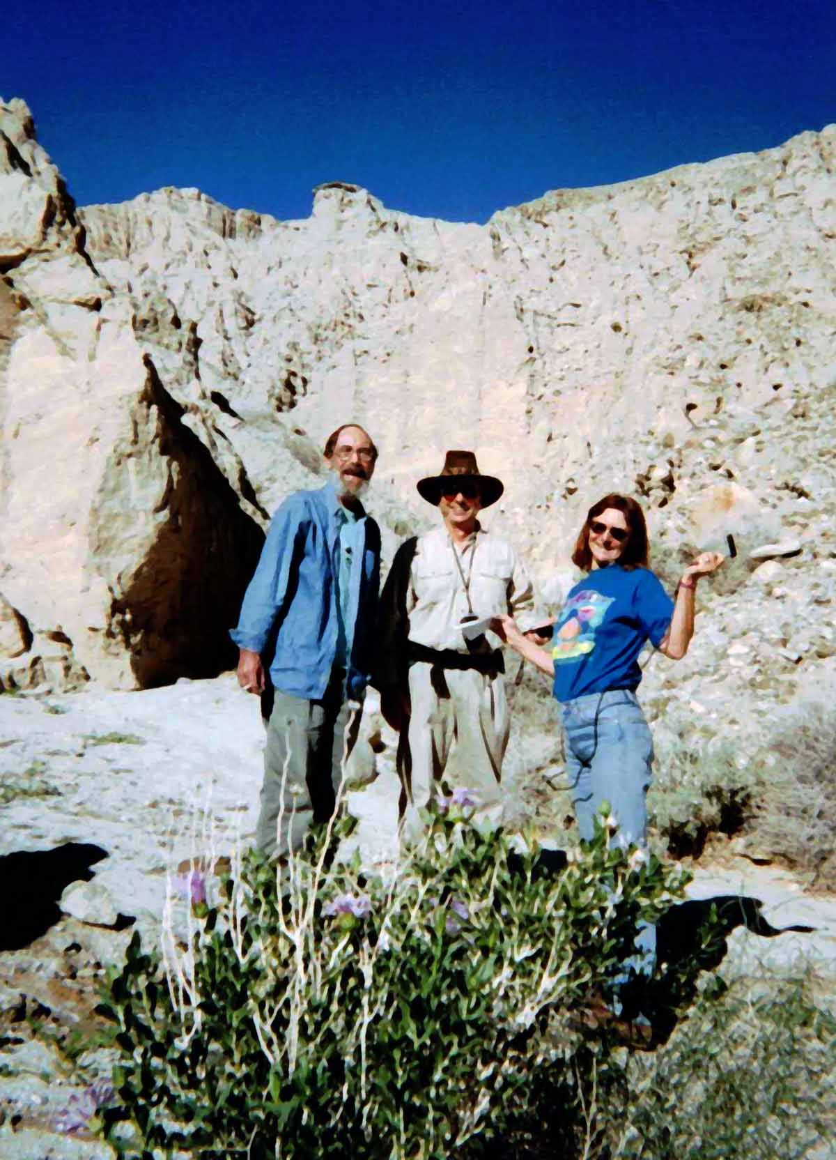 Met Lou while hiking Cowles on December 10. He had just got back from hiking to top of Kilamanjaro. I snapped his picture (see link). Lou bounced back from stomach cancer, from which he almost died 18 months ago. Quite an inspiration! ![]() Nearing summit ![]() At the summit ![]() Buzzer resting on the way back down On December 18, I took Buzzer to the X-mas party on summit, where I met Terry, Jim, Lou, and got a newsletter, and got 2 lottery tickets which won $12. ![]() Xmas potluck at the summit ![]() Terry On the 21st, hiked up Lizard Peak with Karyn on a cold damp day, and placed a register at the top. Vegetation was verdant. On the 23rd, hiked with Grace, Jim and Allen from Font's Point to the Slot, with signs of spring all the way (brown-eyed poppies, borrego asters, sand verbena were all blooming). ![]() Surveying our route from Fonts - we are heading to hills to the right(Borrego Mtn) ![]() ![]() Jef is partway down, checking out the route |