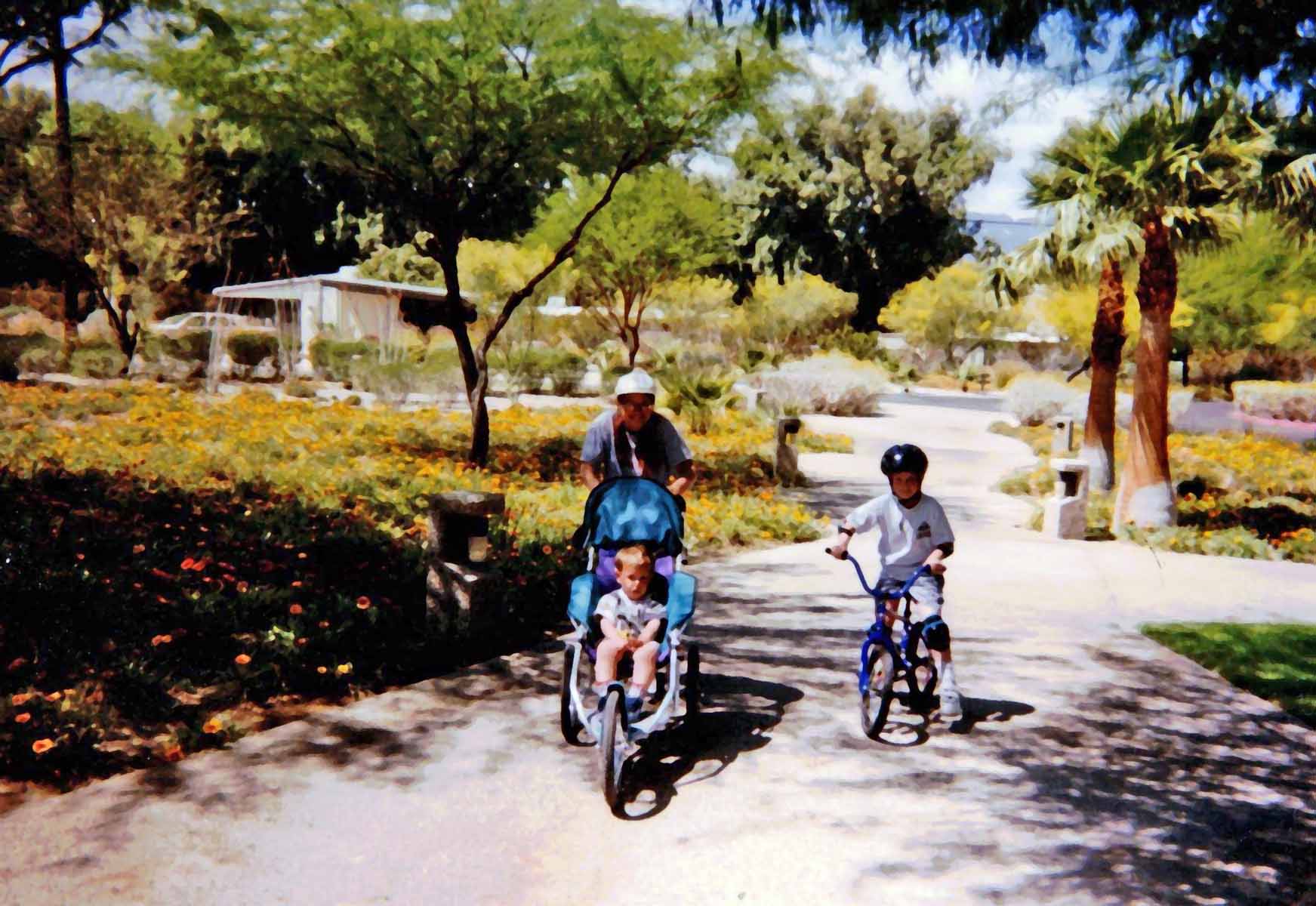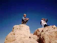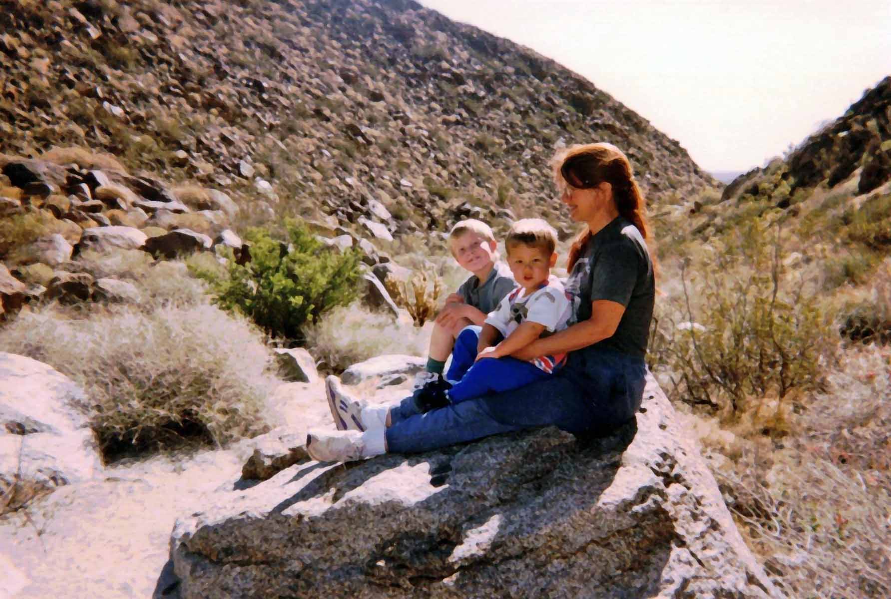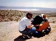 ![]() ![]() Comet Hale-Bopp ![]() Veronica & Janya stopping at Astroburger on way home - note their T-shirts My 2 nephews, Thor aged 7, and Logan aged 2 came and visited with sister Julie over Easter. We did the egg hunt and all that stuff. Had perfect weather, except for storm that came by just before we went to the beach. Still had trouble extricating Thor from the beach despite the cool weather. Logan was more interested in the sand than the waves. On the 21st, took bike to Shelter Valley via Mine Wash. Next time I'll try a mountain bike. Wound up going about 45 miles, pushing bike uphill through soft sand for about 8 miles, and holding on with white knuckles on the downhills. Conveniently, there was this cool store in Shelter Valley, where I had a burrito and soda. This was on the first day this year when temperature exceeded 100. (Good timing, eh?) |