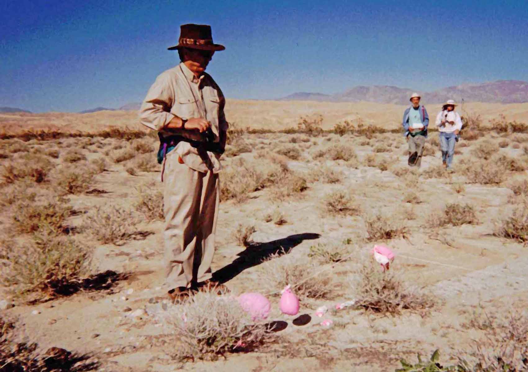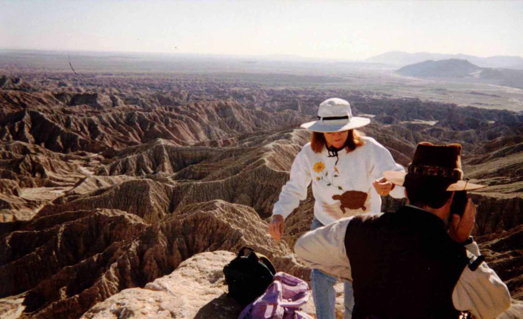 ![]() ![]() After the worst of it ![]() Down to gently rolling hills near the washes ![]() We made it down to a wash - with a blooming Borrego Astor and Fonts behind us now ![]() Looks like it must have flooded recently ![]() Nearing San Felipe Wash ![]() Picked up these party balloons that littered this area - last pic before crossing San Felipe Wash and heading up the Slot, climbing up to the Slot parking area, where mom picked us up and drove us home Opened presents under tree with mom on December 24 in front of fire. Got a lot of booty, including a nice coat, a coin sorter from Thor, a T-shirt, and about 10 small things. On the 25th, spent the morning at Craig's with Torrey and Greg. Then zipped on up to Fullerton, grabbed Karyn, went to dad's and had Xmas supper with Aunt Marion, Leny, Cousin Joanne, and Richard. On 30th, scouted hike for tennis club with mom, Harriet, and Karyn in Culp Valley. Then we hiked down from campground to valley floor via the Riding and Hiking Trail. ![]() At Paroli Homestead | ||||||
