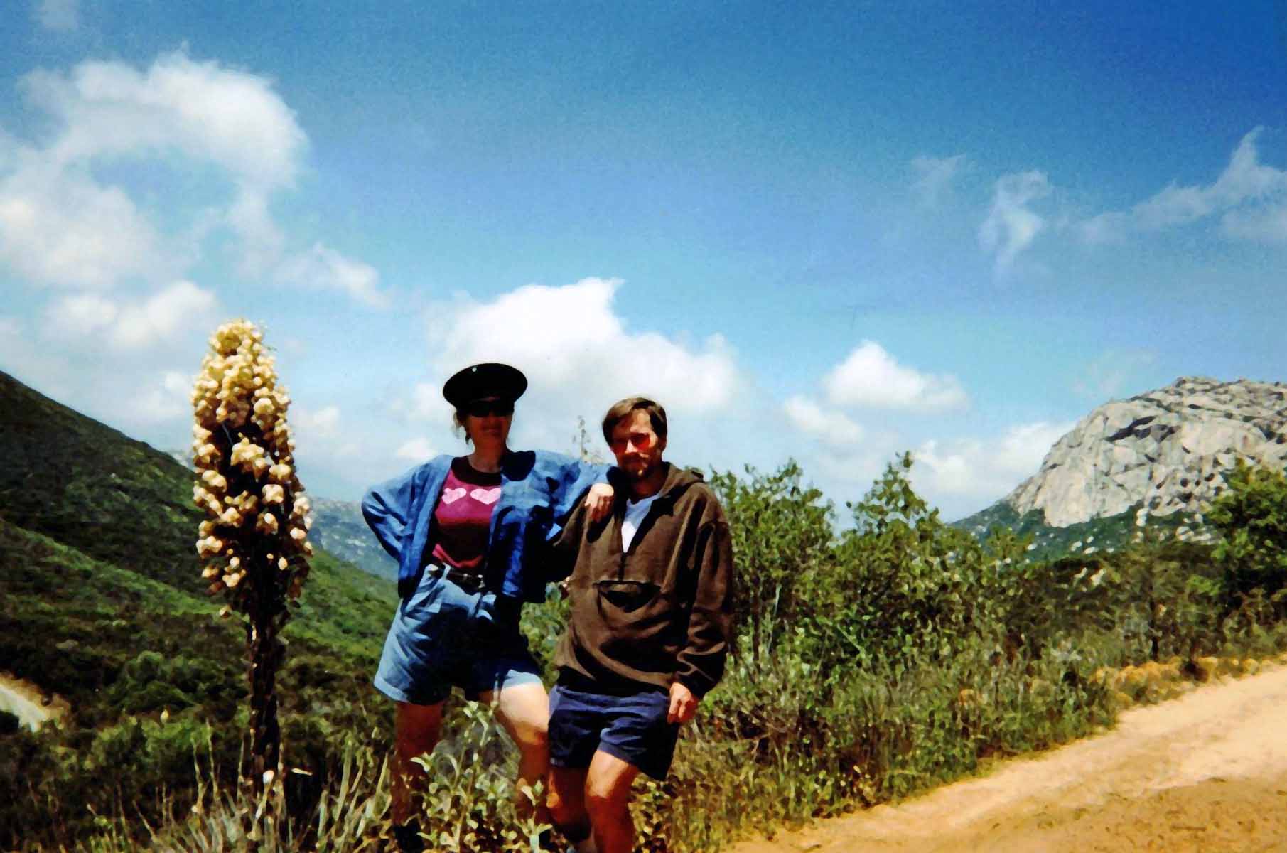 On the 8th and 9th, took Karyn up Cowles, taking 1 roll of film of flowers there on the 7th. Saw the Alaska film at Reuben H Fleet. Then went on 2 hikes. A quick one to Palm Wash on the 7th, and a medium one to Lookout Rock on the 8th. Took 5 rolls of pix.