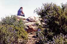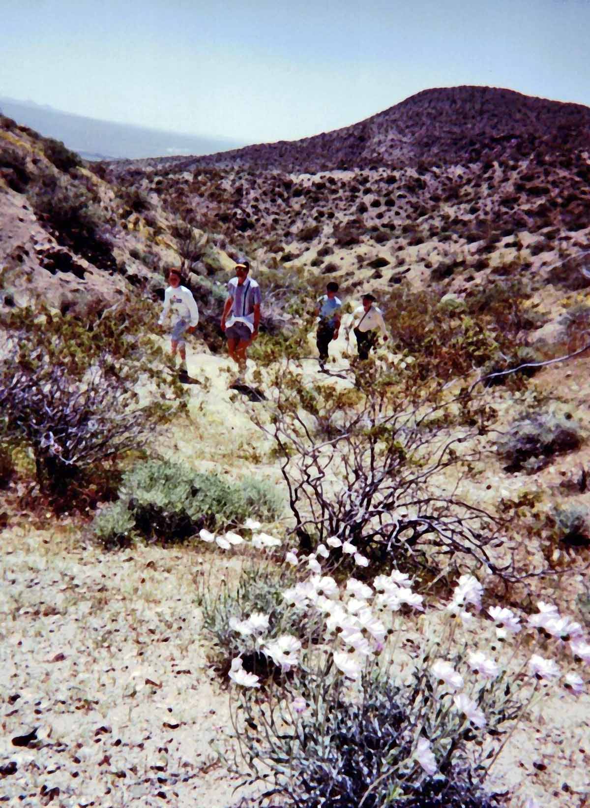 On the 8th and 9th, took Karyn up Cowles, taking 1 roll of film of flowers there on the 7th. Saw the Alaska film at Reuben H Fleet. Then went on 2 hikes. A quick one to Palm Wash on the 7th, and a medium one to Lookout Rock on the 8th. Took 5 rolls of pix. ![]() Karyn at Cowles - note the blue ceonothus flowers ![]() At the summit of Cowles Lookout Rock North side of Pinyon Ridge On the 13th, took tennis club to look at flower fields on Henderson Canyon Rd. Also did a loop over Texas dip, out to the Mine Wash morteros, and then to Tamarisk Grove where we hike the Cactus Loop Trail. ![]() Karyn took a few pix of flowers ![]() ![]() ![]() On the weekend of the 14th, March tennis tournament was rain-shortened. Hank came down. Also Karyn and I entertained Eric and his girlfriend on Sunday. |