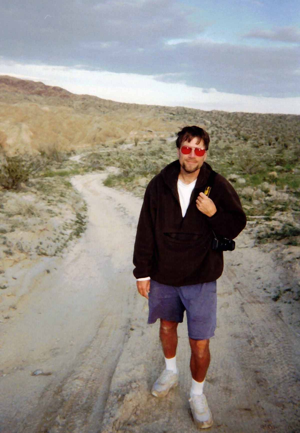 On the 15th, hiked Peak 564 in Borrego Sink area, a 10 mile, 3 hour hike. Walked across the sink, thru mesquite forest, by a cool campsite in some tall tamarisks, by an abandoned homestead, and up Peak 564, which is just a large sandune supported by mesquite, starting and finishing at home. This hill overlooks the dump.