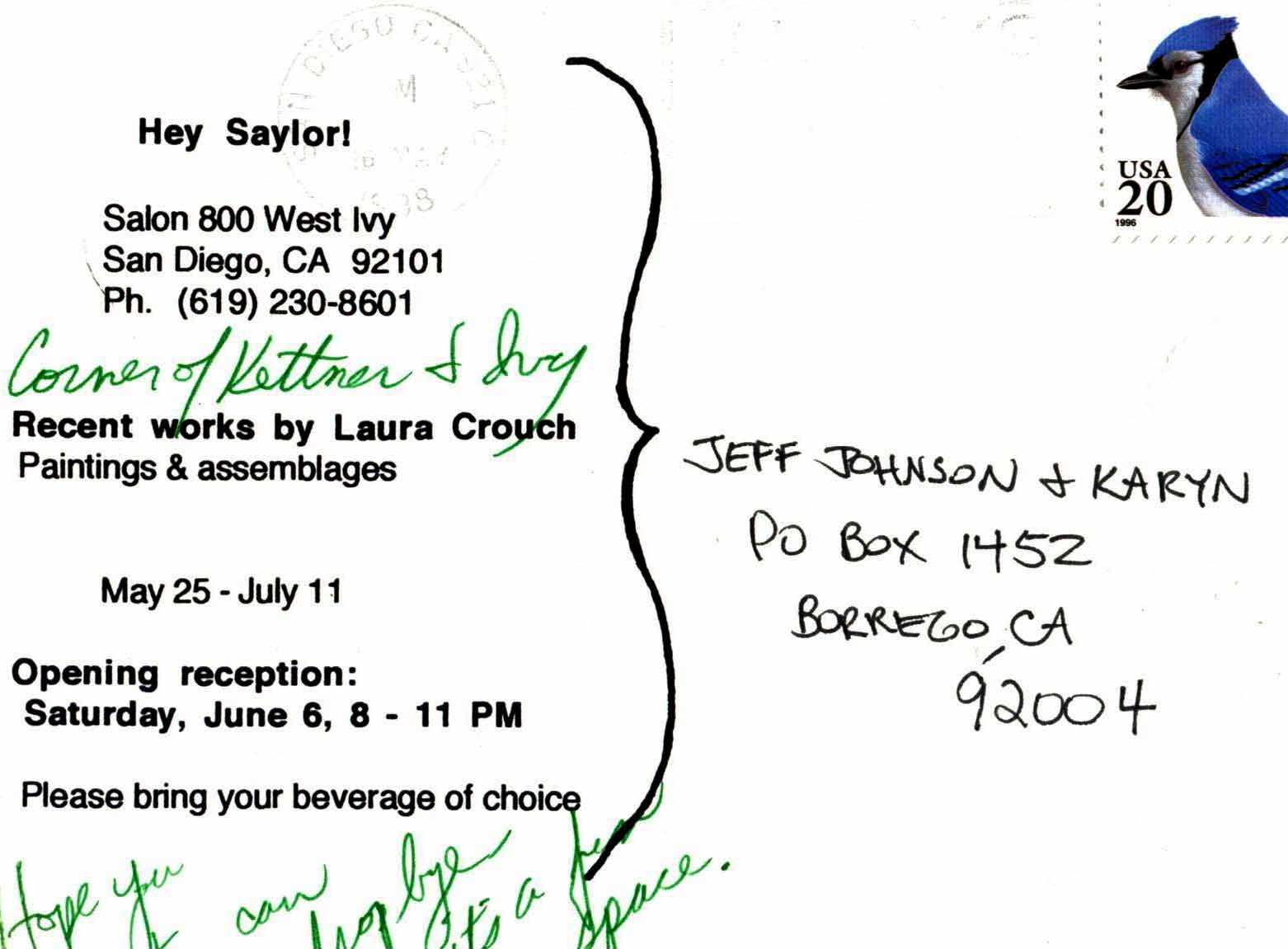 On the 1st, missed the fireworks at La Casa (half a mile away) just after midnite, as I and Karyn slept thru it, but mom was waken up, and did see the last 5 minutes of them. Went to San Diego, and walked along the beach near Belmont Park. Showed Karyn downtown San Diego, and dropped her off at the train station the next morning.
